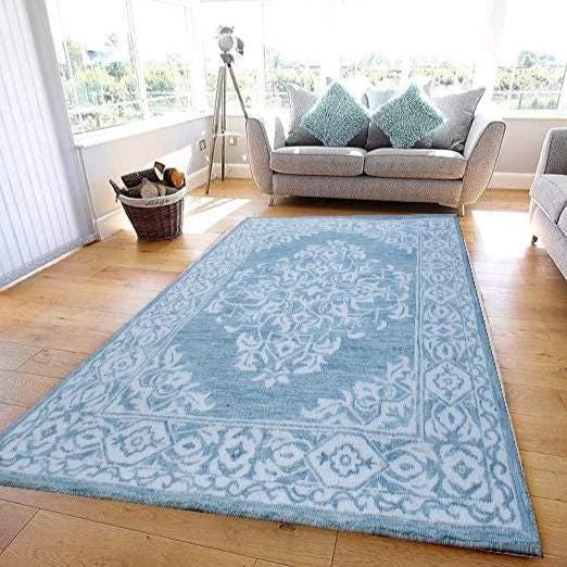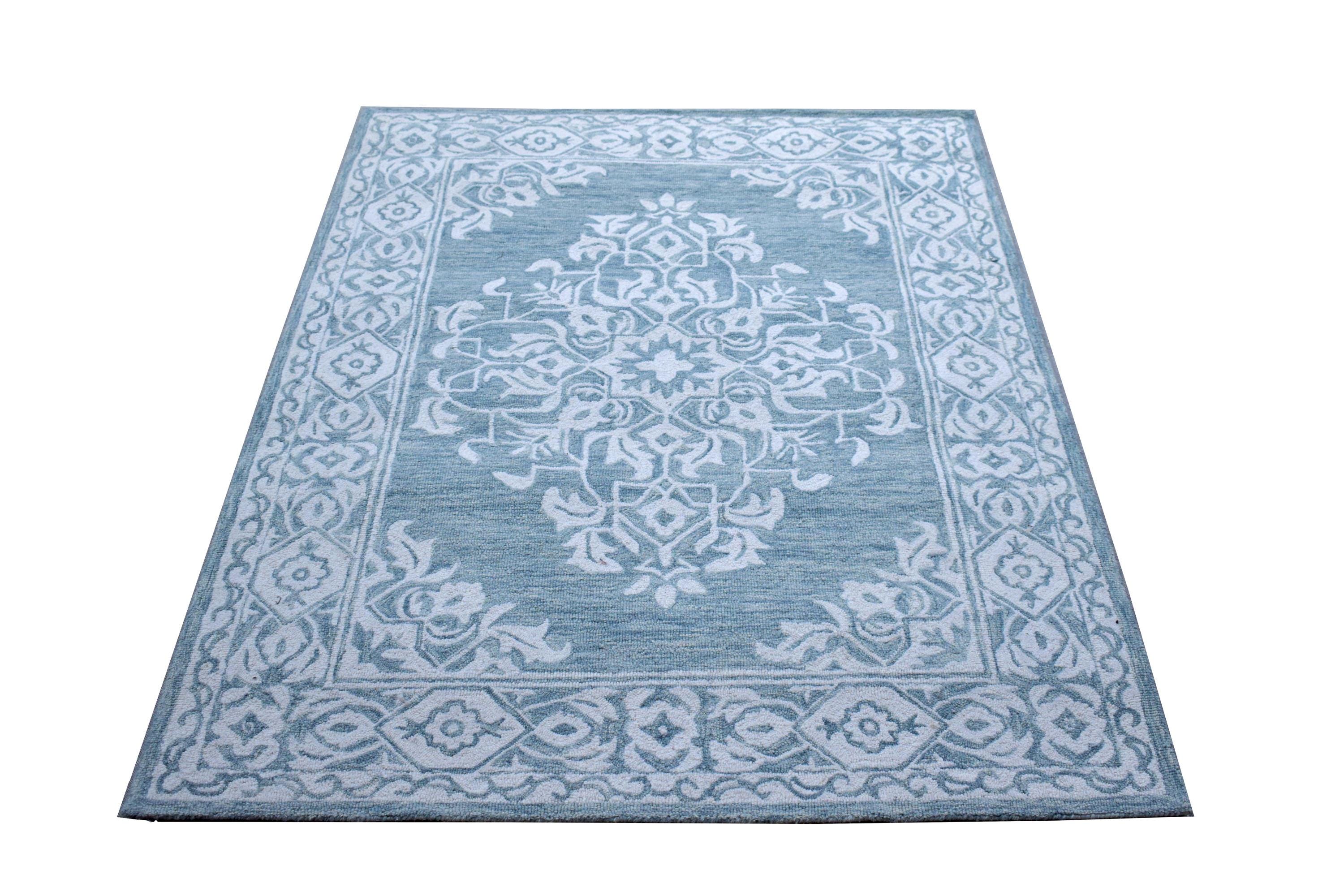 Classic Blue Medallion Hand-Tufted Carpet Kids Room ,Bed Room, Living Room ,Office Room and many other places