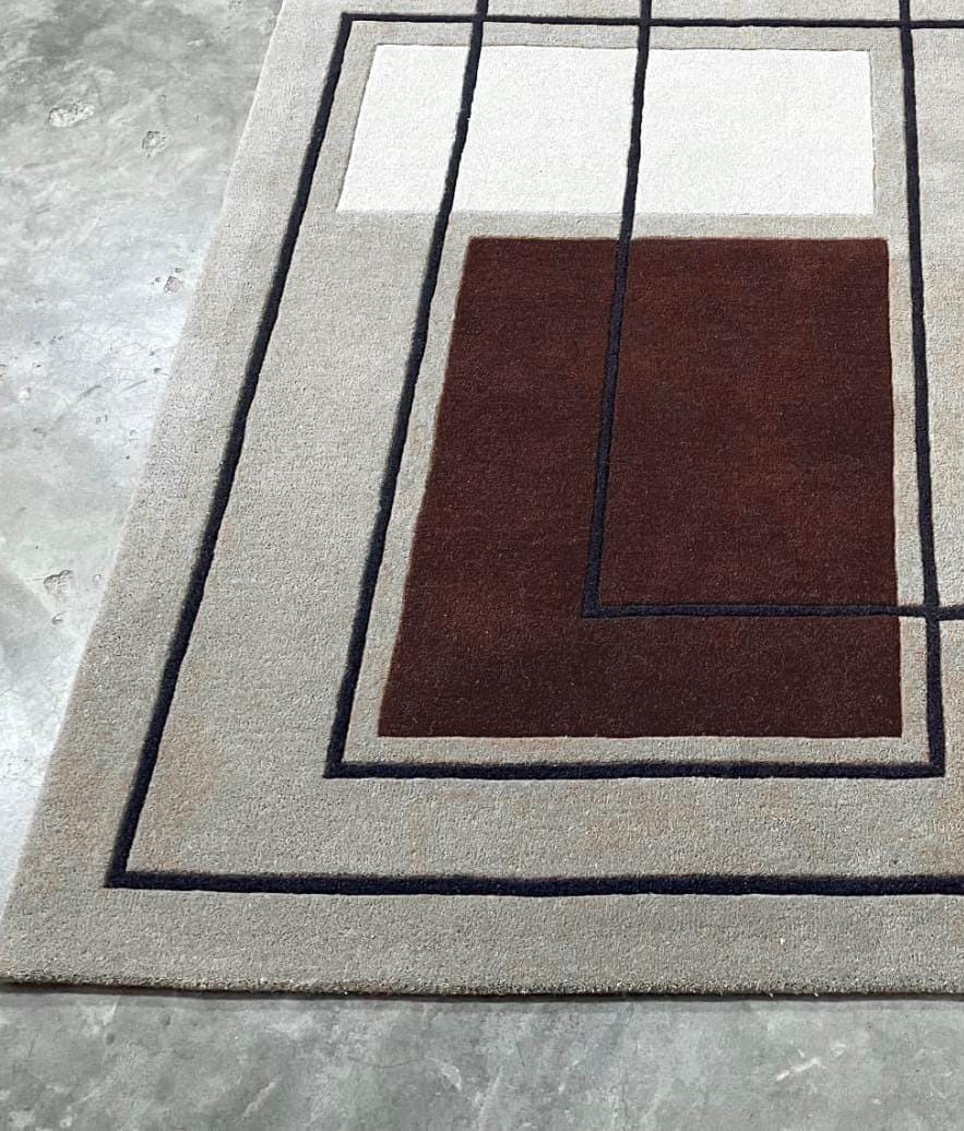 A rug is more than just a functional piece—it’s a statement, an artistic expression that brings warmth, style, and personality to a space. The hand-tufted rug in question is a striking blend of modern geometric design and earthy tones, making it a perfect fit for contemporary interiors. With its clean lines, structured composition, and soothing color palette, this rug is not just decor—it’s an experience.