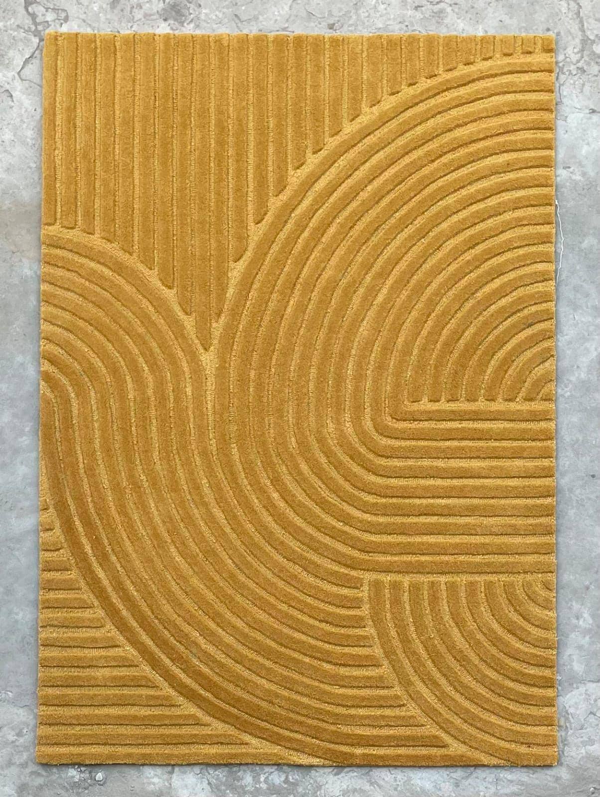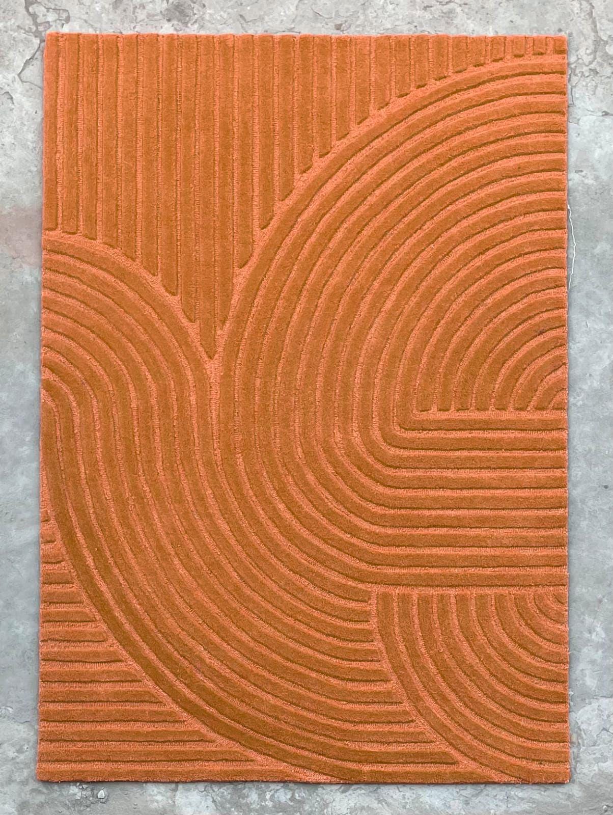 This hand-tufted carpet is a stunning piece of functional art. Its warm, earthy tones and intricate geometric design will instantly elevate any room.