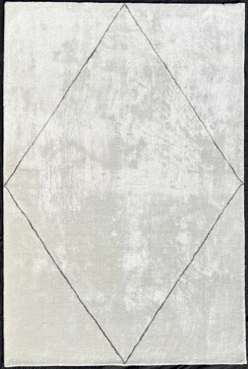 The rug features a minimalist design, dominated by a large diamond shape outlined in a contrasting darker shade at the center.