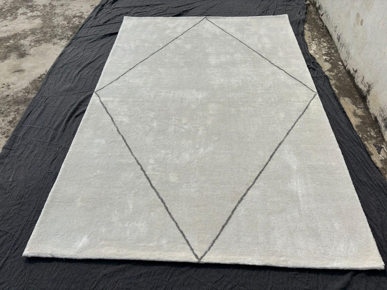 Understated Glamor: Silky Viscose Rug with Diamond Frame" for Home Decor , Living Room Rug, Bed Room Rug Mfd By -YDC