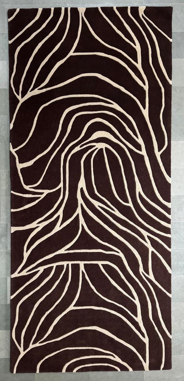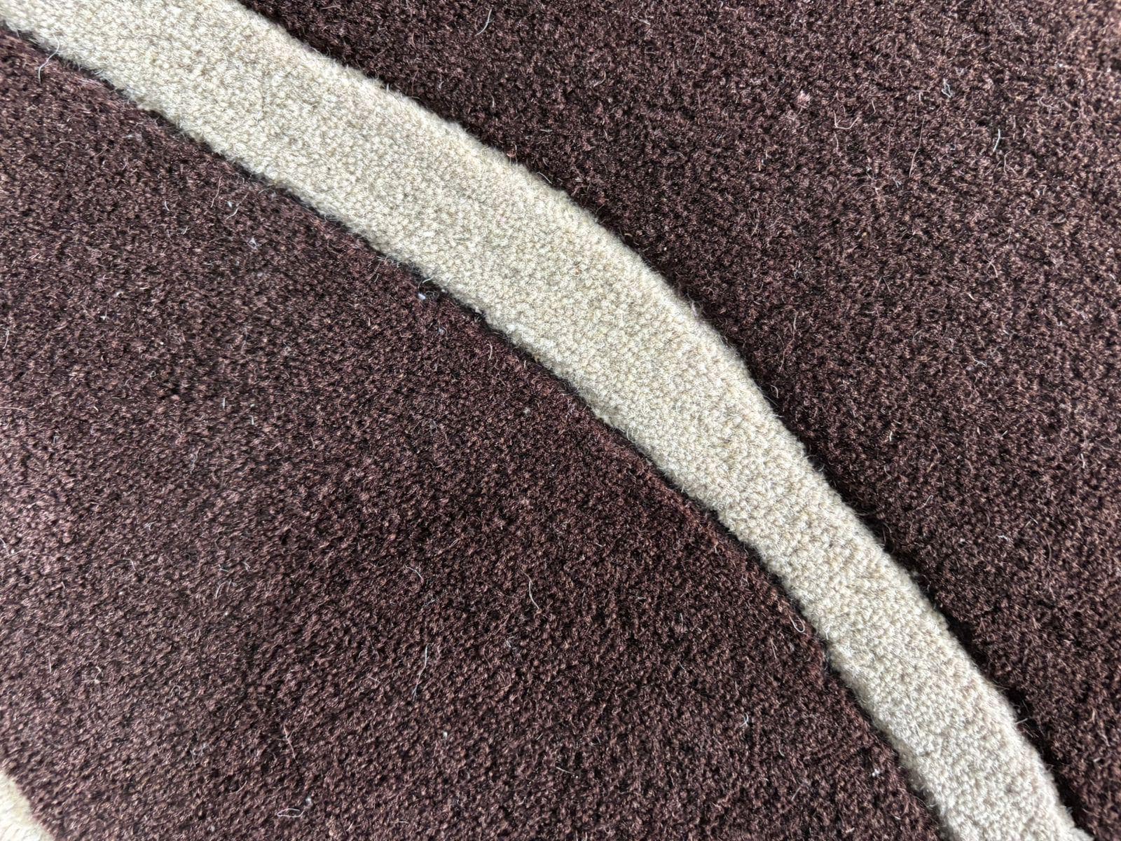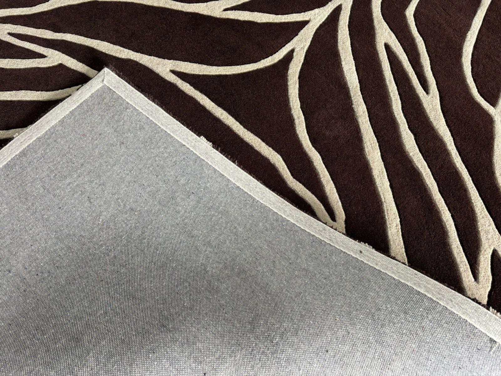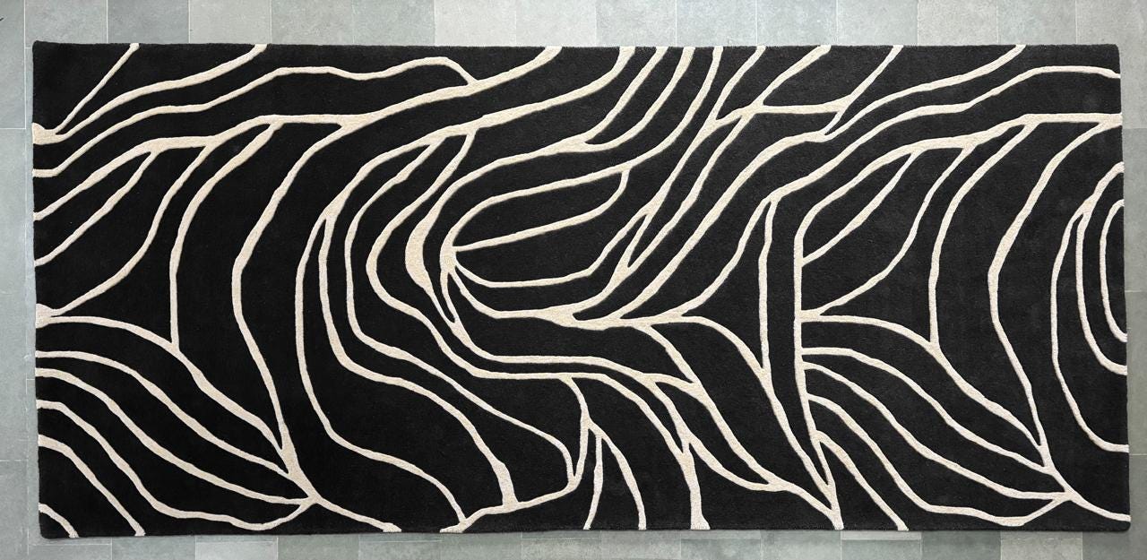 Aesthetic hand tufted wool rug with dark background and light lines resembles natural pattern for home decor, office, kids room and more.