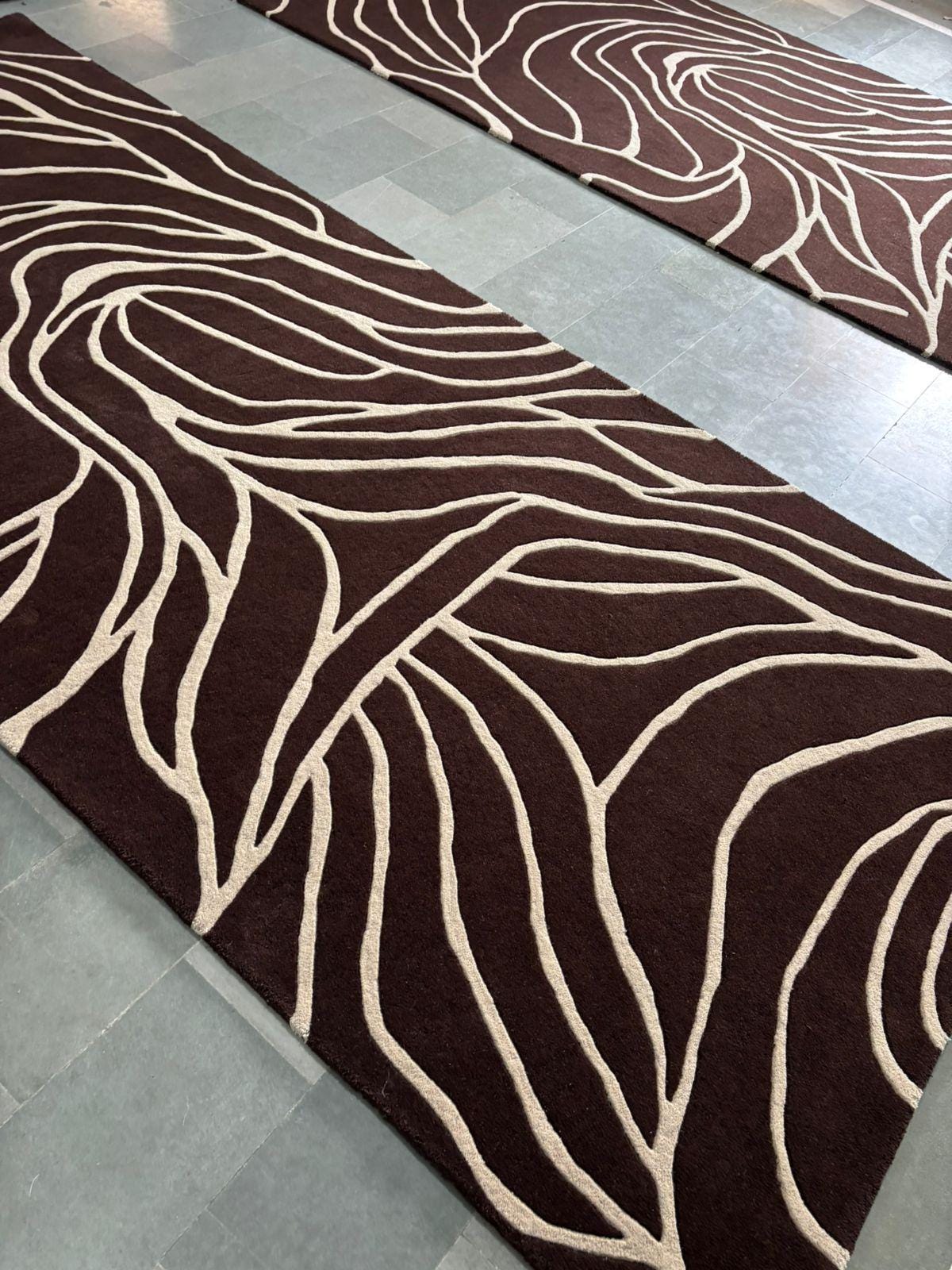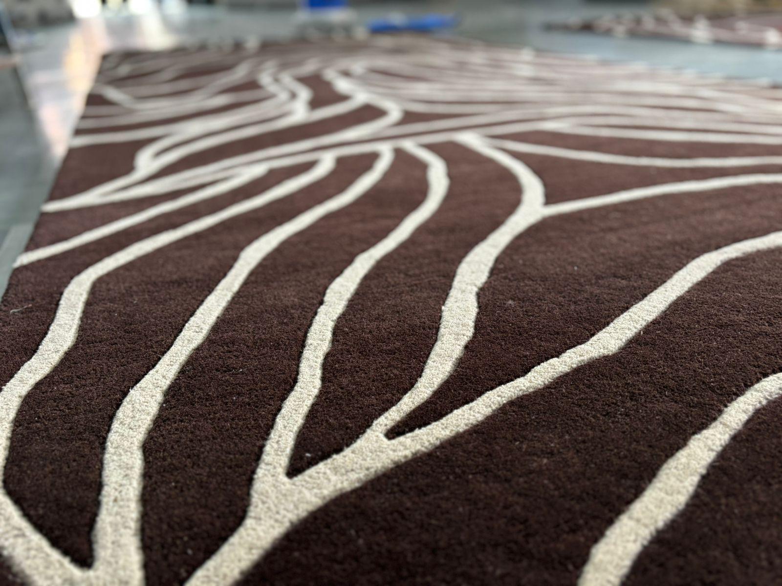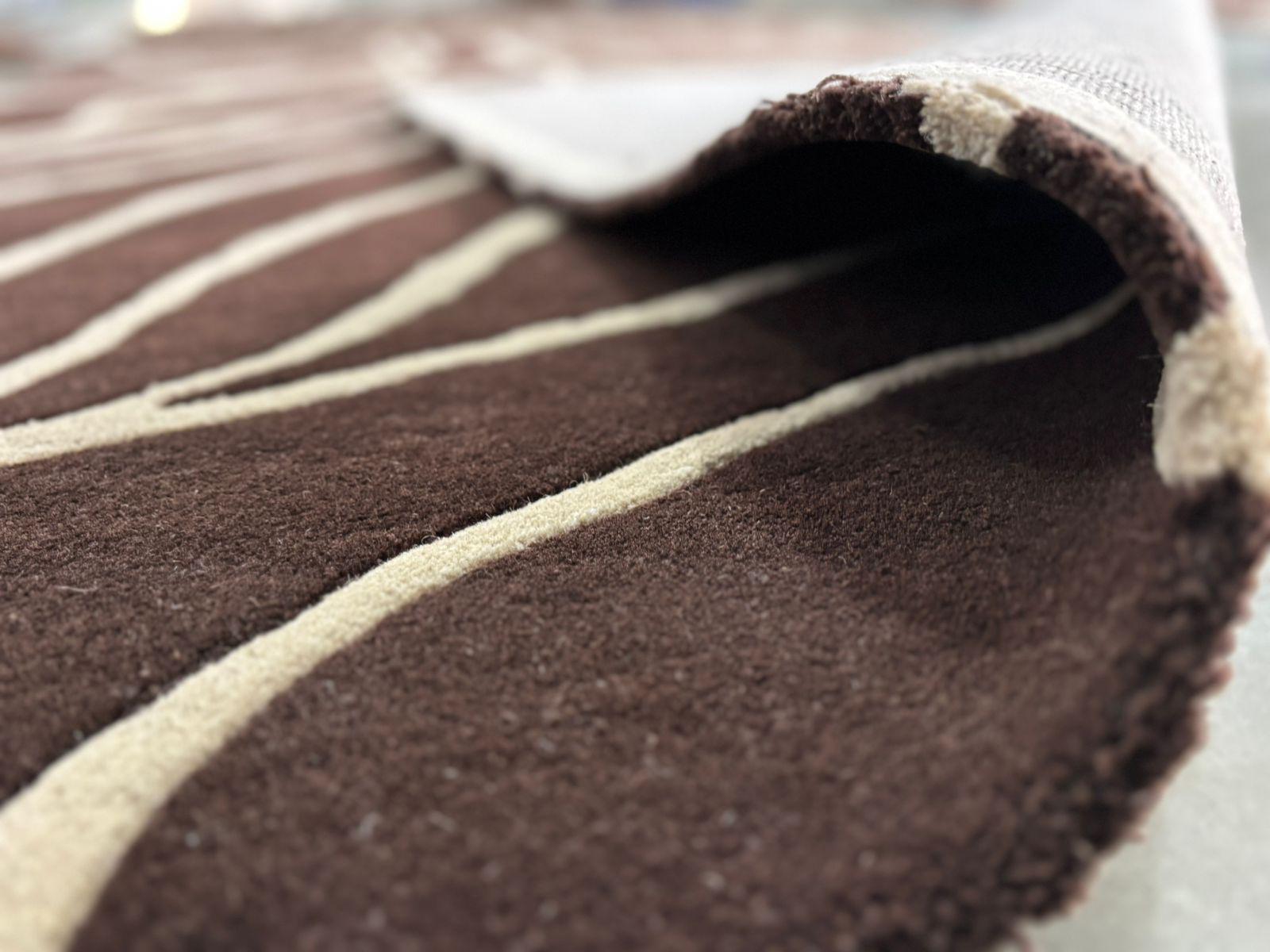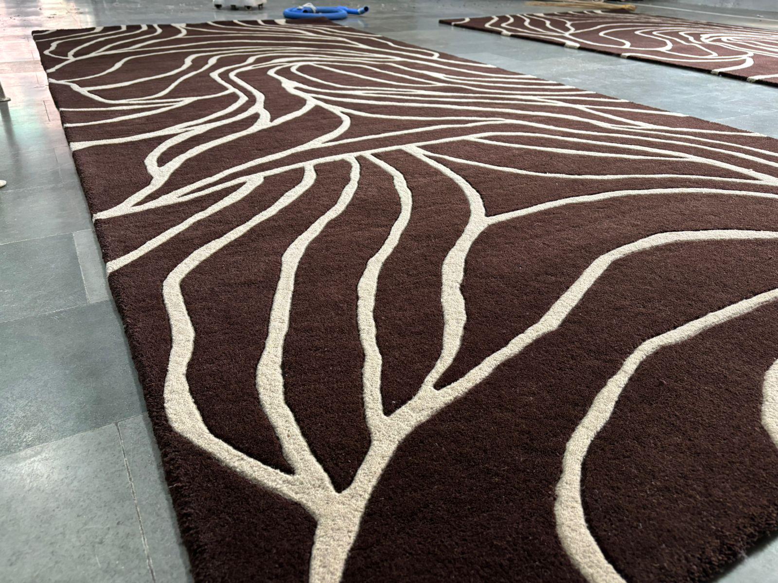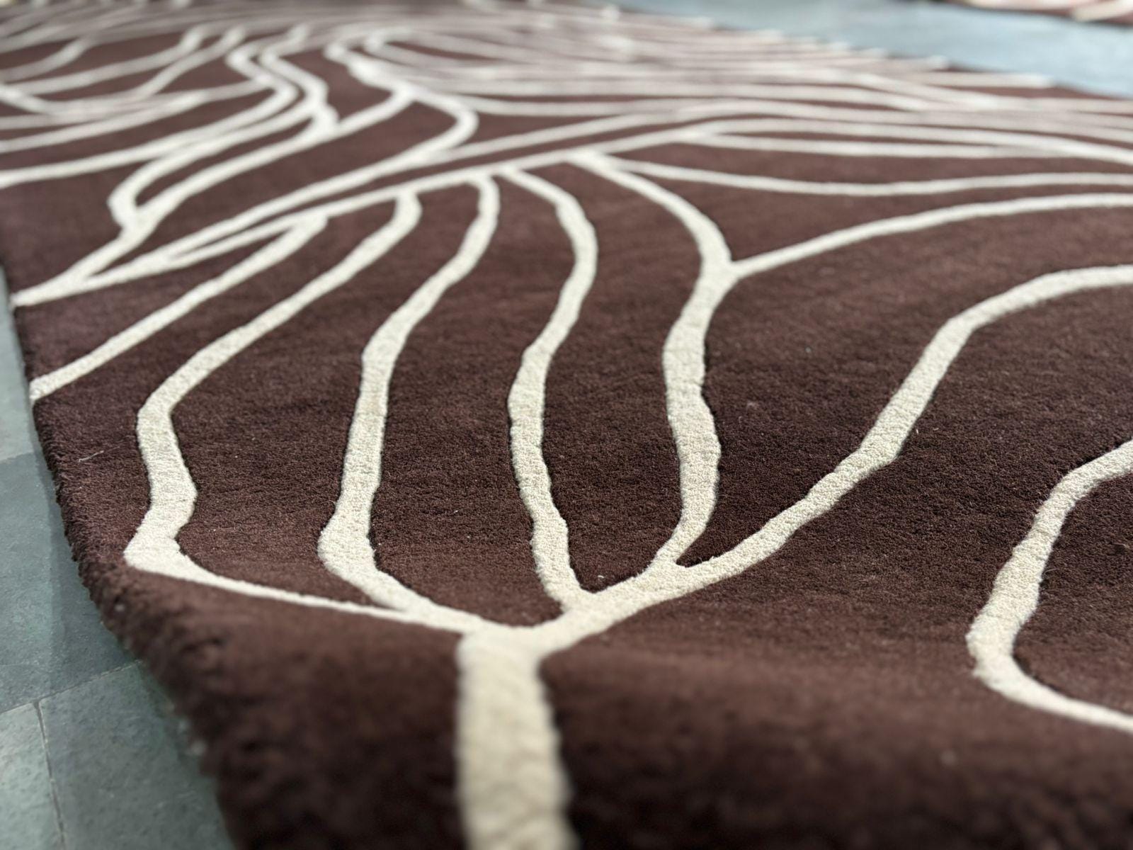 Aesthetic modern hand tufted wool rug with dark background and light lines resembles natural pattern for home decor, office, kids room, cafe areas and many more.