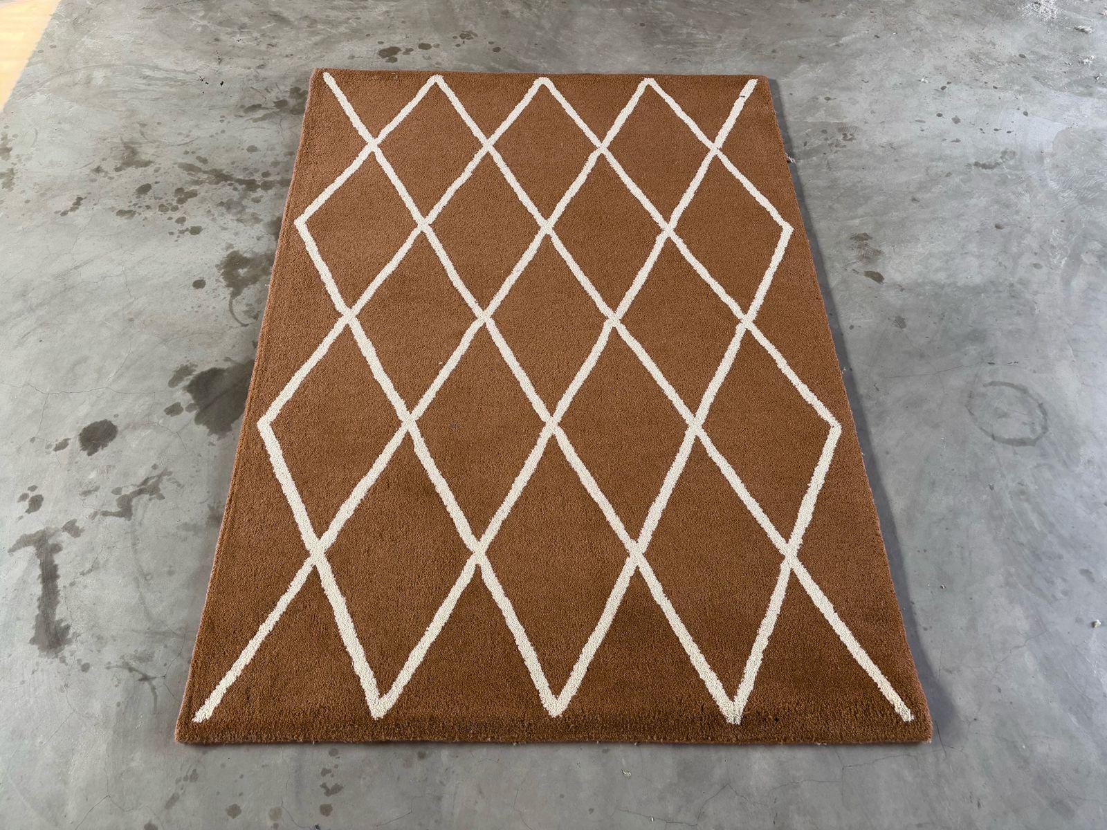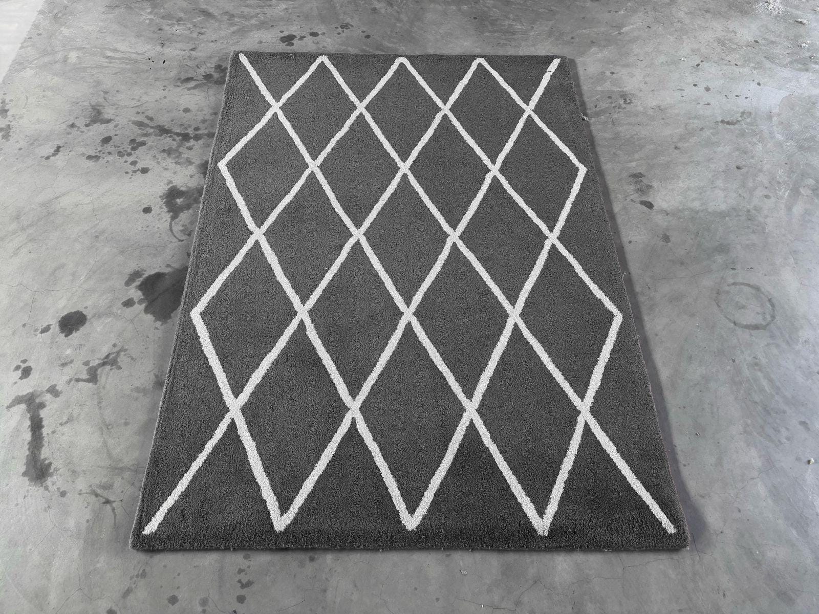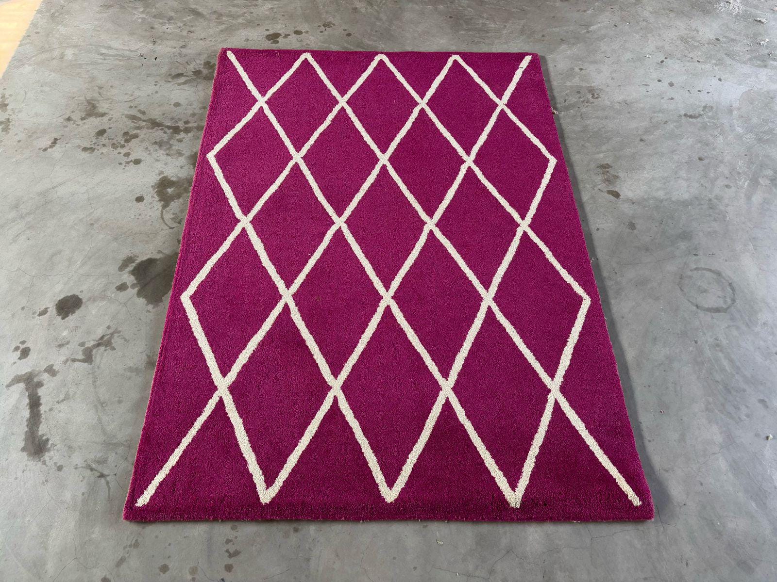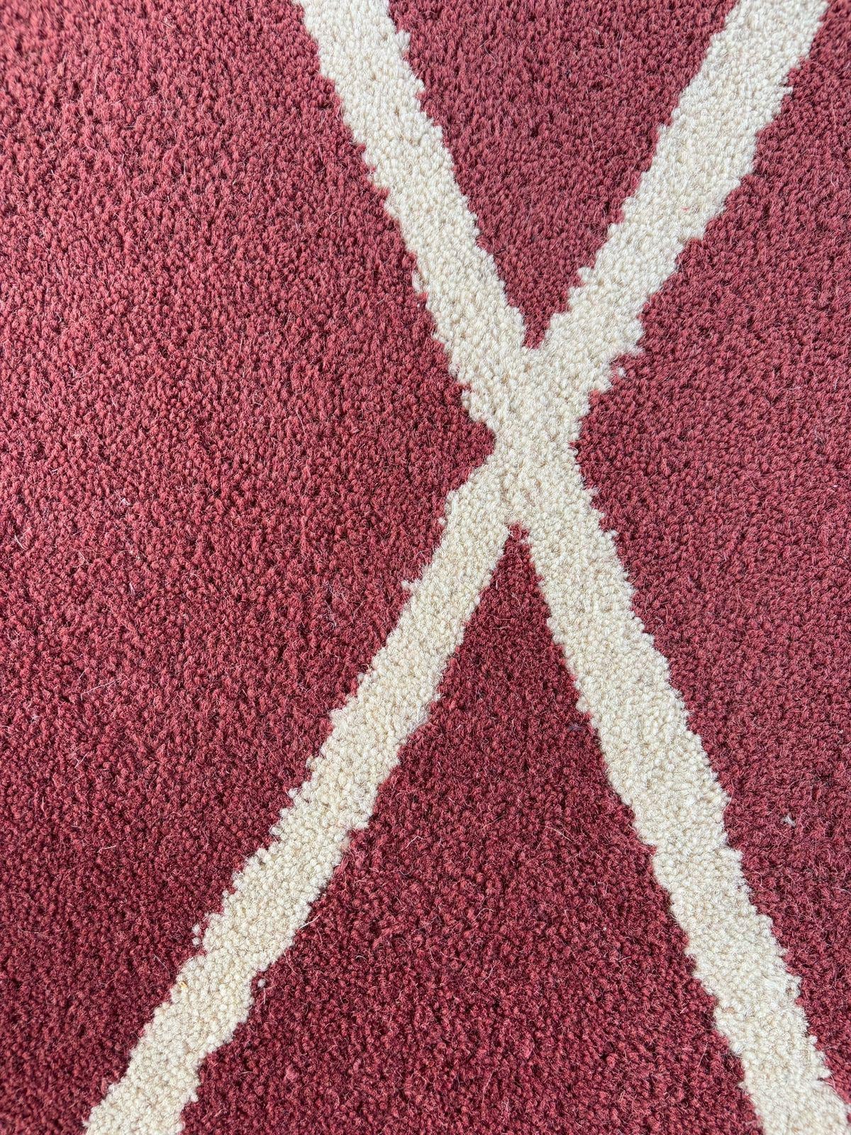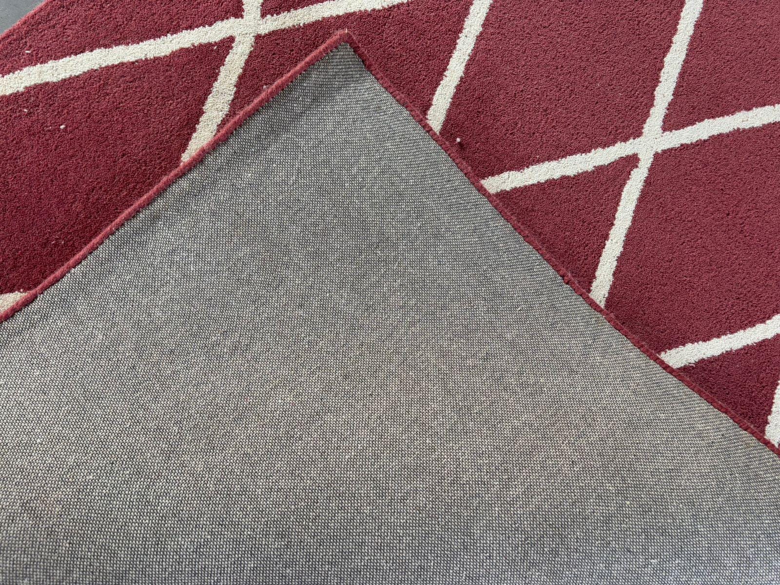 Design: Features a geometric pattern of intersecting diagonal lines forming diamonds across the rug's surface.