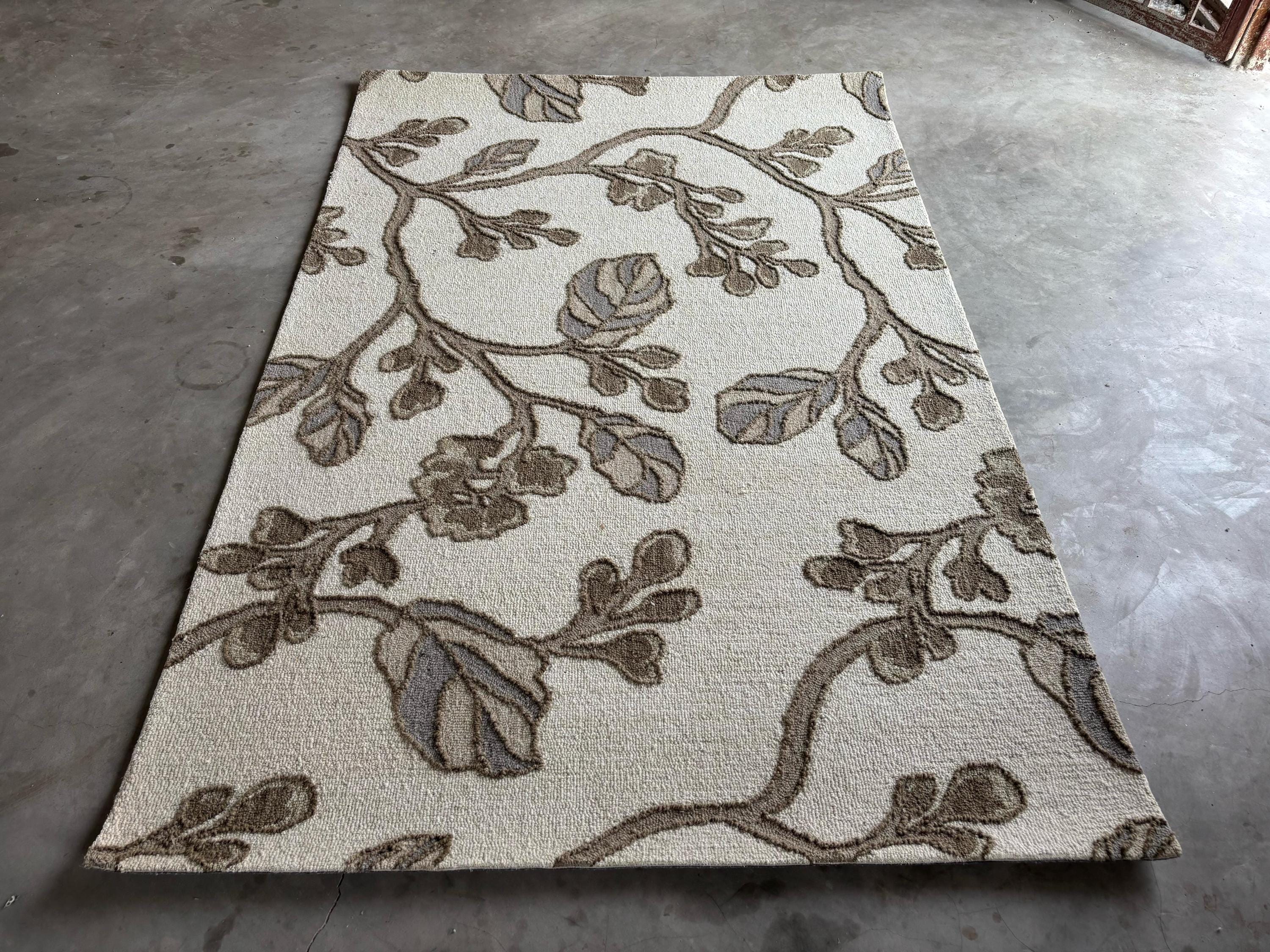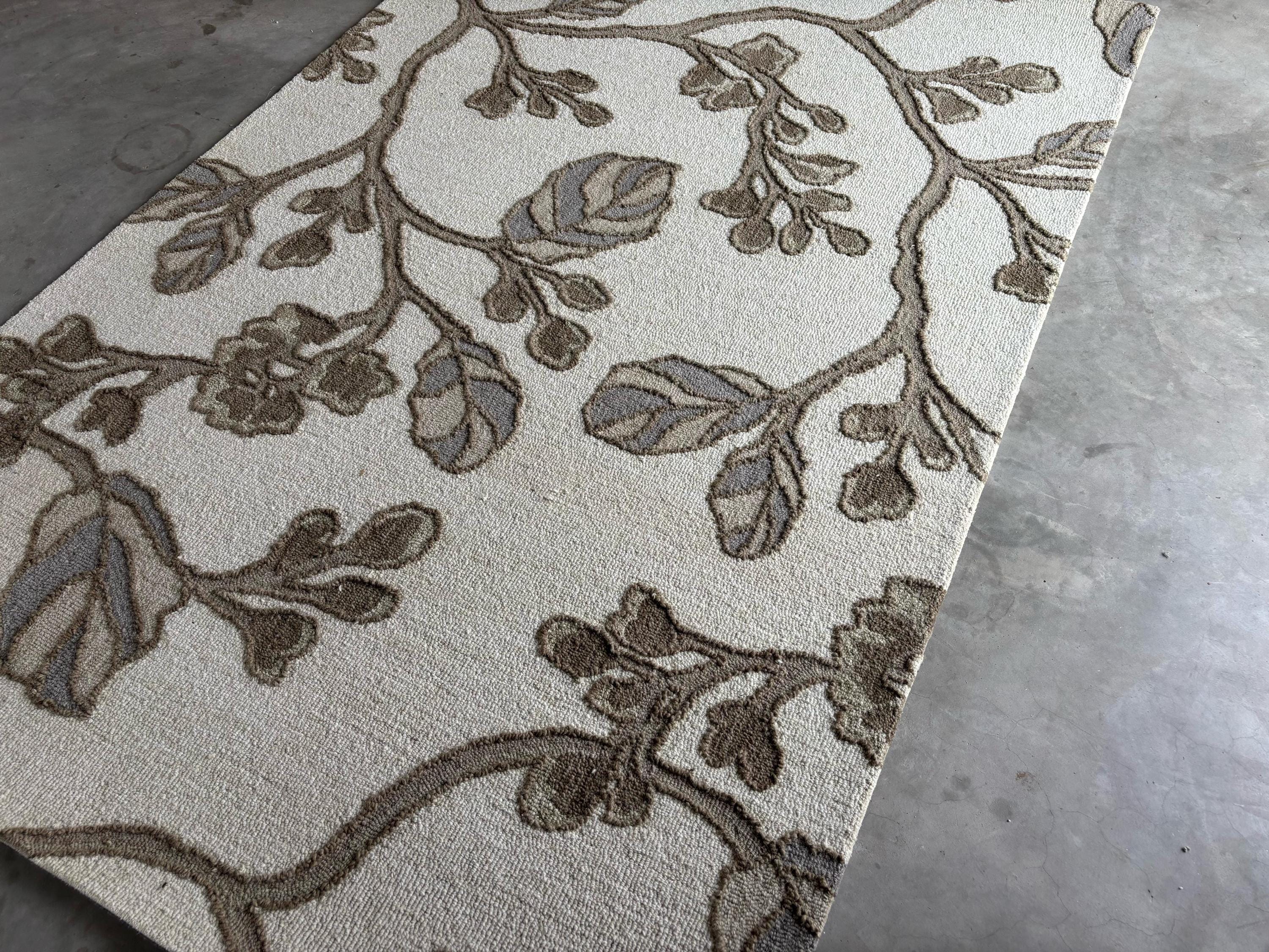 Hand Tufted New Zealand Wool Rug: Floral Vine, Neutral 8x10 Area Rug