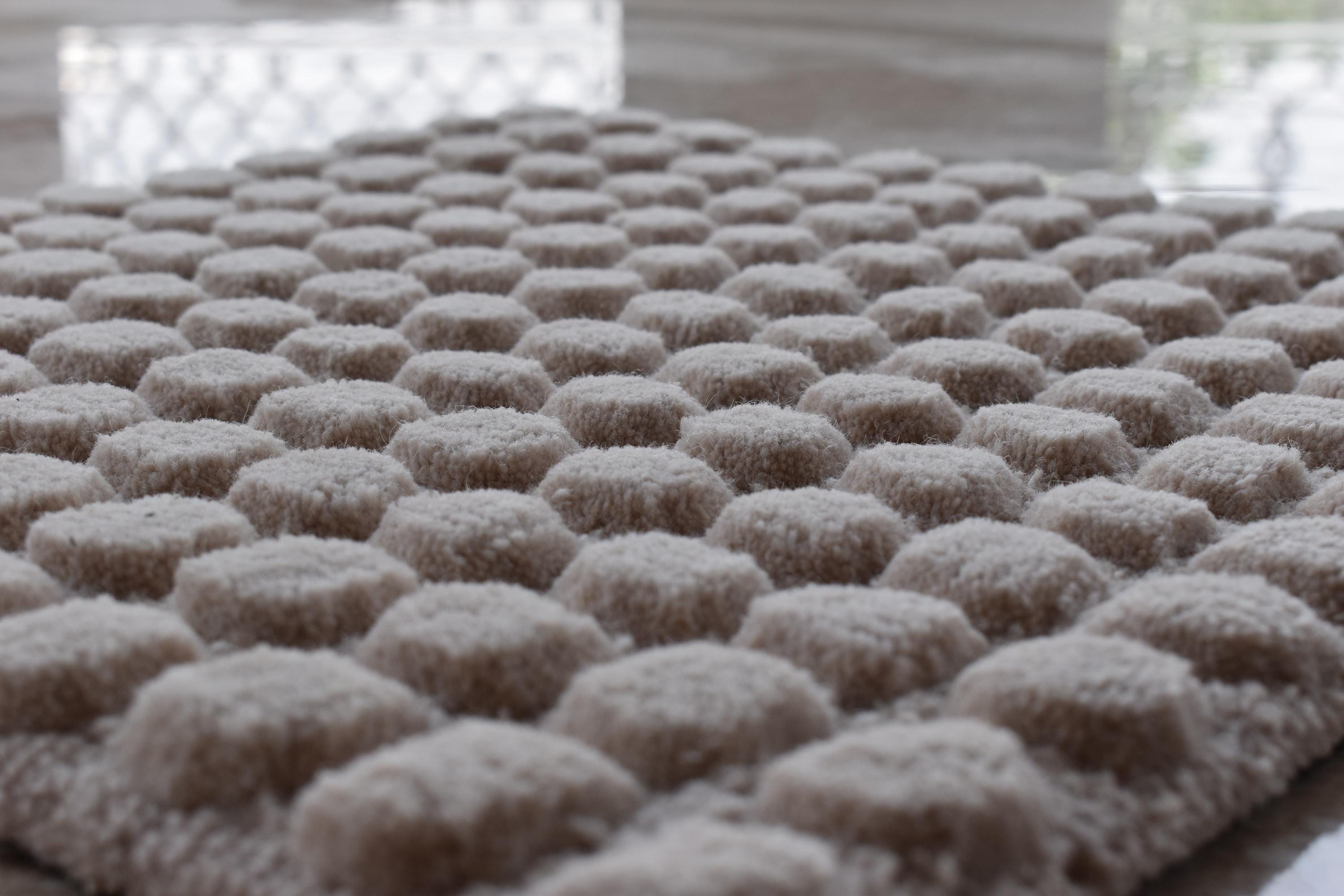 Hand Tufted New Zealand Wool Rug: High-Low Dot Pattern, Modern Neutral Carpet