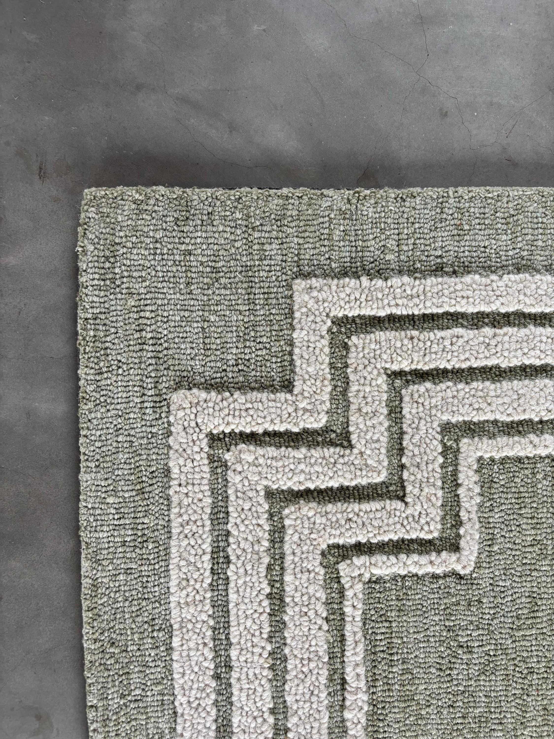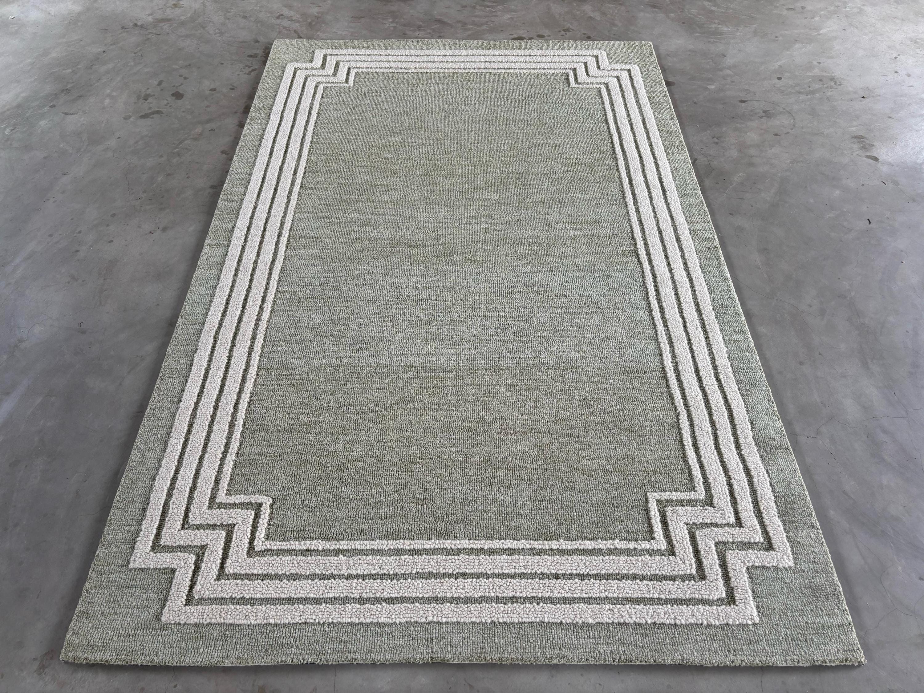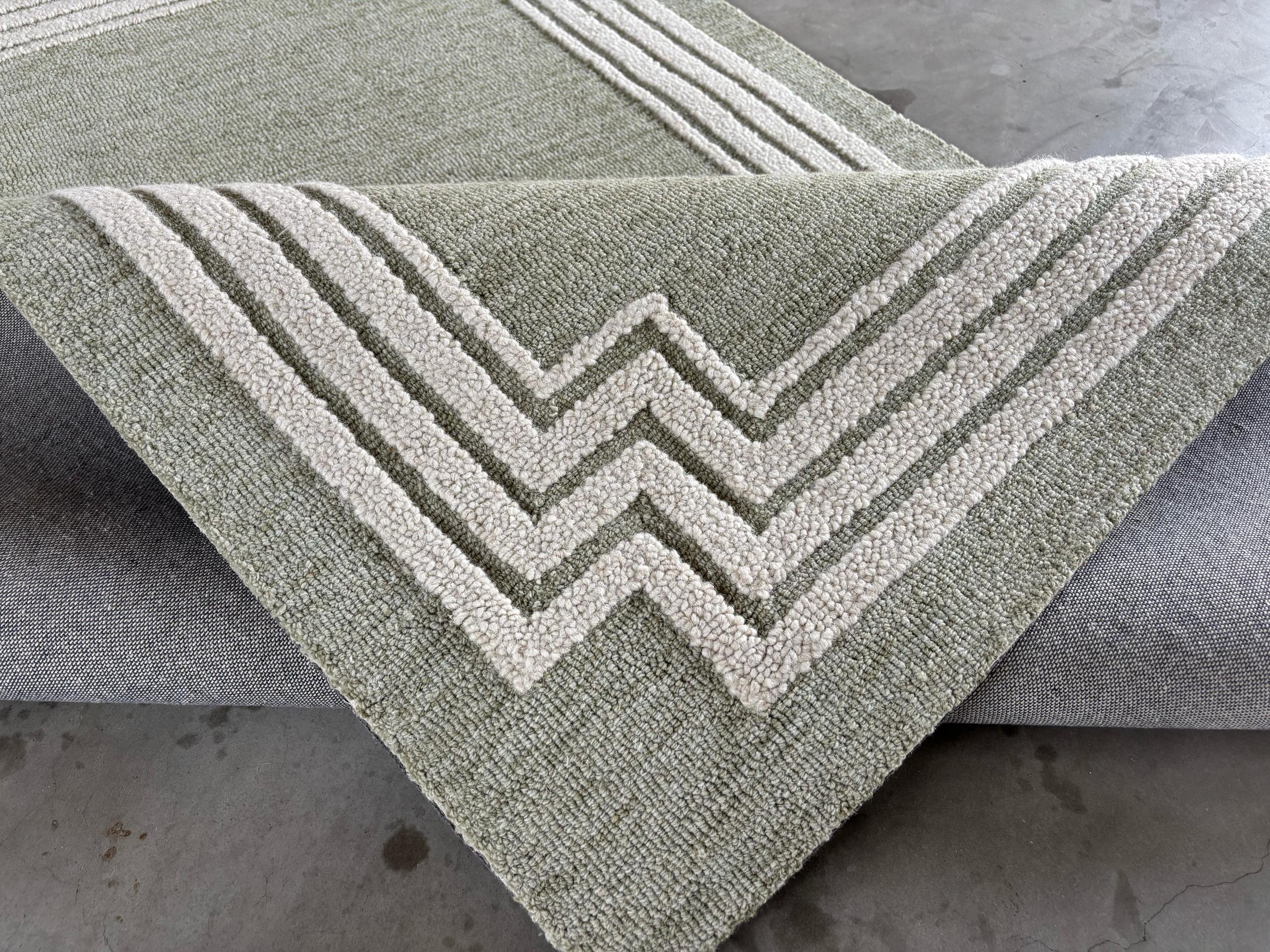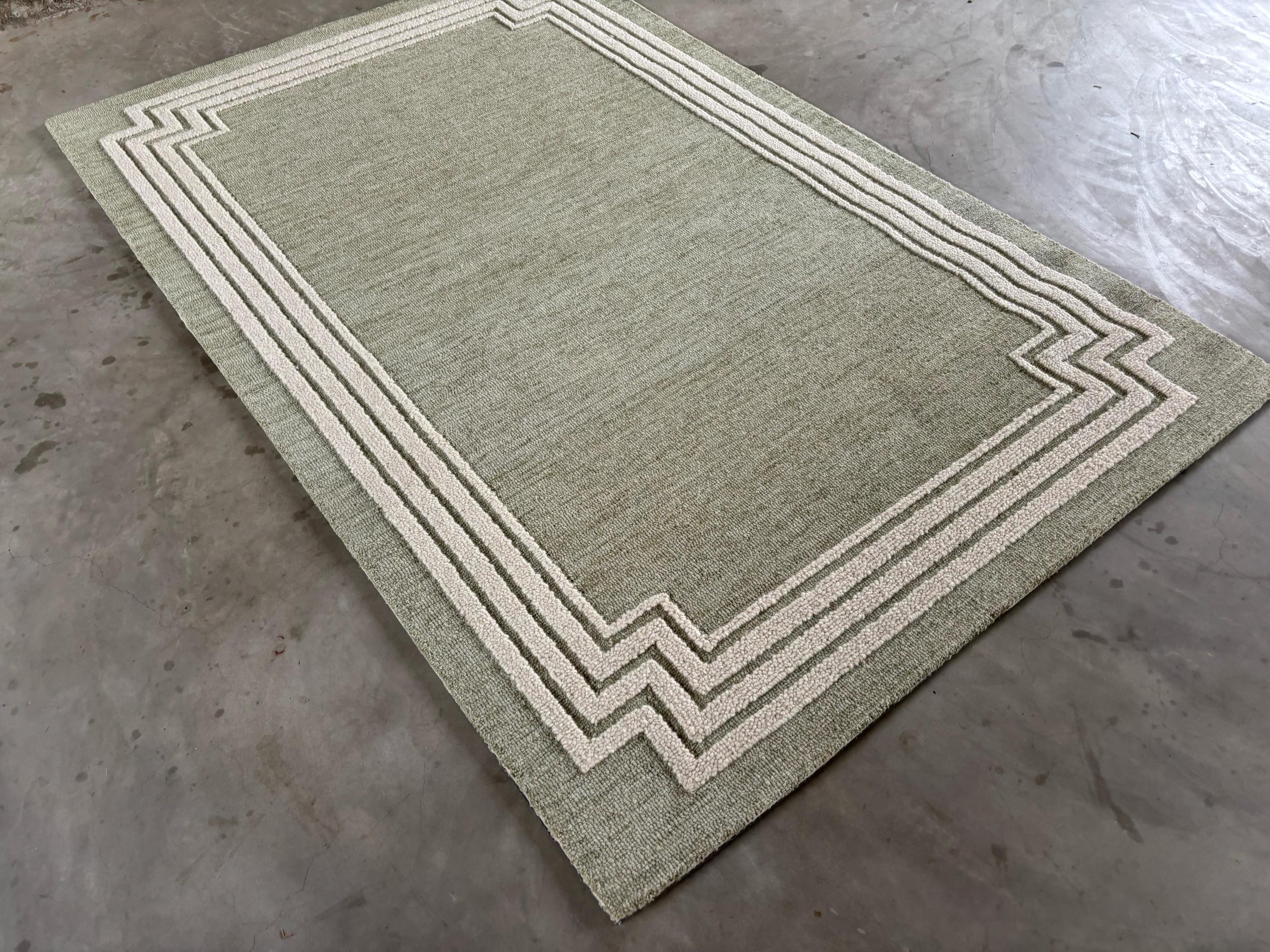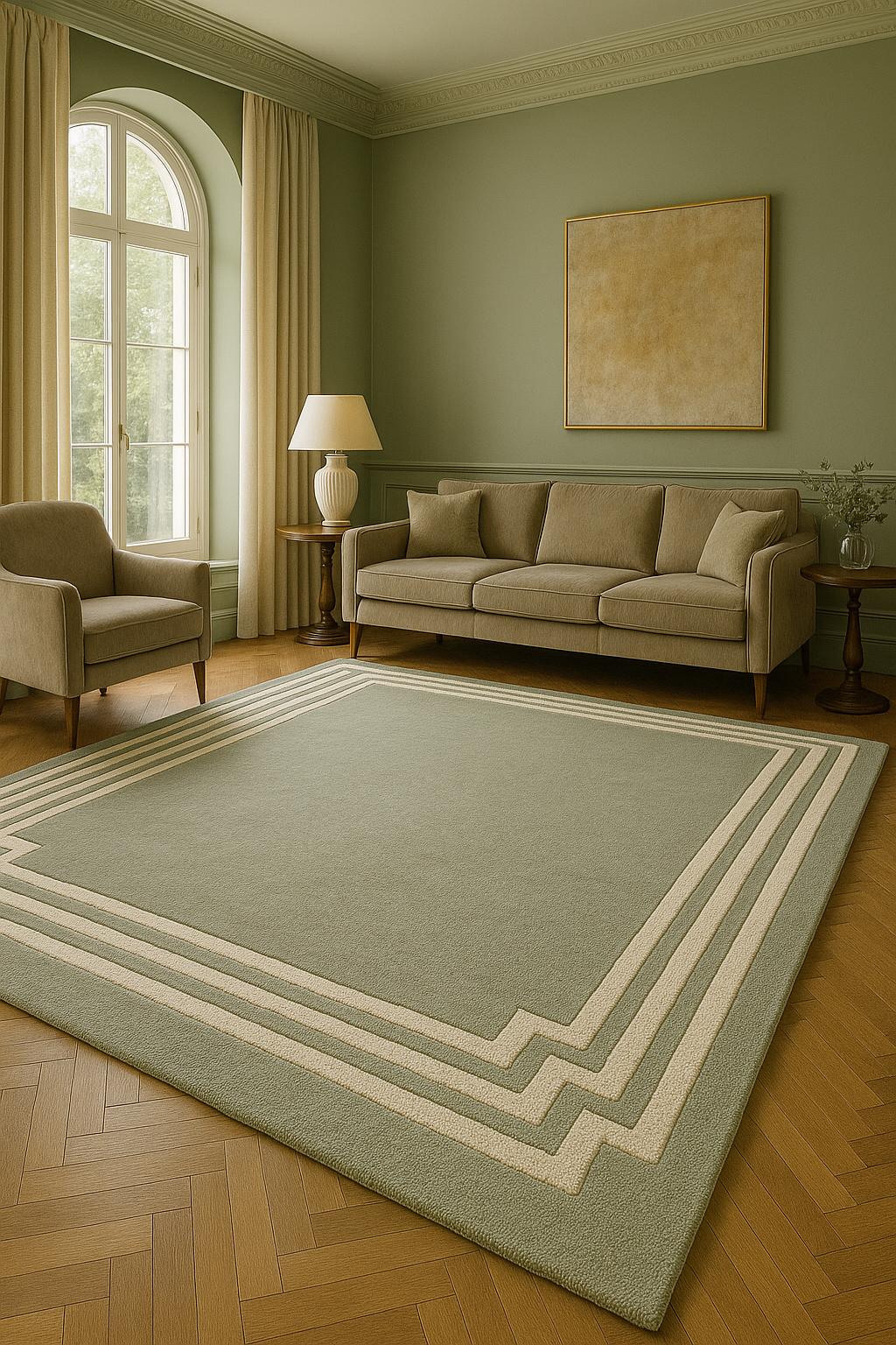 Minimal Border Rug | Hand-Tufted High-low Wool Carpet | Modern Sage Green Living Room Decor