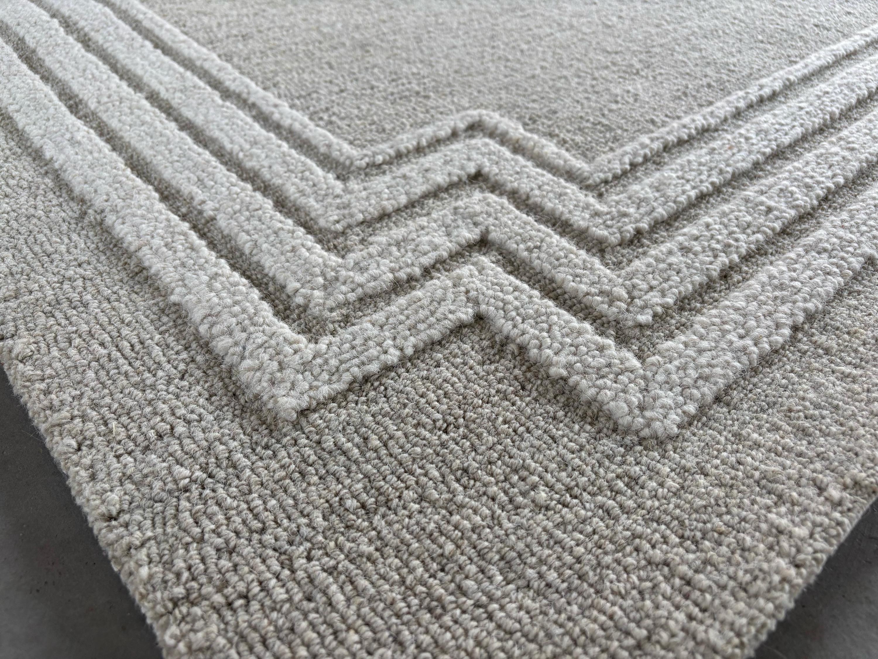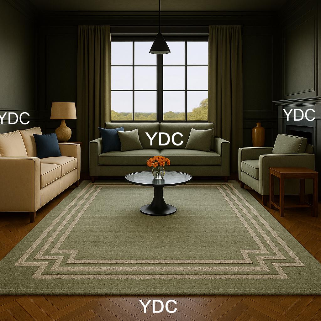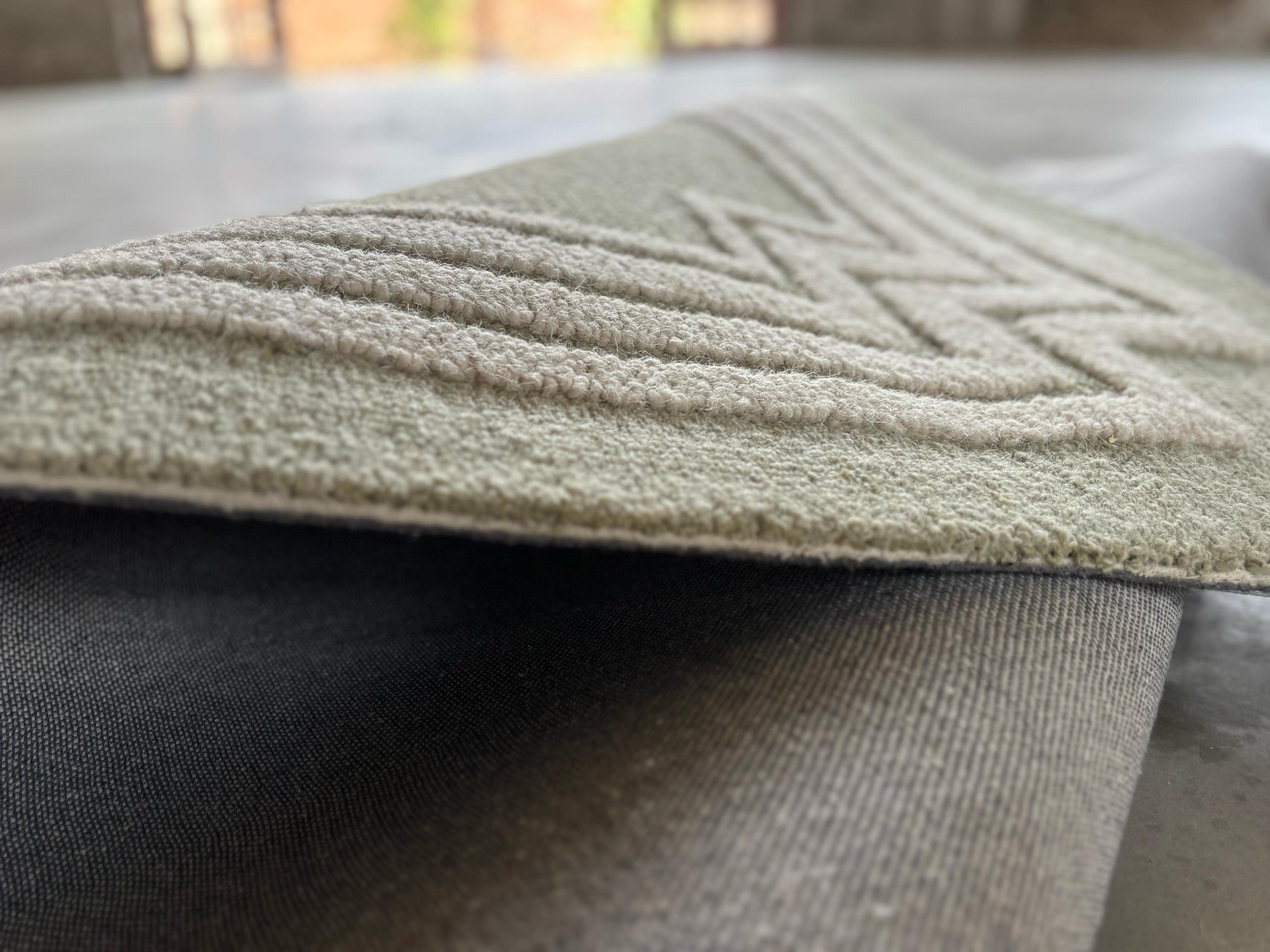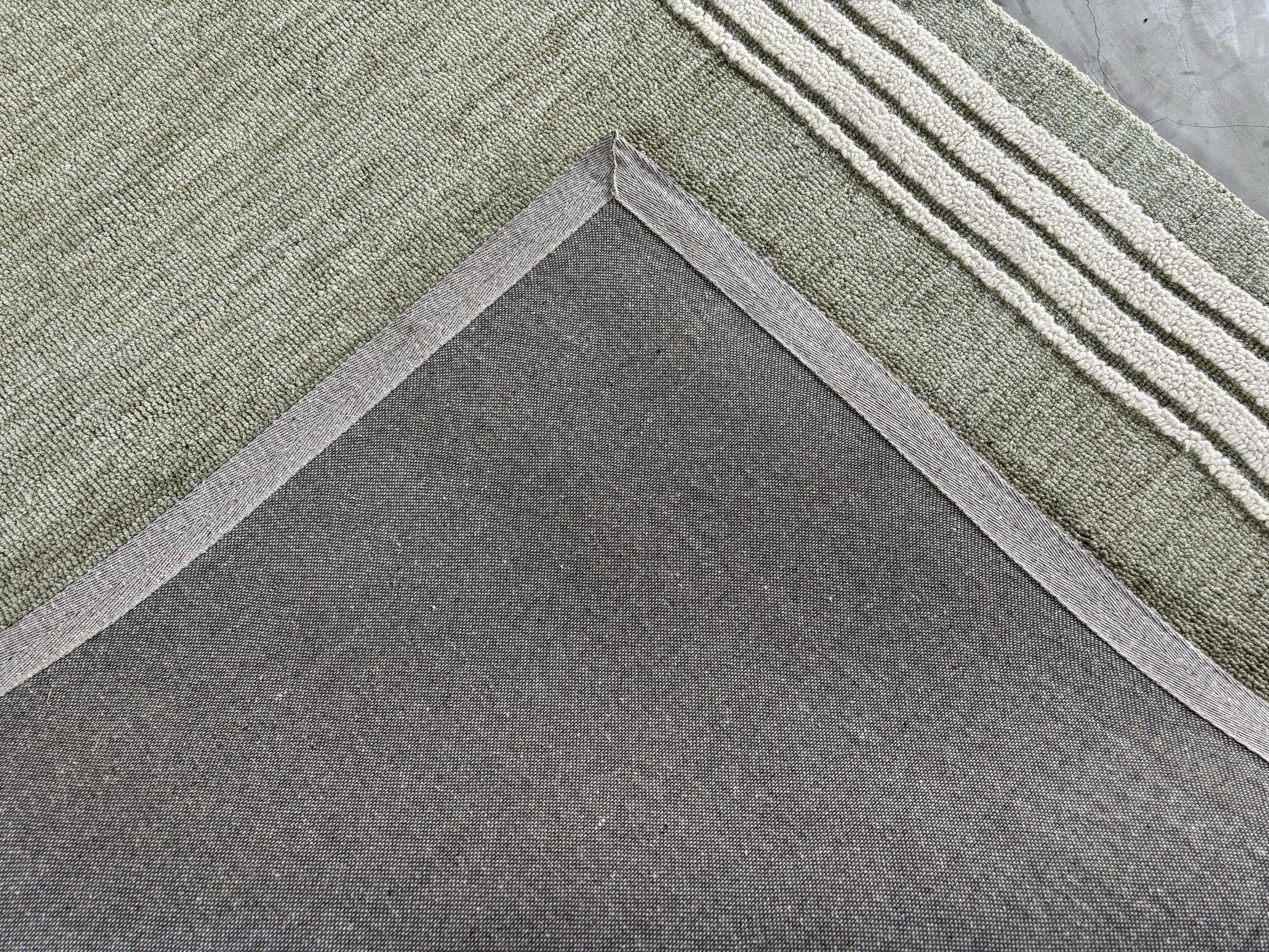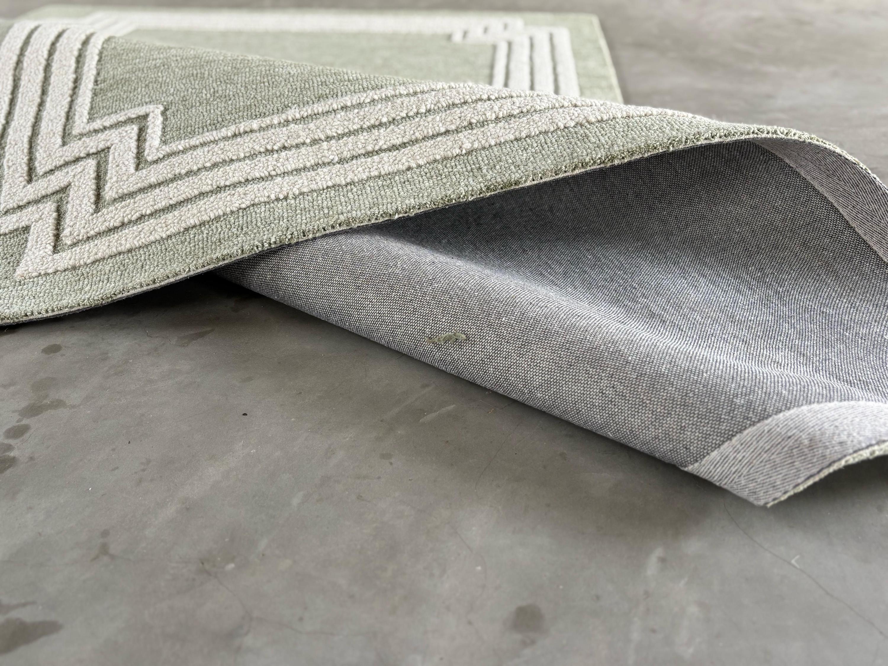 Minimal Border Rug | Hand-Tufted High-low Wool Carpet | Modern Sage Green Living Room Decor