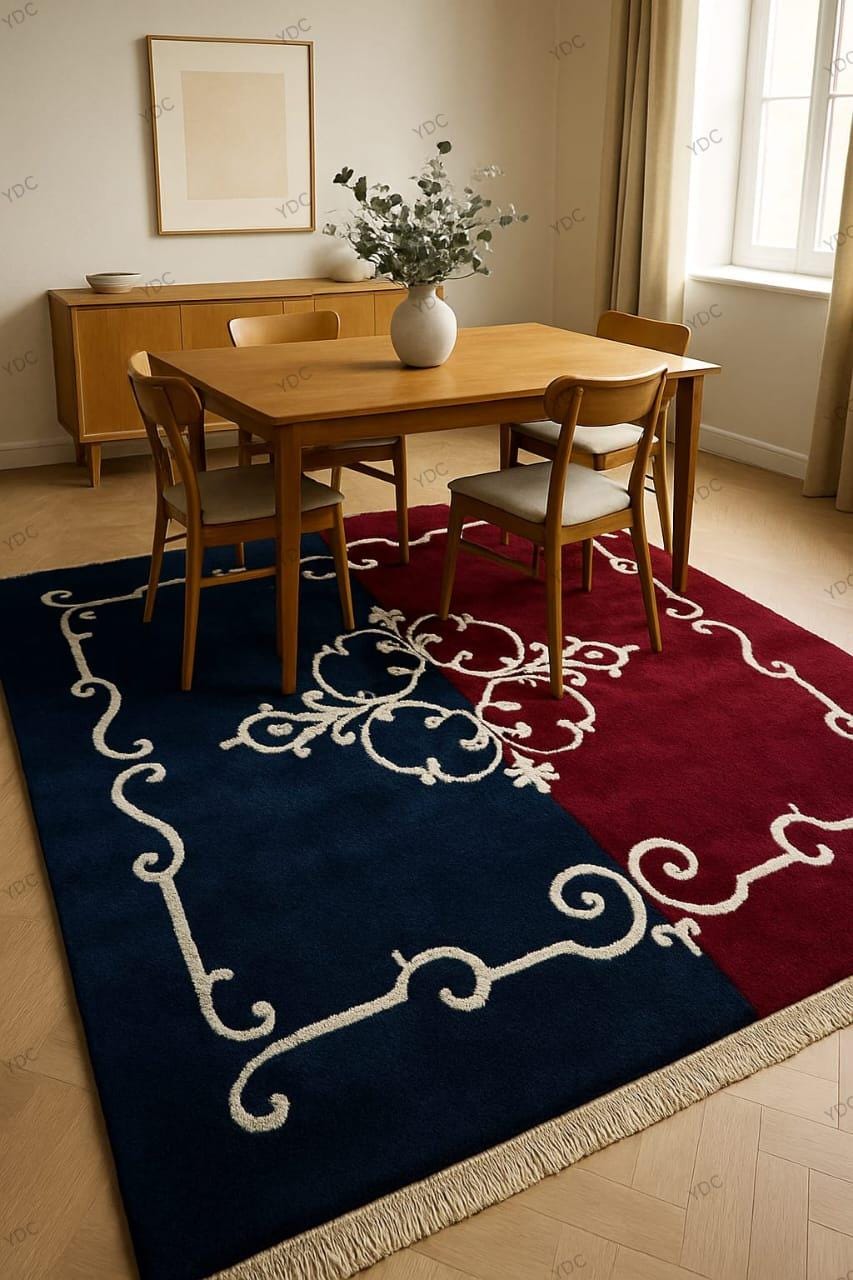 To maintain your rug's beauty, regular vacuuming is essential. Use a vacuum without a beater bar to avoid damaging the fibers. For spot cleaning, gently blot the affected area with a clean, damp cloth and mild detergent. Avoid rubbing, as this can spread the stain.