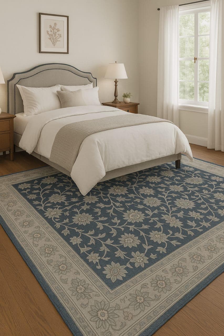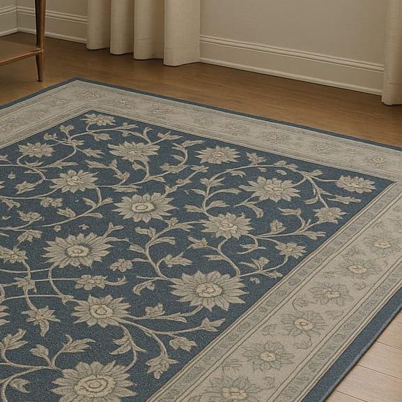 This rug isn't just a floor covering – it's a gentle reminder of classic beauty. Inspired by antique Persian textiles and reimagined with a soft, romantic palette of powder blue and ivory, this piece brings depth and warmth to any space. The floral design whispers rather than shouts, making it perfect for those who love vintage charm without overwhelming patterns.
