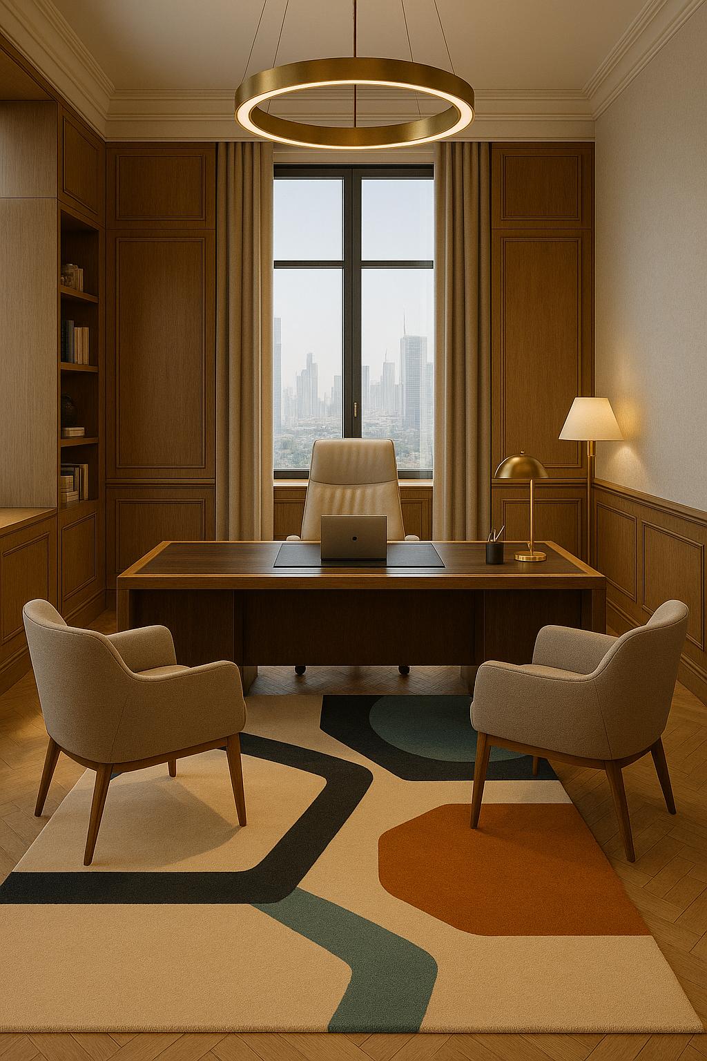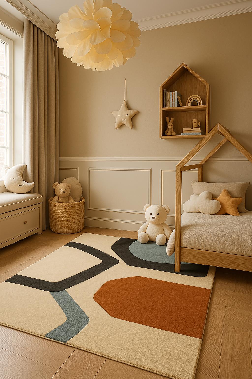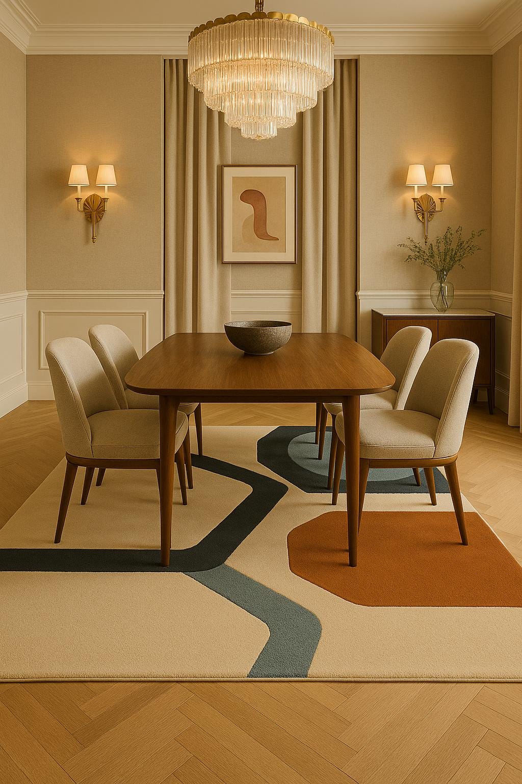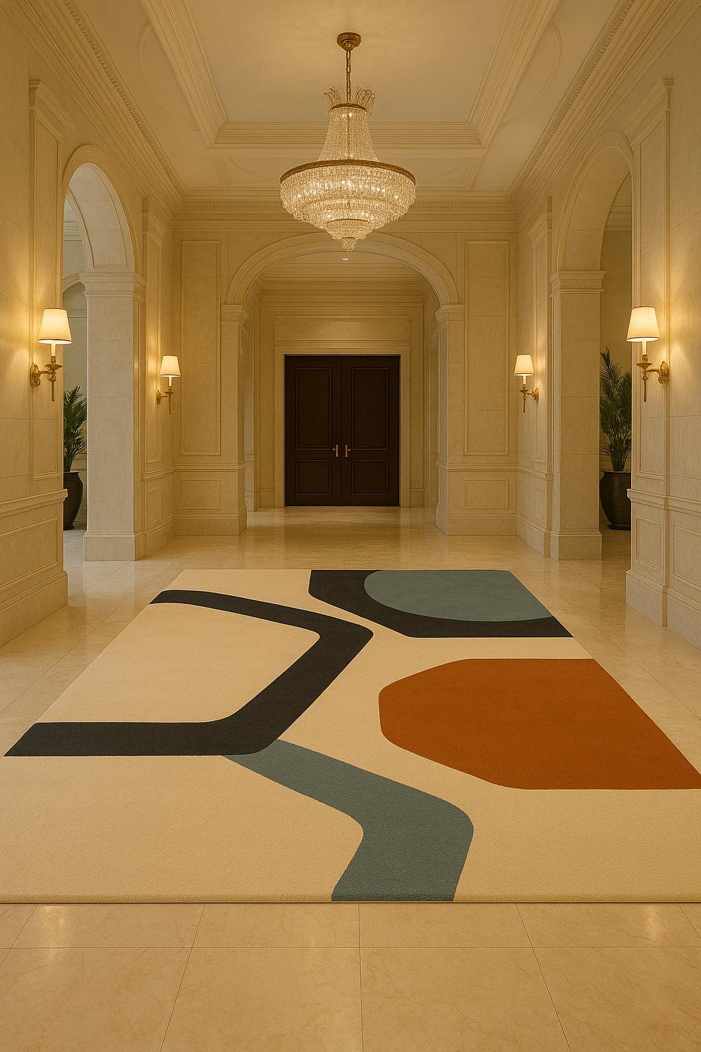 Handcrafted with premium New Zealand wool, this rug offers a soft, dense feel underfoot while maintaining long-lasting durability. The abstract design brings warmth and visual interest without overpowering the space, making it ideal for living rooms, bedrooms, studios, and upscale interiors.