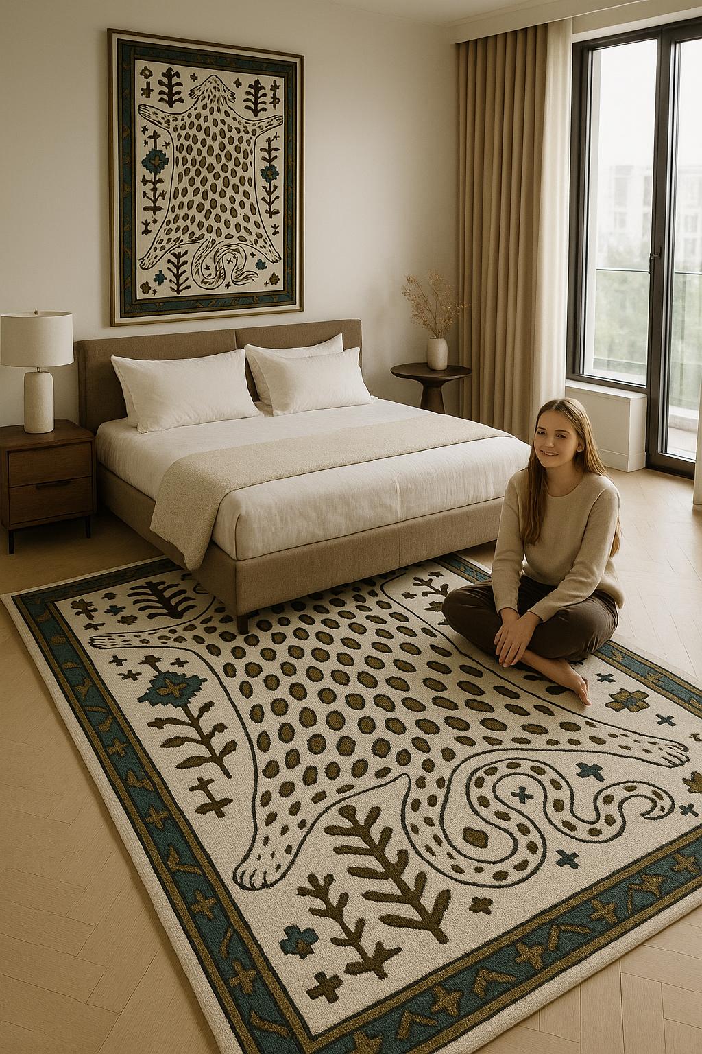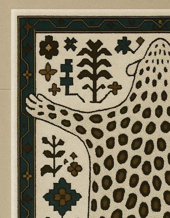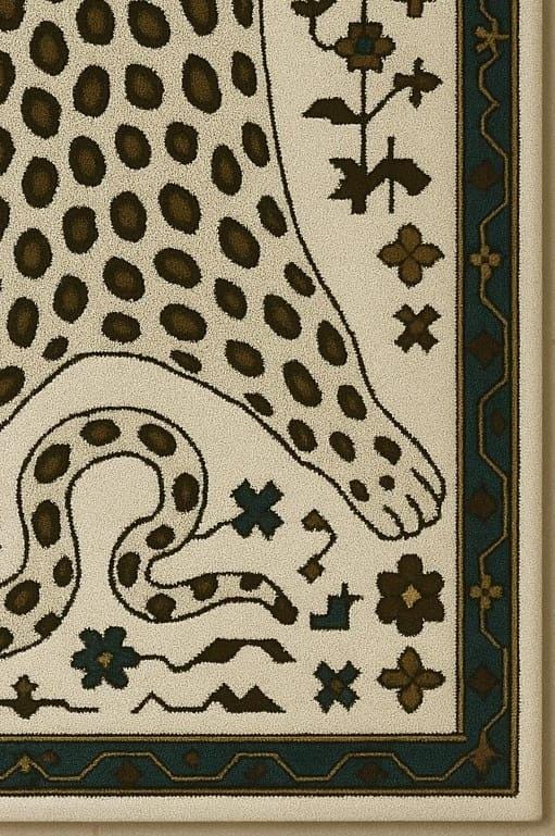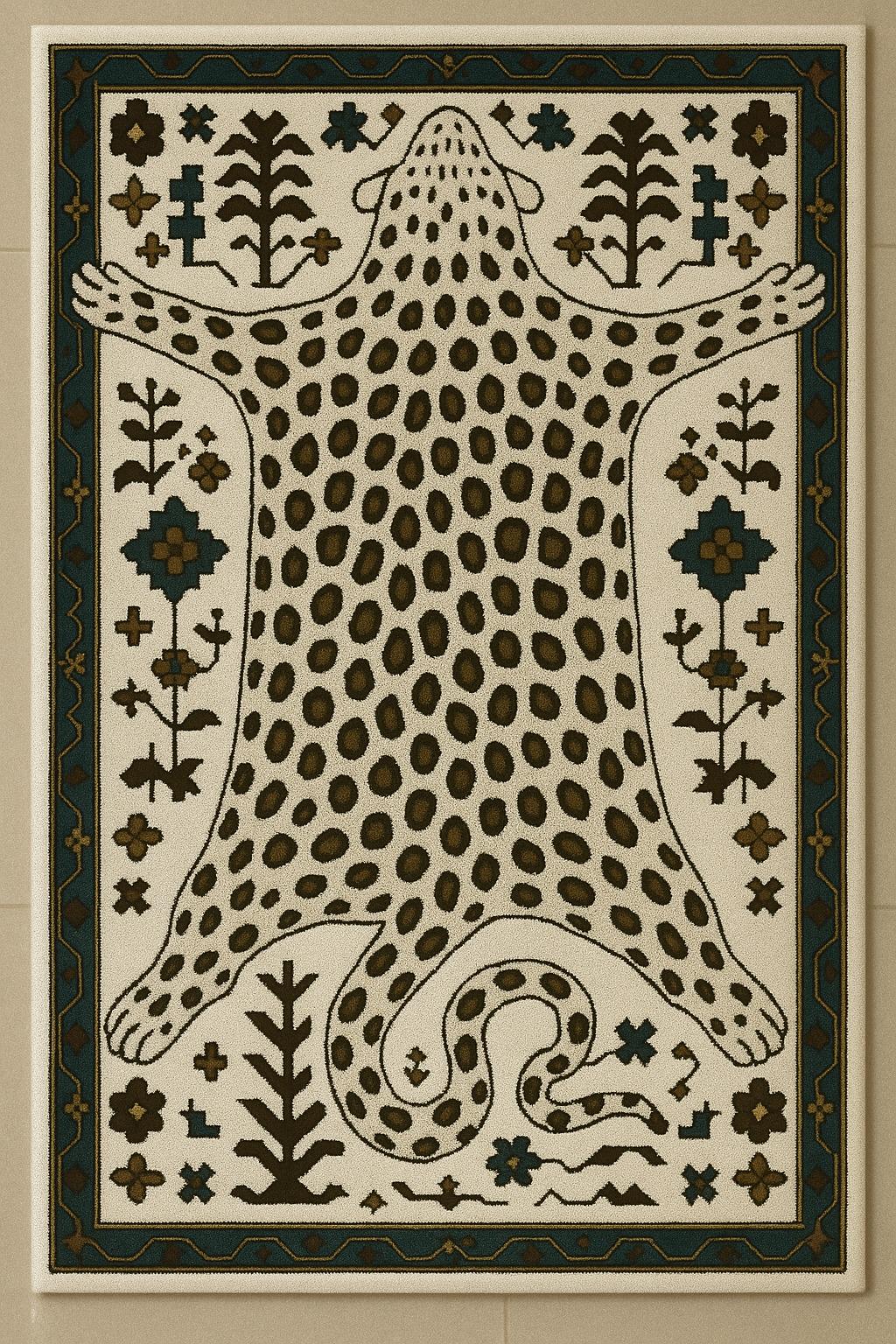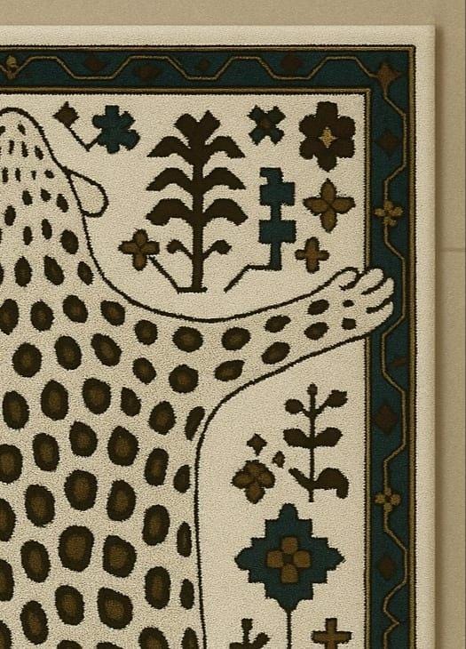 ✨ Bring bold character and artistic elegance into your space with this leopard skin inspired hand tufted rug. The design features a stylised animal hide silhouette with tribal and folk-inspired detailing, creating a statement piece that blends nature, culture, and modern decor beautifully.