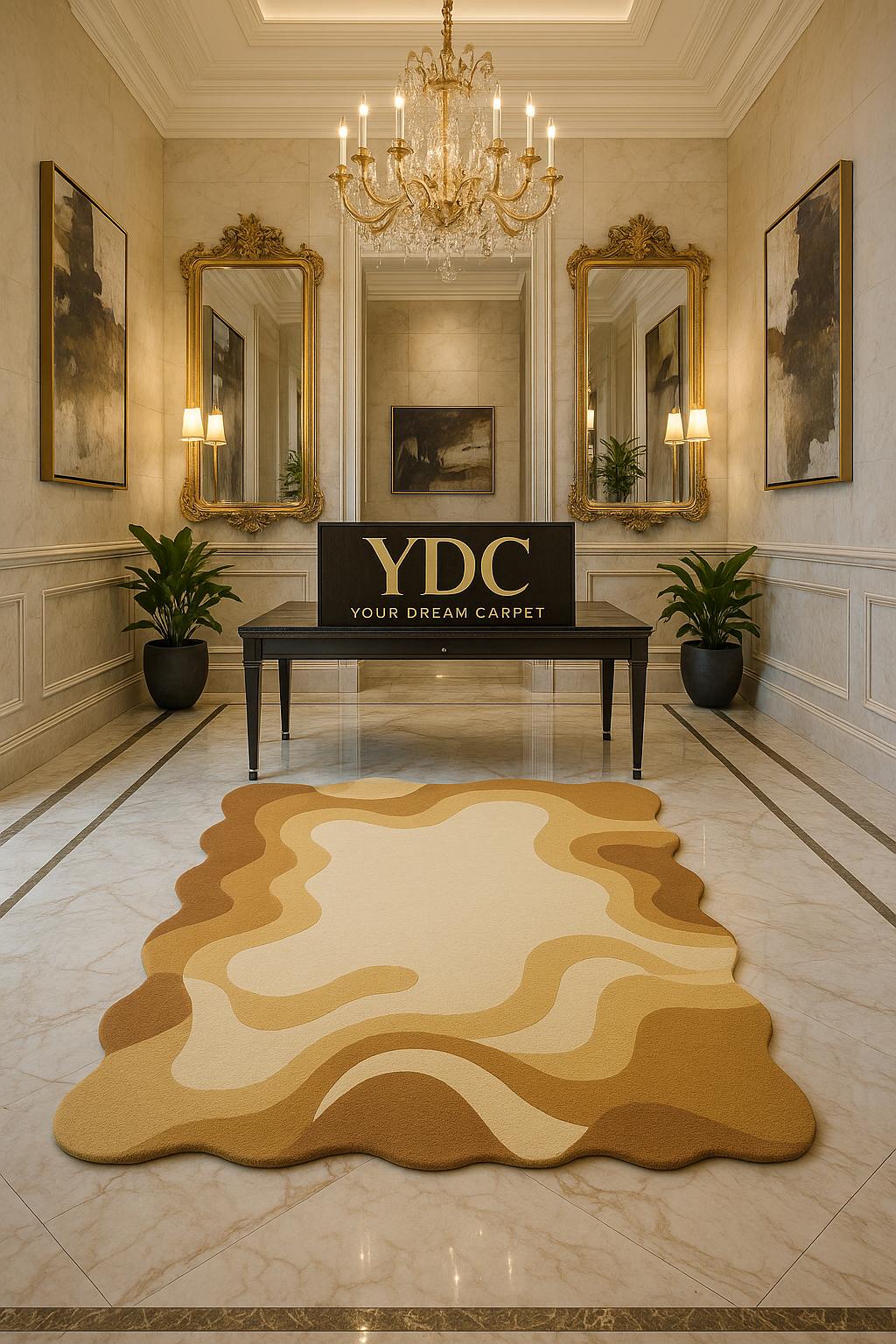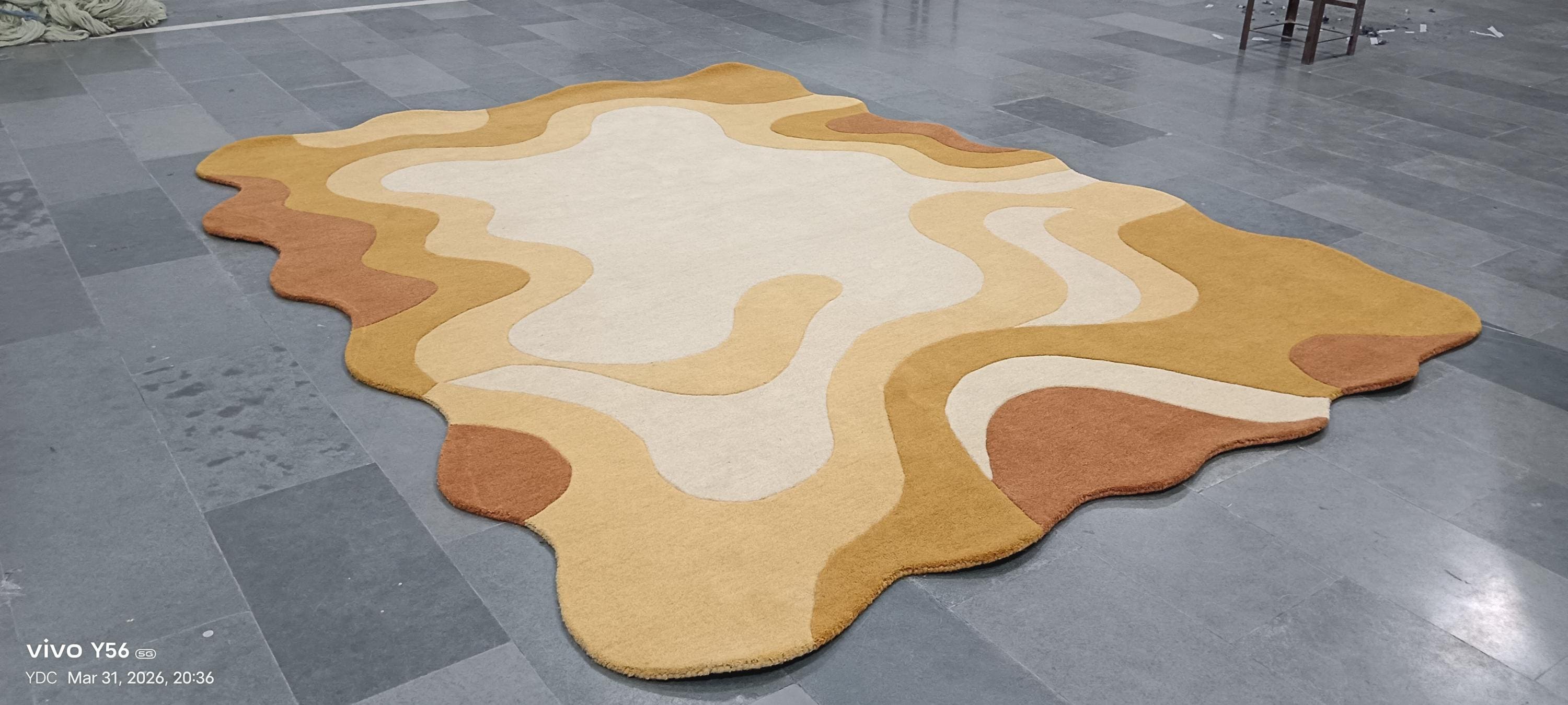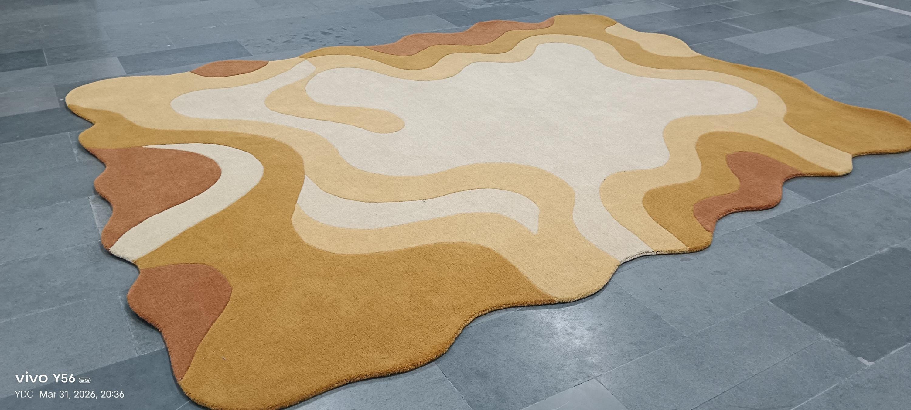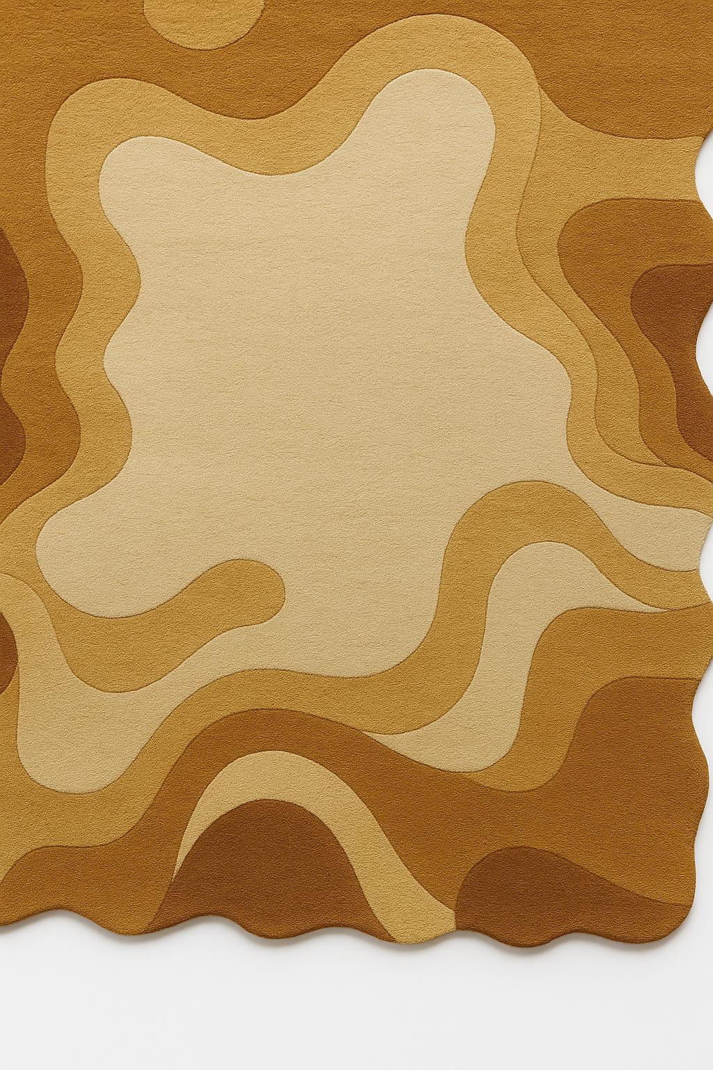 The wavy, asymmetrical contour of this rug draws from natural forms — the edge of a shoreline, the curves of sand dunes, or the soft ripple of wind-blown grass. 🌿🌬️🌊