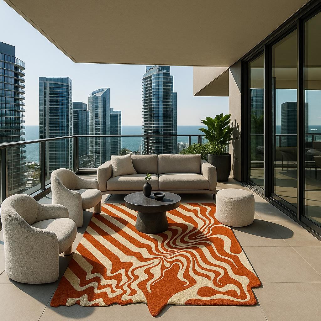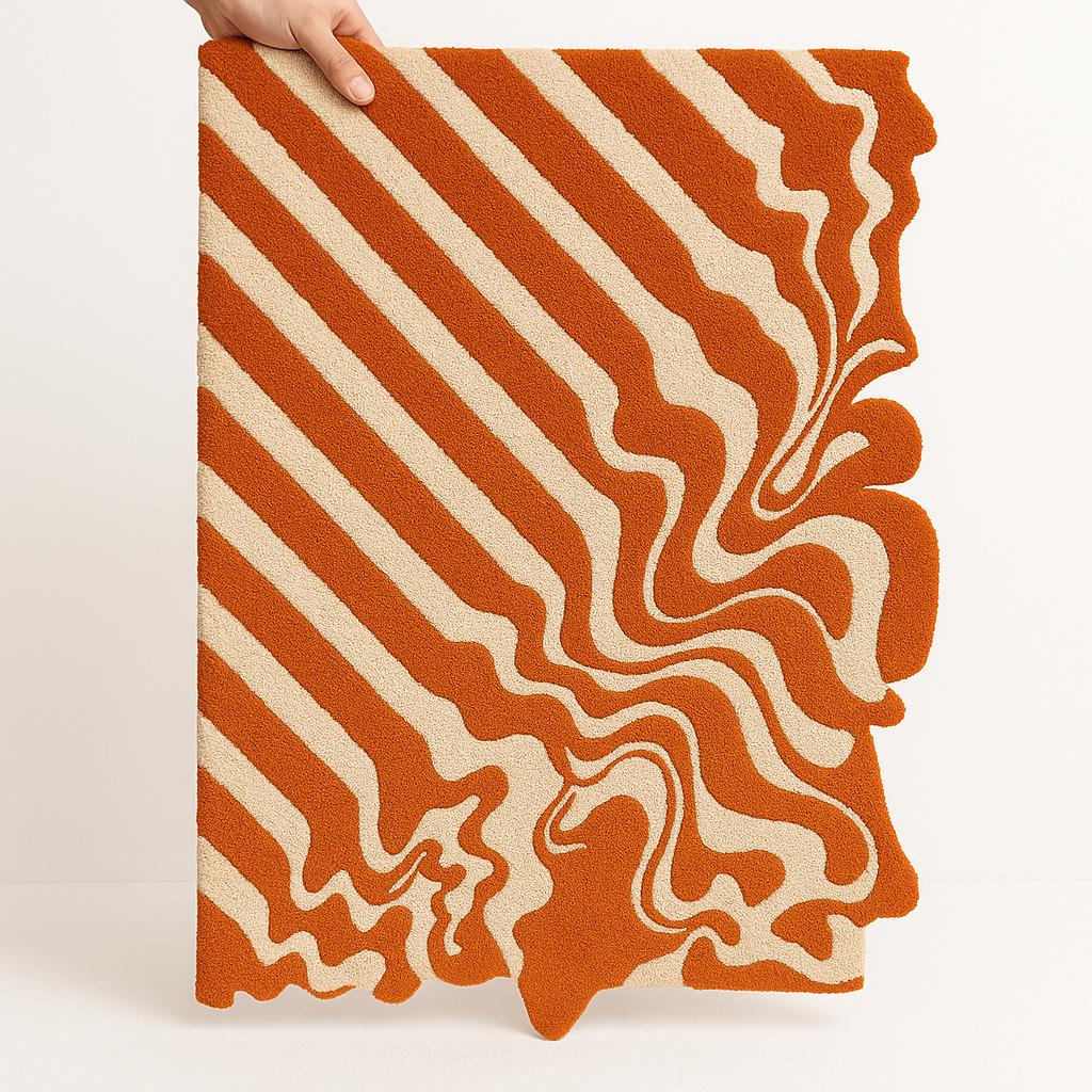 Modern Abstract Ripple Rug | Hand Tufted Wool Carpet | Wavy Orange Home Decor