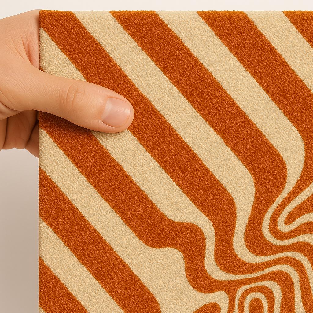 Featuring a mesmerizing wave and stripe pattern in burnt orange and cream, this rug instantly transforms any room into a modern art-inspired haven. Hand-tufted from Premium New Zealand Wool, it combines luxury, comfort, and durability in every thread.