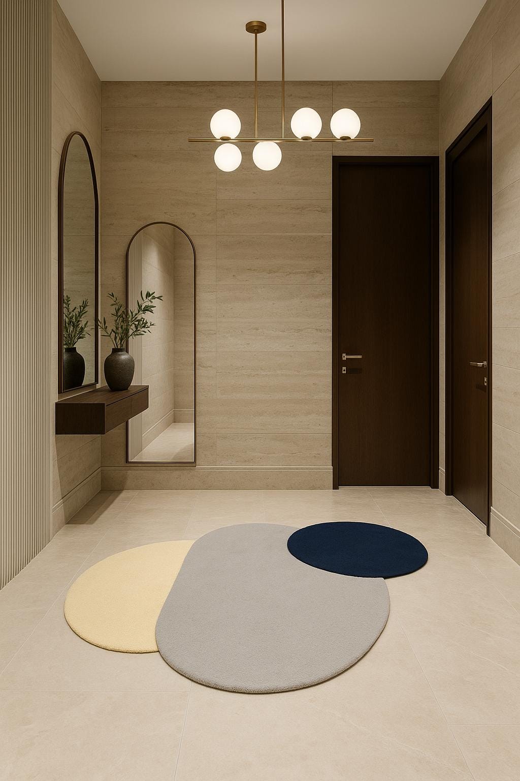 🌤️ Soft neutrals — creamy beige, sandy taupe, light stone — provide calm.