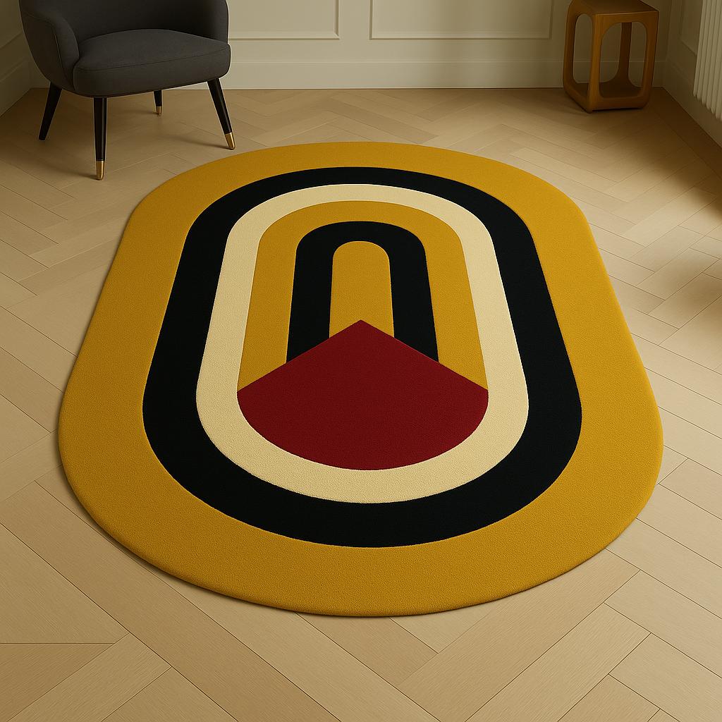 Retro Arch Kids Rug | Hand Tufted Wool Carpet | Modern Mustard Nursery Decor