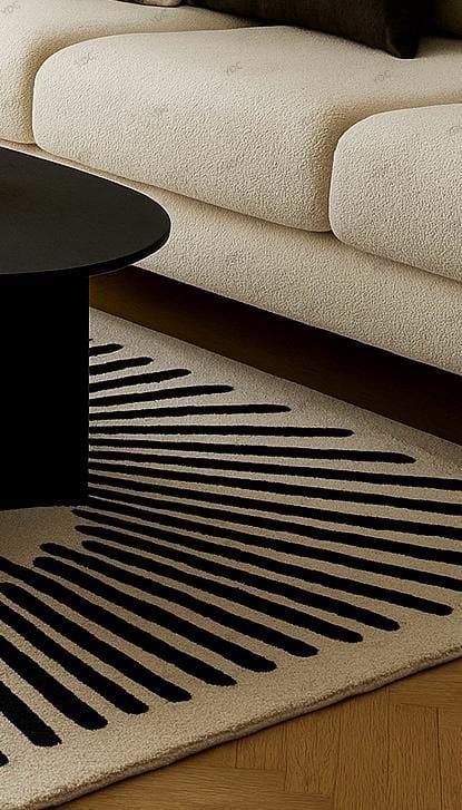 Hand tufted by skilled artisans using premium New Zealand wool, this rug offers exceptional softness, durability, and clean carved detailing that enhances the sharp contrast lines. The minimal yet powerful design blends effortlessly with modern, Scandinavian, and luxury décor styles.