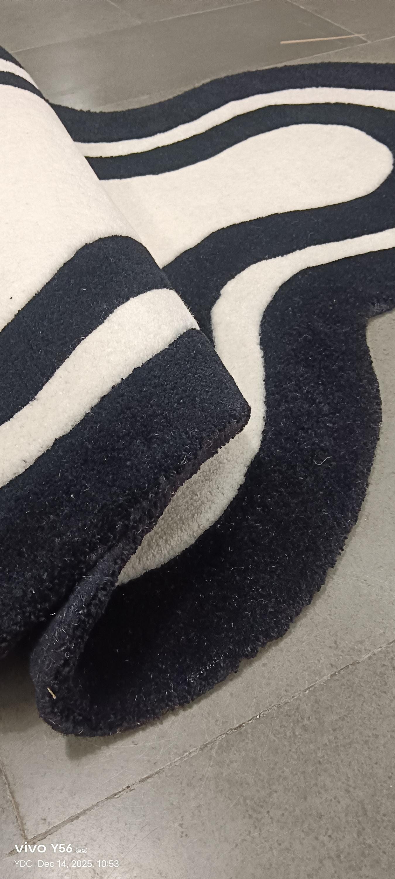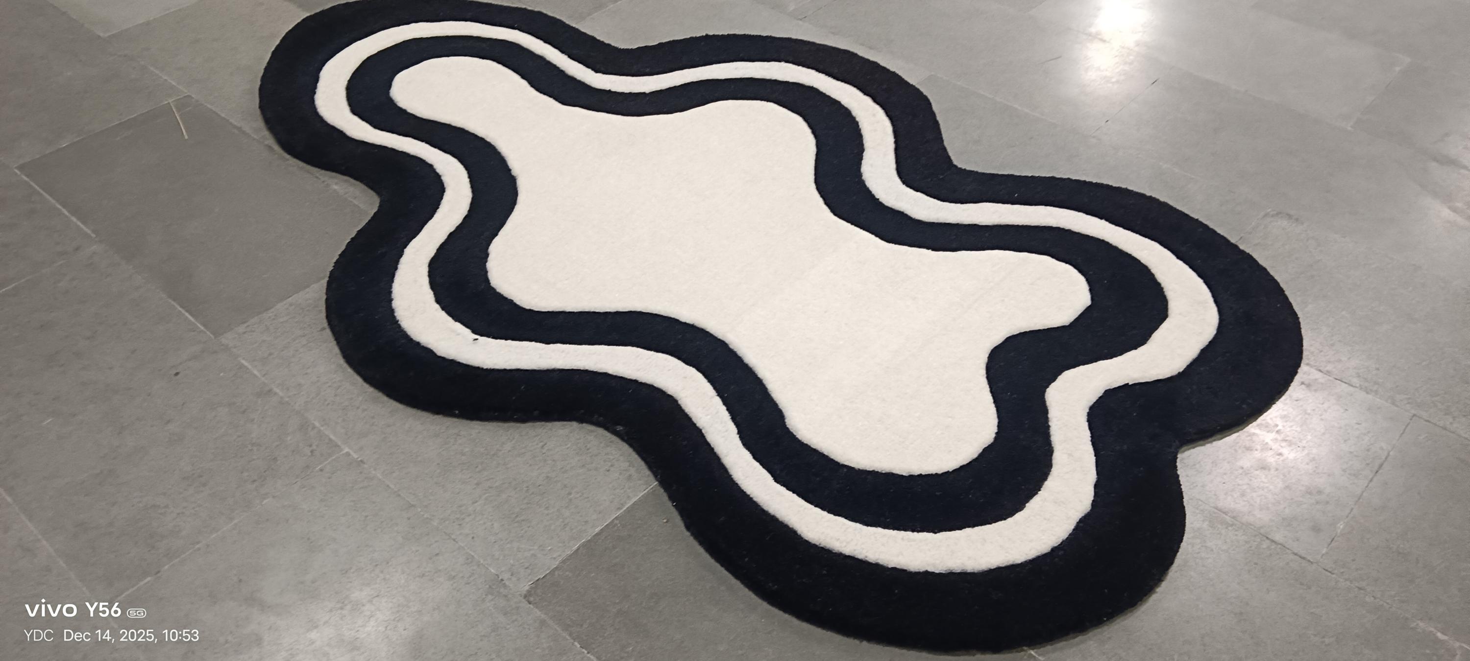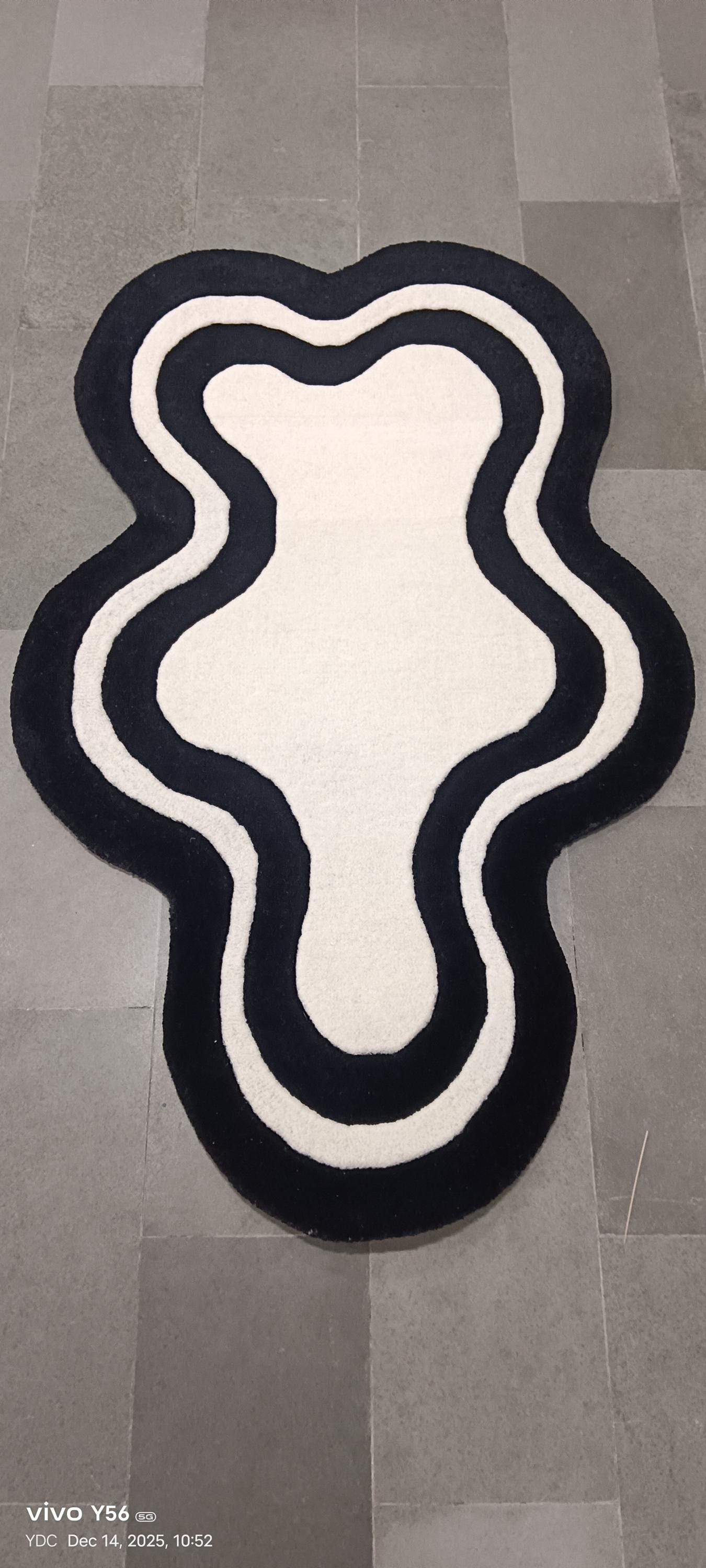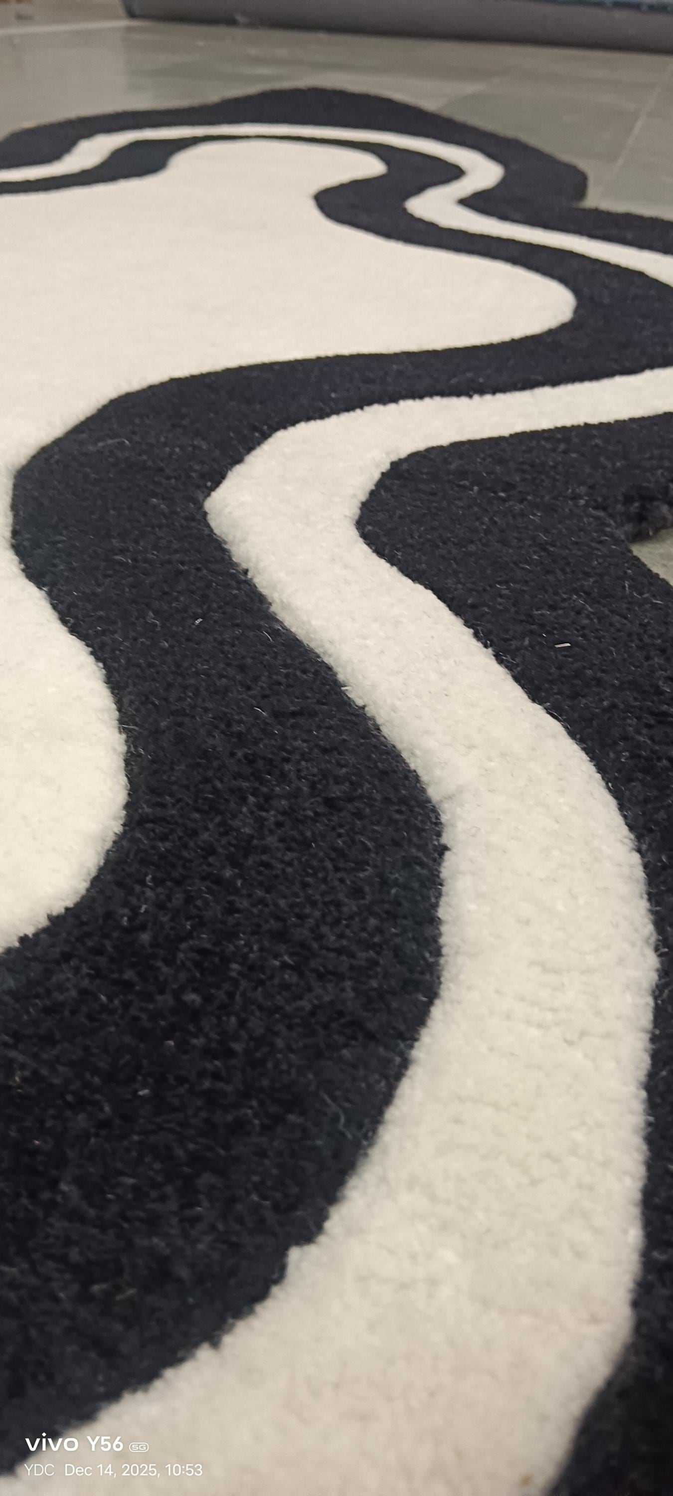 Hand-Tufted New Zealand Wool Rug: Black & Cream Irregular Wave