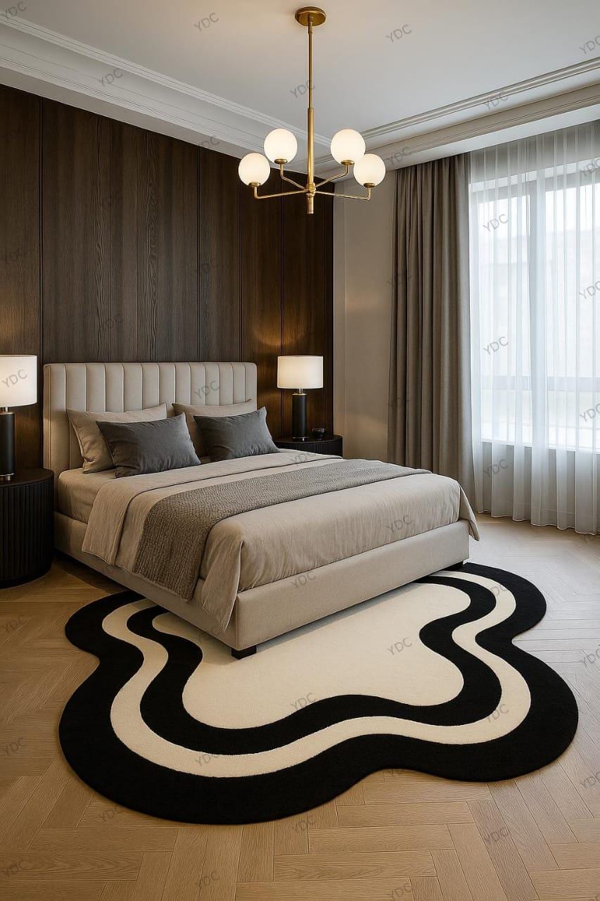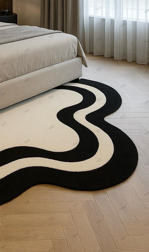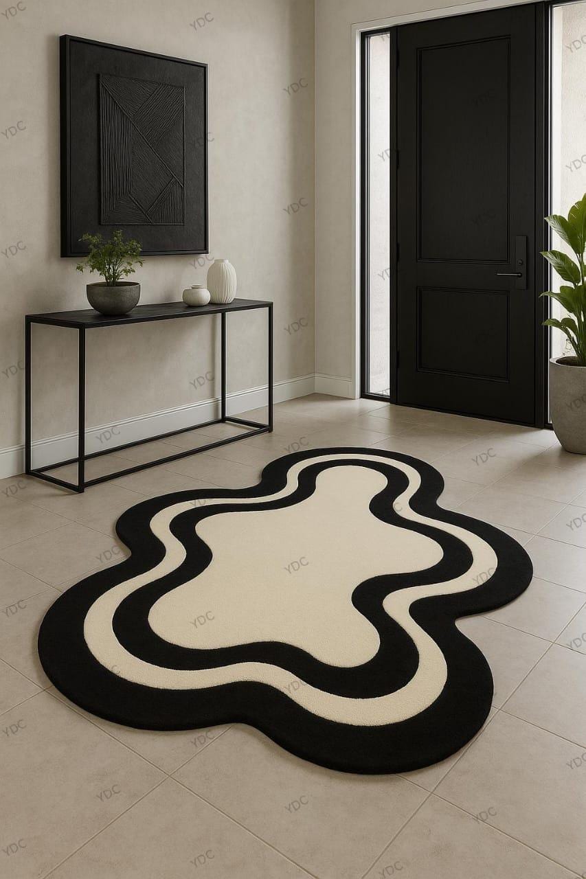 Say goodbye to boring rectangular rugs! This design breaks the mold with its freeform, wavy outline that brings visual flow and energy to your space. The black and cream contrast adds depth, drama, and sophistication while staying neutral enough to match with almost any interior.