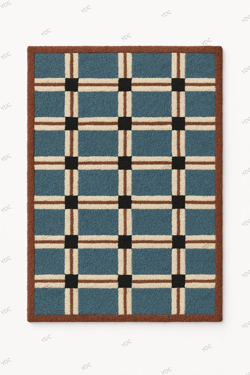 Hand-Tufted Mid-Century Modern Geometric Grid Design: New Zealand Wool Rug