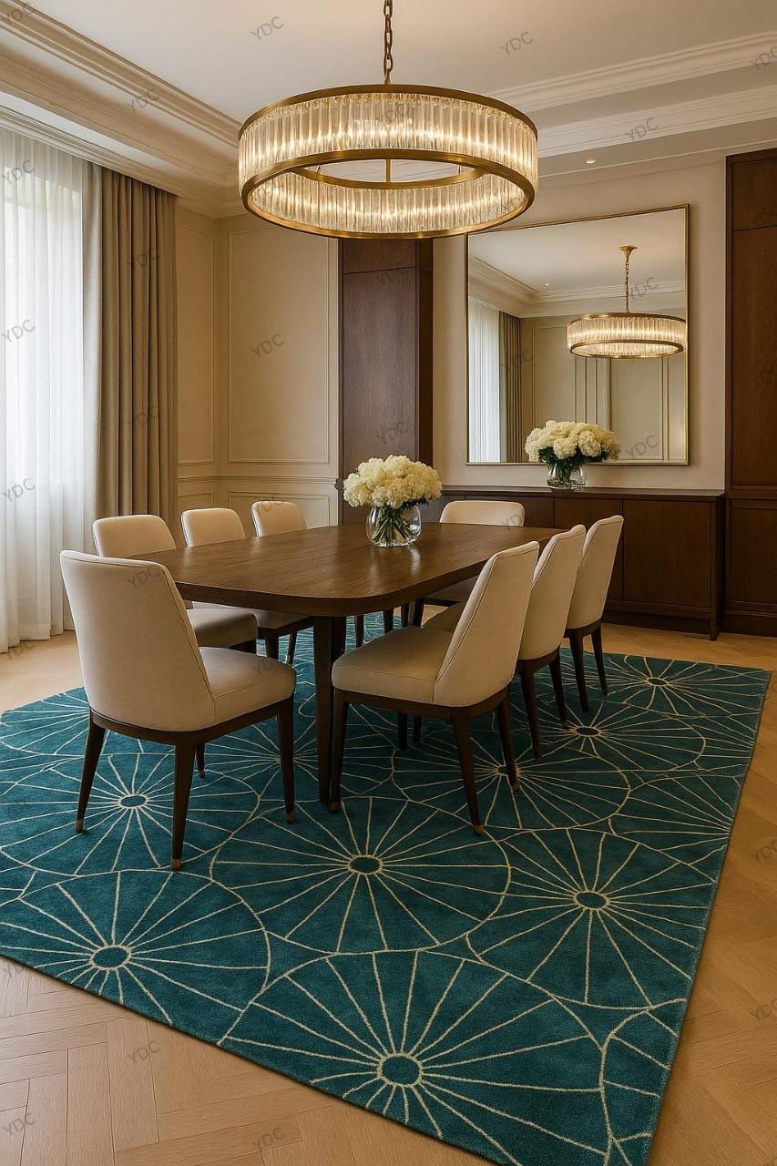 To maintain your rug's beauty, regular vacuuming is essential. Use a vacuum without a beater bar to avoid damaging the fibers. For spot cleaning, gently blot the affected area with a clean, damp cloth and mild detergent. Avoid rubbing, as this can spread the stain.