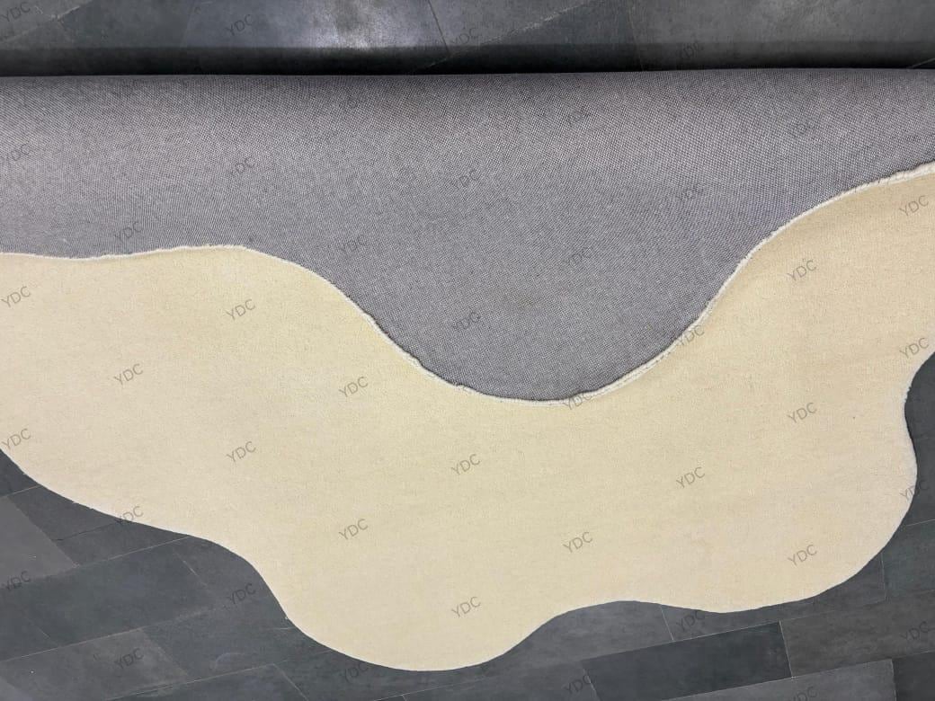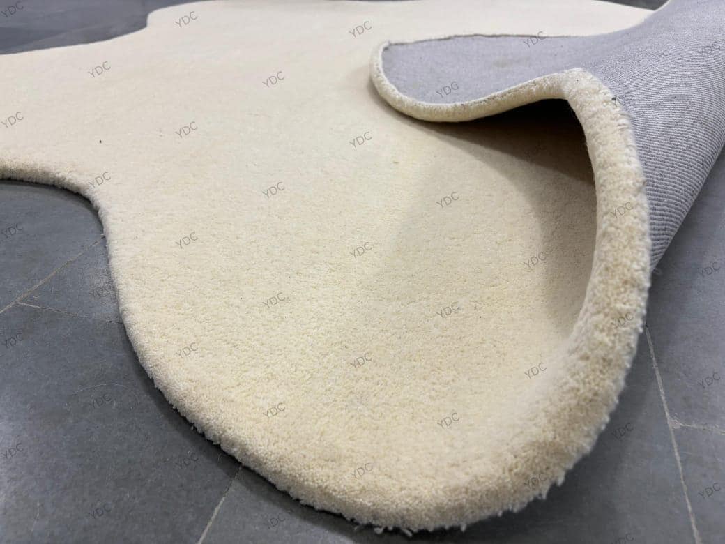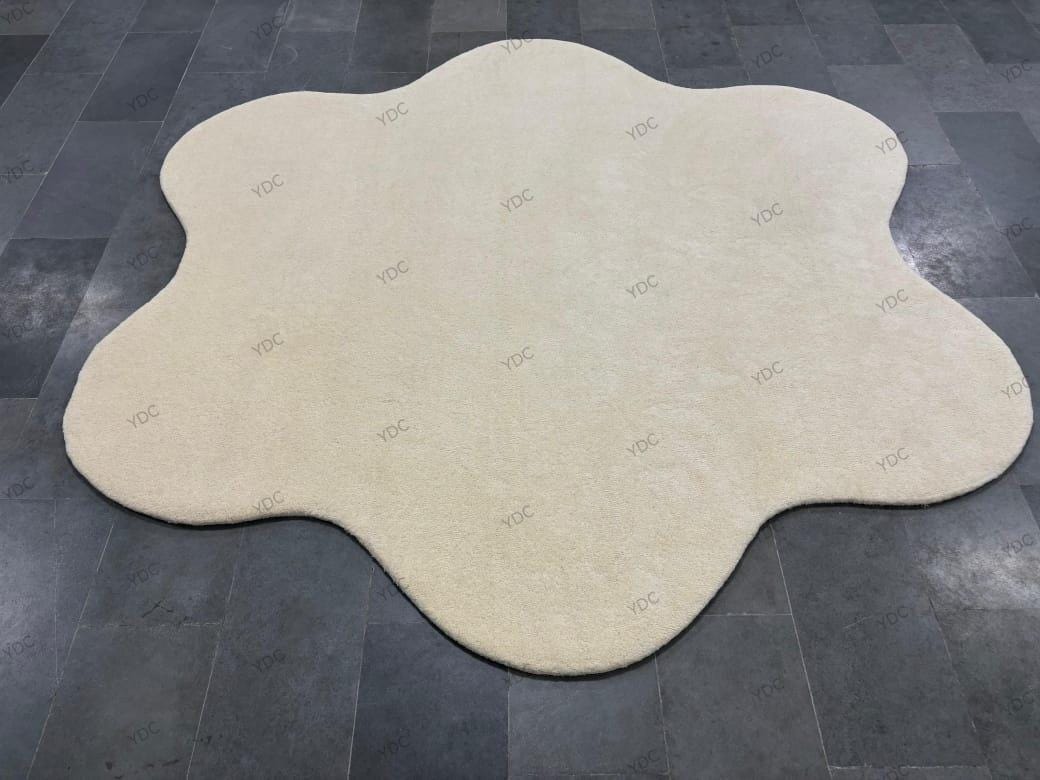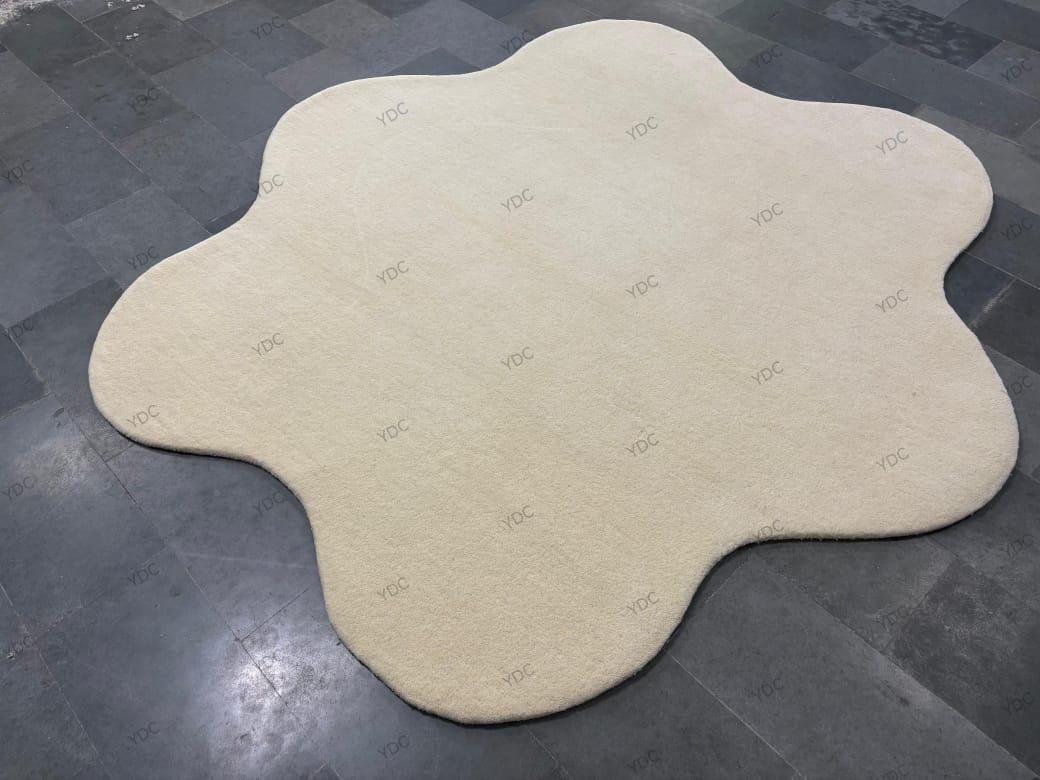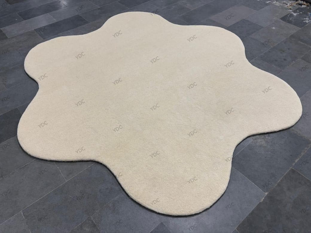 Cream Blob Shape Rug | Hand Tufted Wool Carpet | Modern Irregular Living Room Decor
