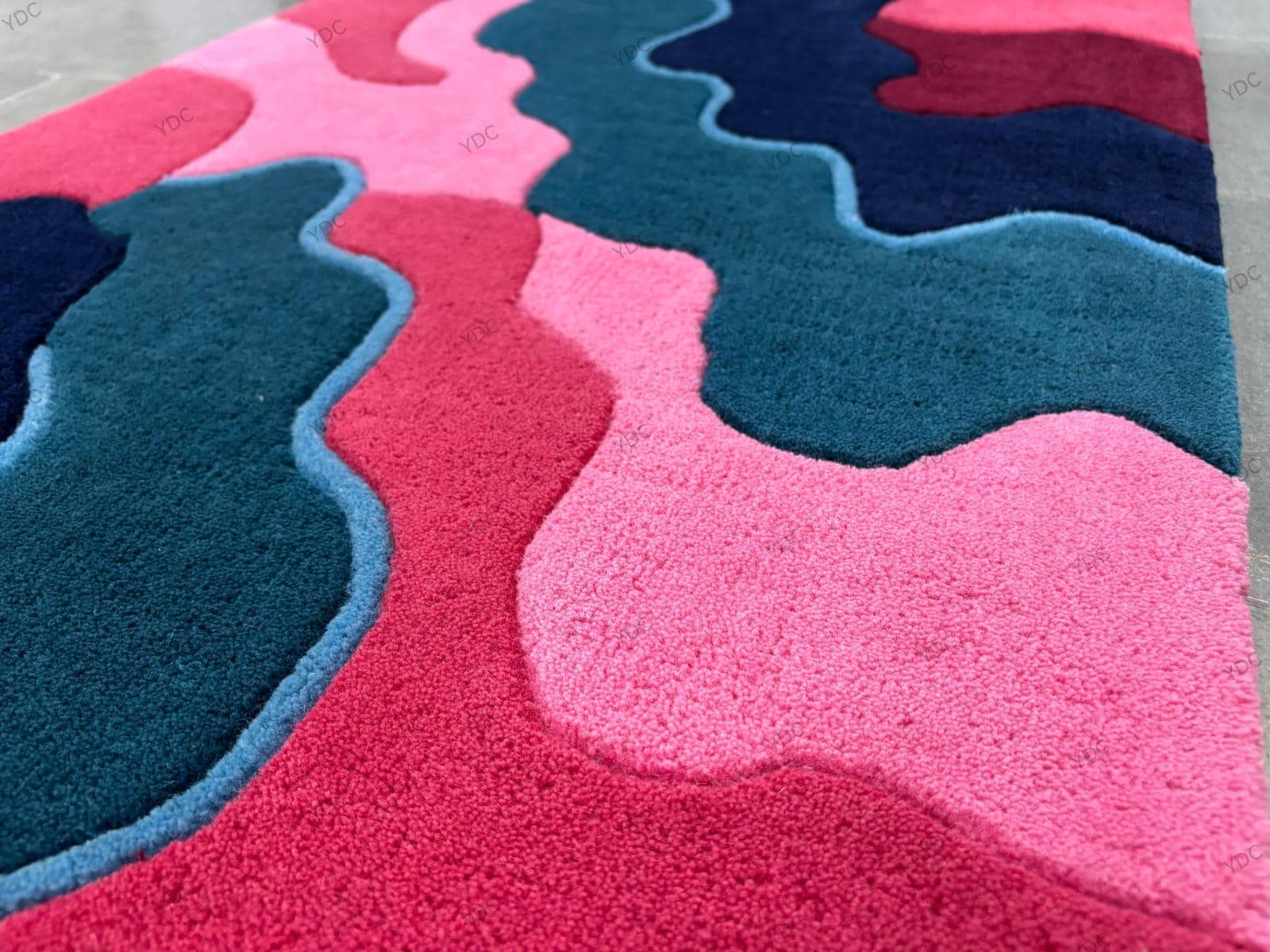 Hand Tufted Abstract Wool Rug: Pink, Teal & Navy Waves