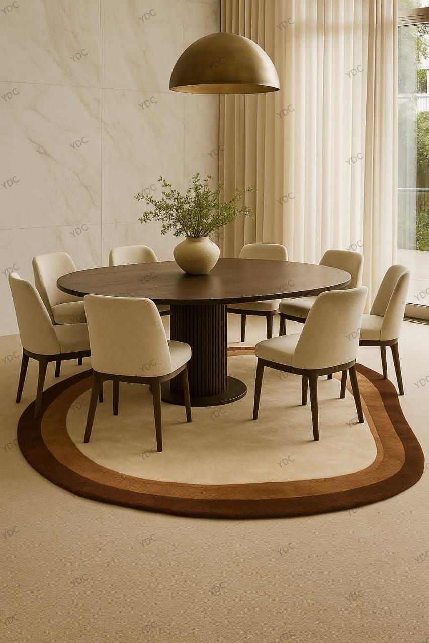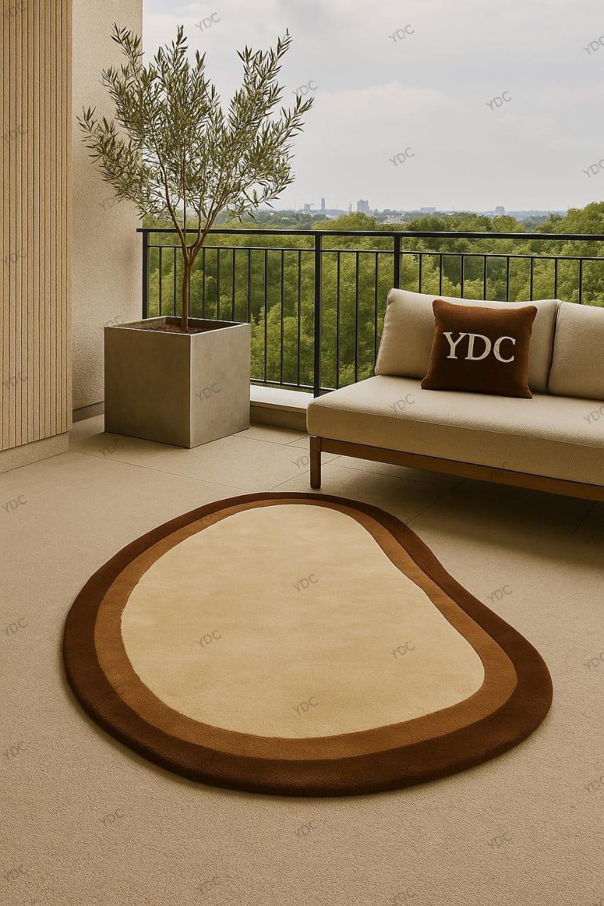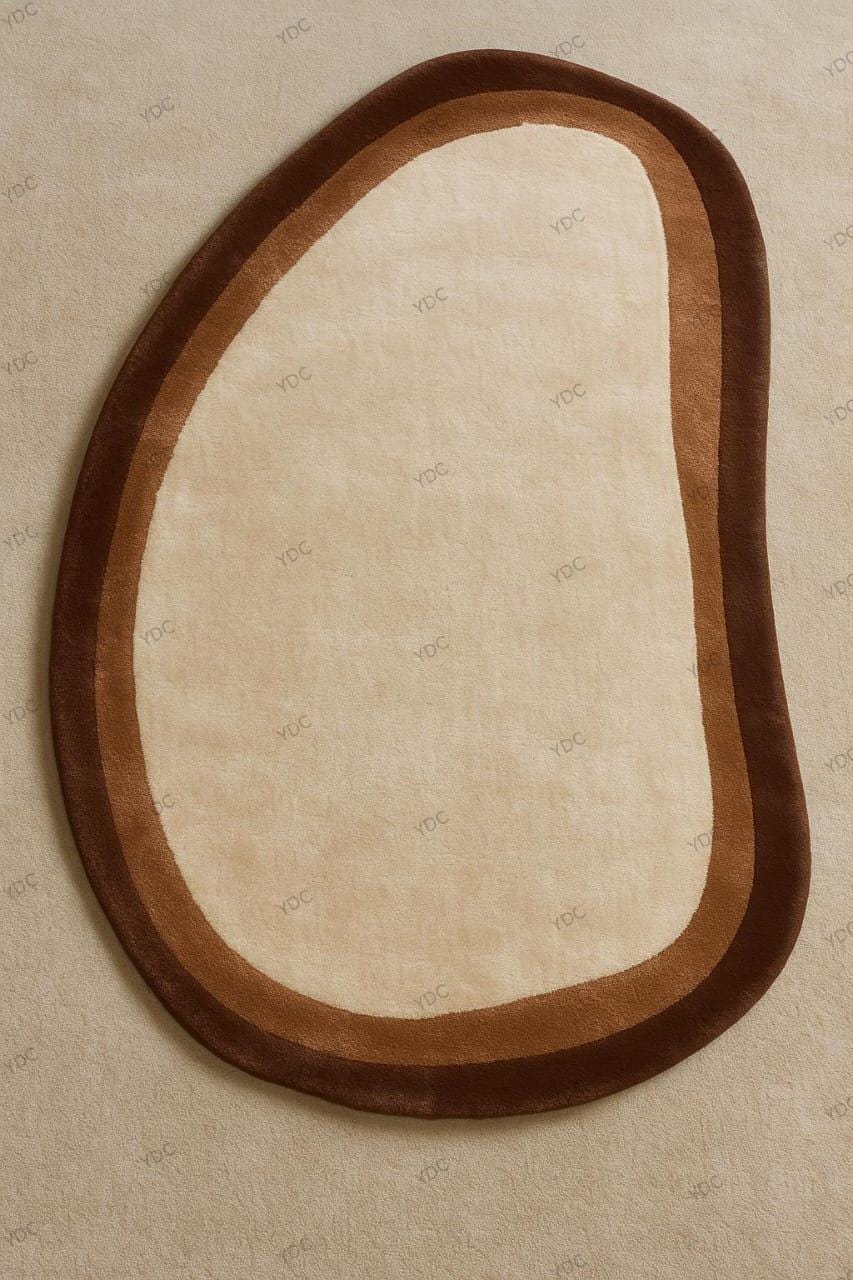 Add a soft modern touch to your space with this elegant irregular shape area rug, featuring a warm beige center framed by a rich brown organic border. The fluid, freeform shape creates a natural and calming aesthetic, making it a perfect fit for contemporary, minimalist, and luxury interiors.