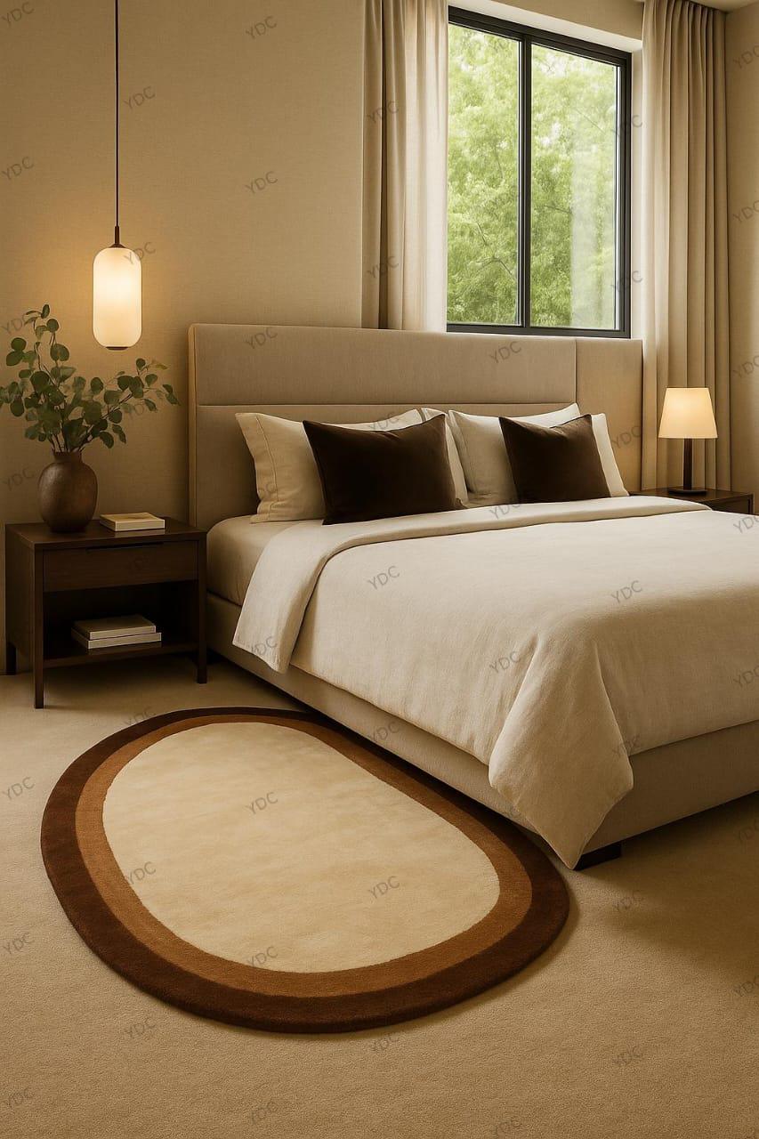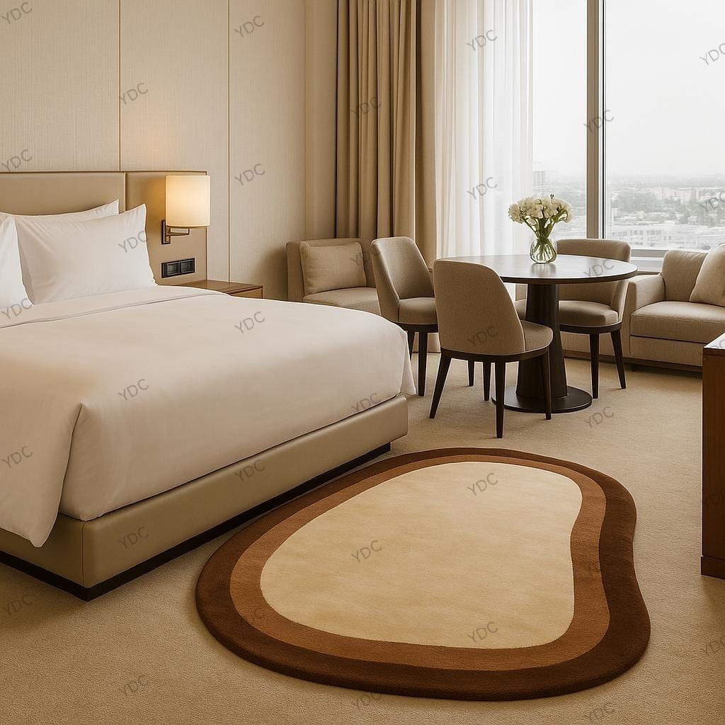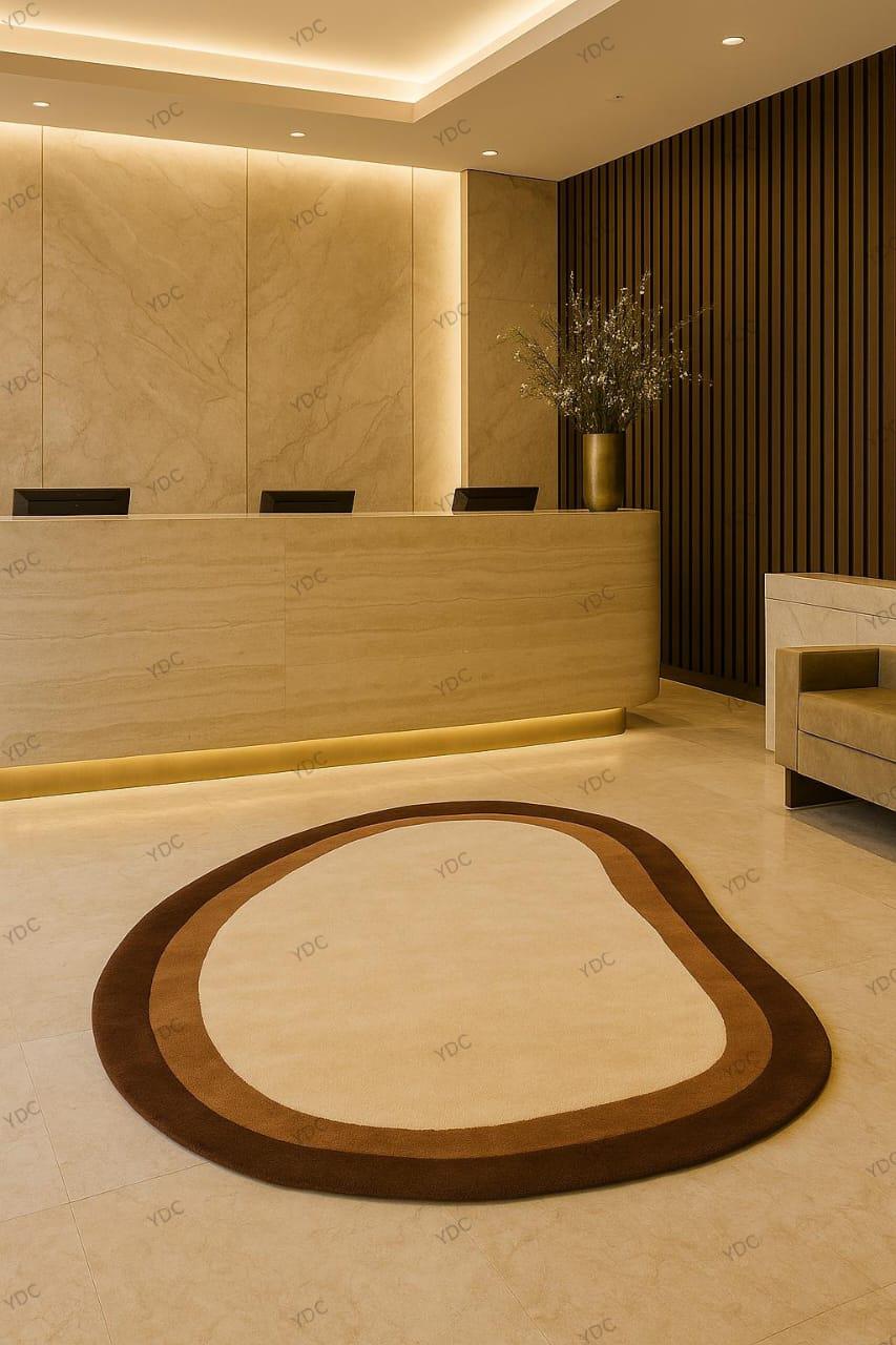 Add a soft modern touch to your space with this elegant irregular shape area rug, featuring a warm beige center framed by a rich brown organic border. The fluid, freeform shape creates a natural and calming aesthetic, making it a perfect fit for contemporary, minimalist, and luxury interiors.