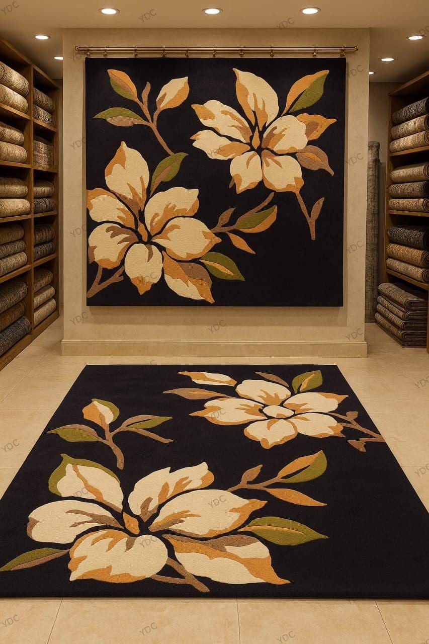 Bring timeless elegance into your home with this stunning Hand Tufted wool floral rug, designed with large, graceful blooms on a rich dark base. The bold flower pattern adds warmth, luxury, and a classic artistic touch to any interior—perfect for spacious living rooms, lounges, hotel suites, and family areas.