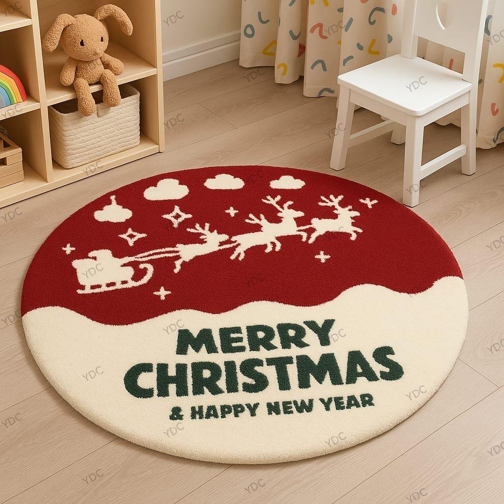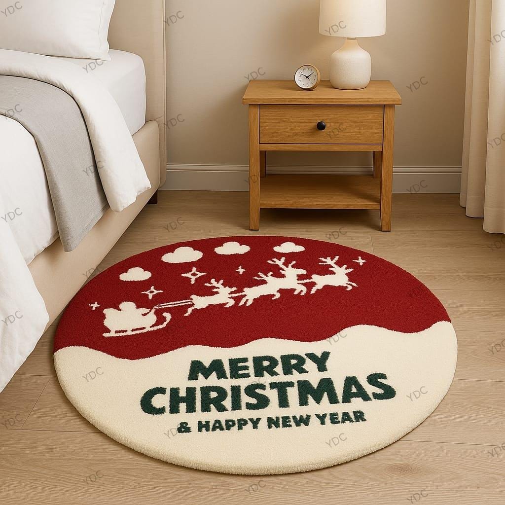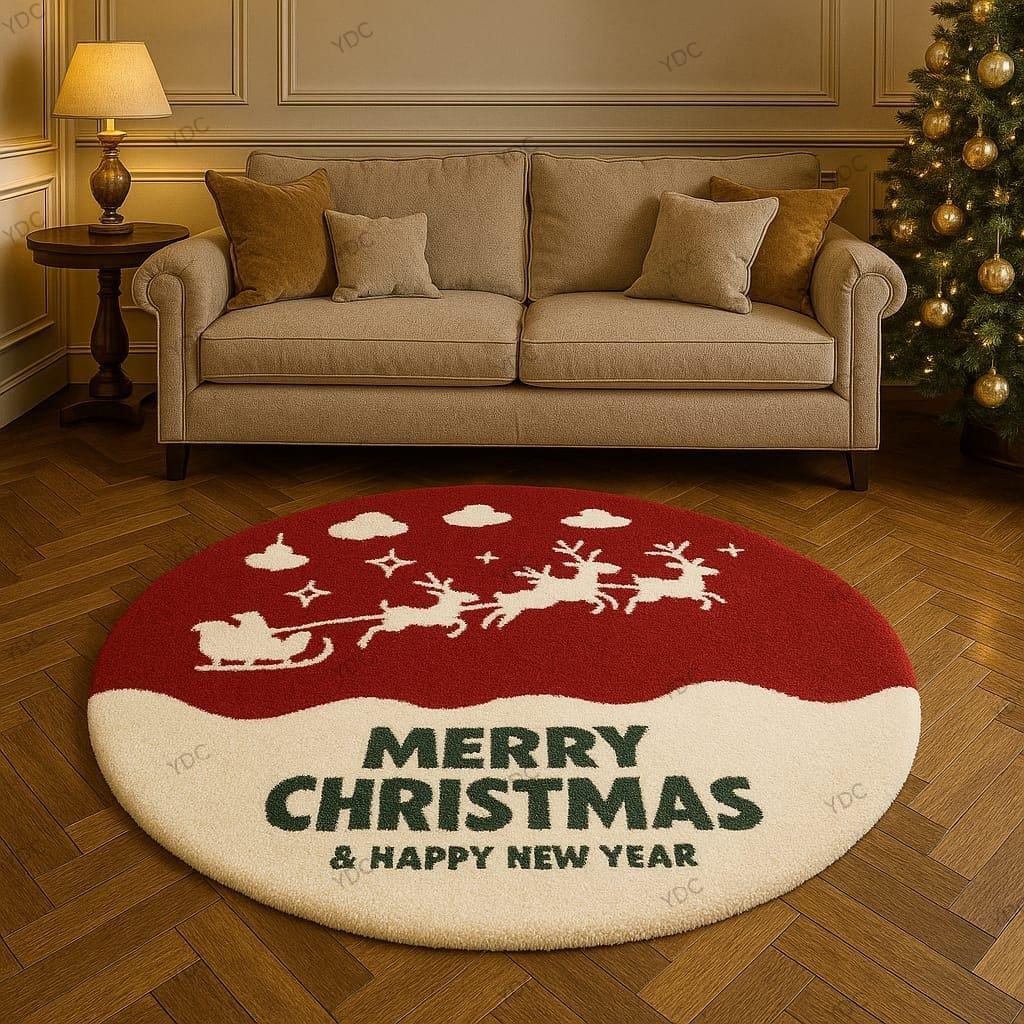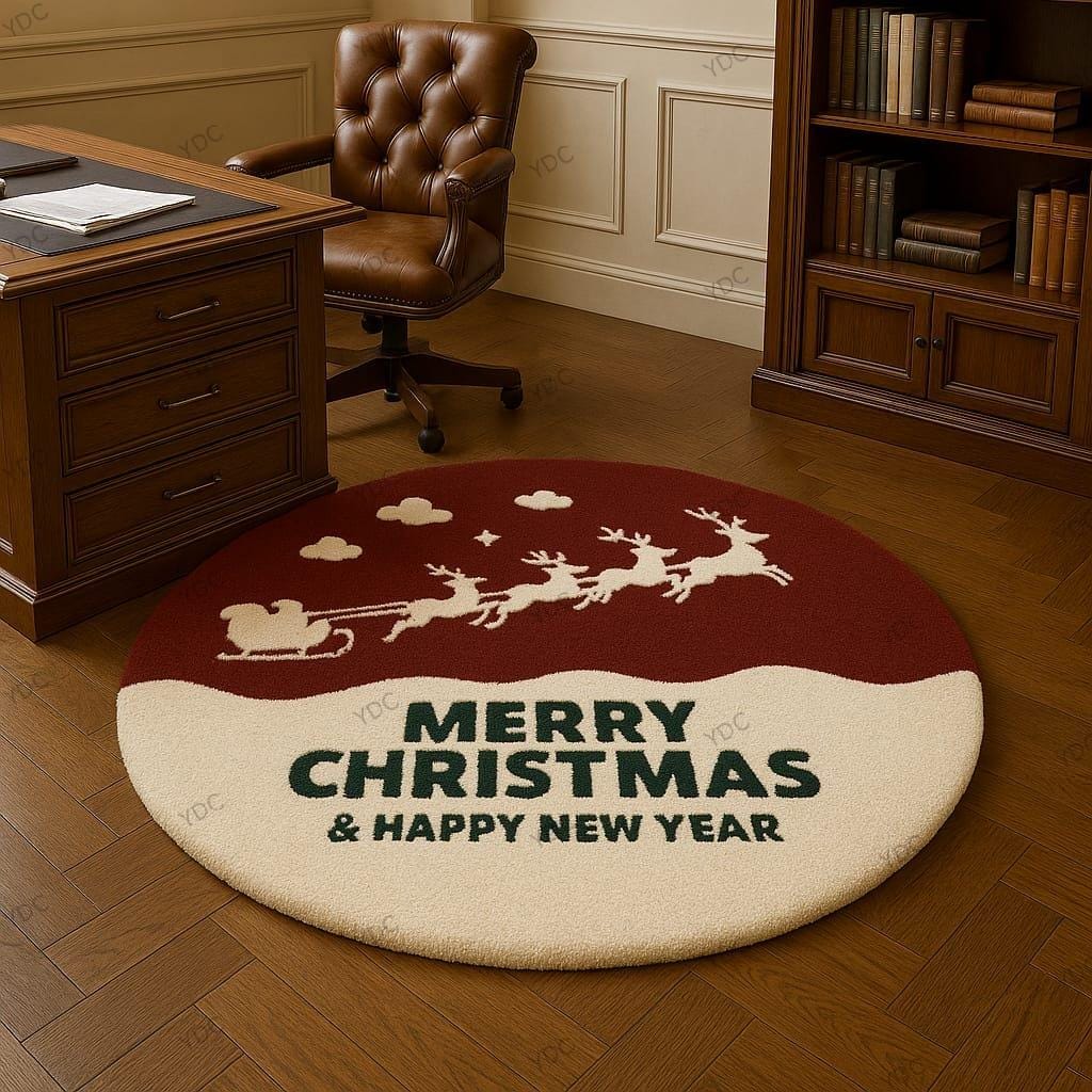 Christmas Round Rug | Merry Christmas Wool Carpet | Holiday Decor | Santa Reindeer