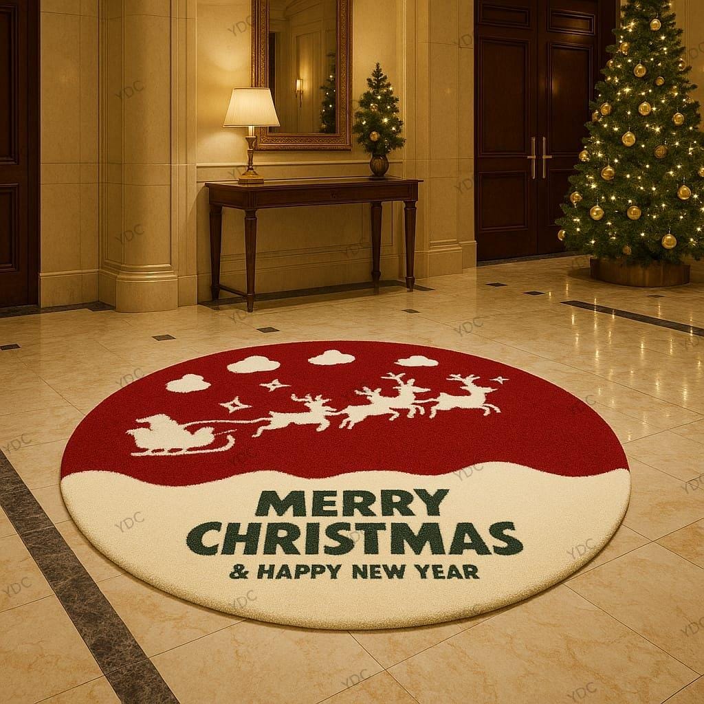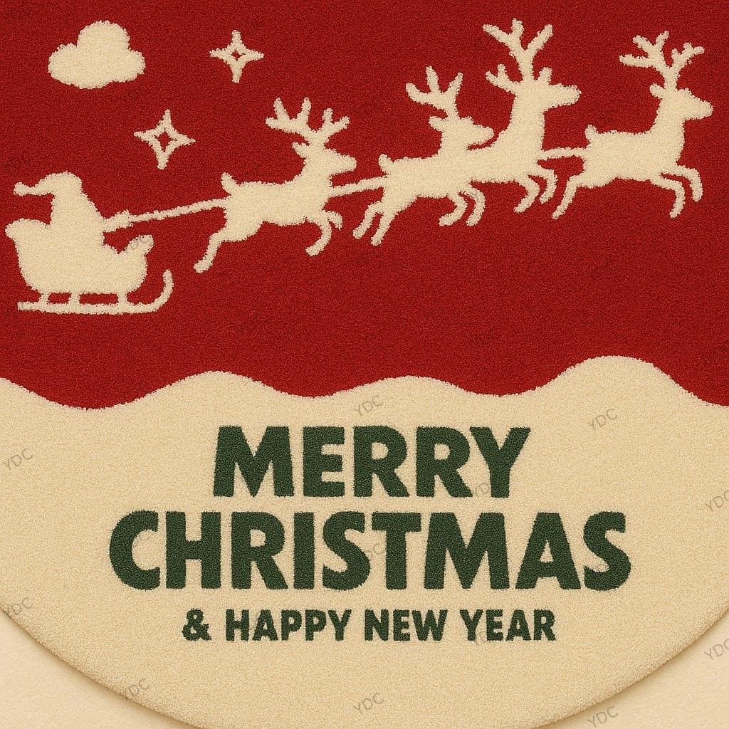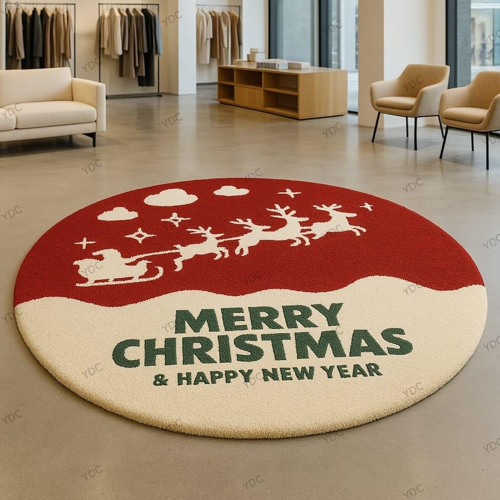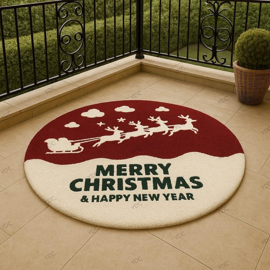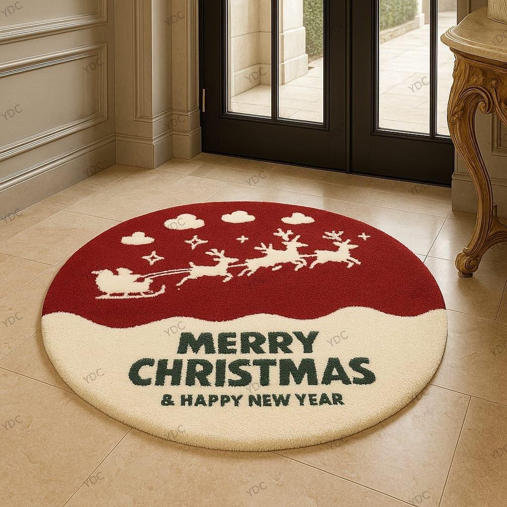 Christmas Round Rug | Merry Christmas Wool Carpet | Holiday Decor | Santa Reindeer