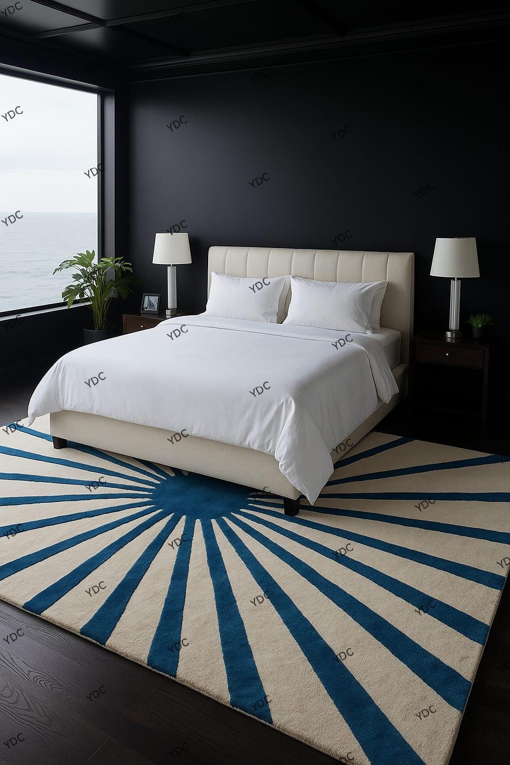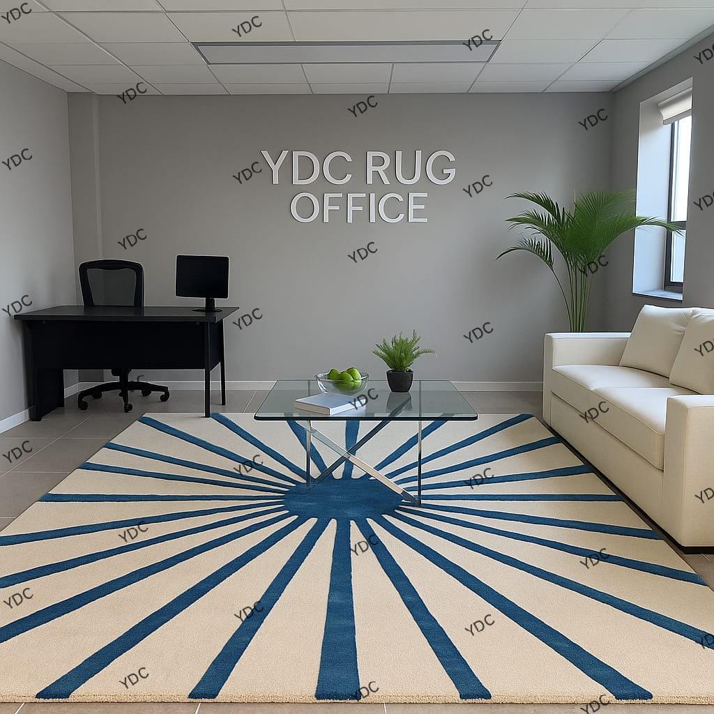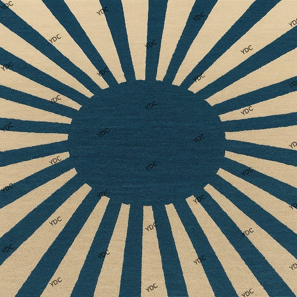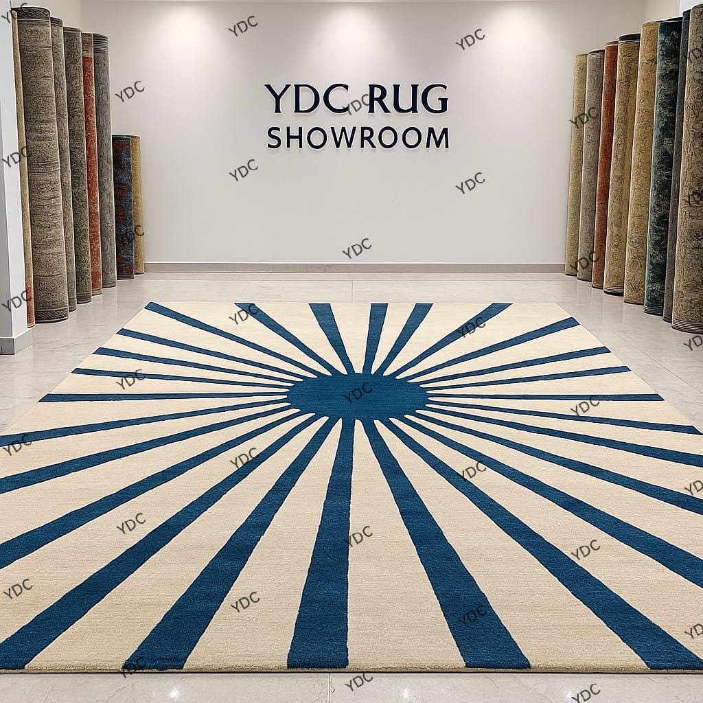 Hand-Tufted Wool Rug: Blue & Ivory Sunburst Design, New Zealand Wool