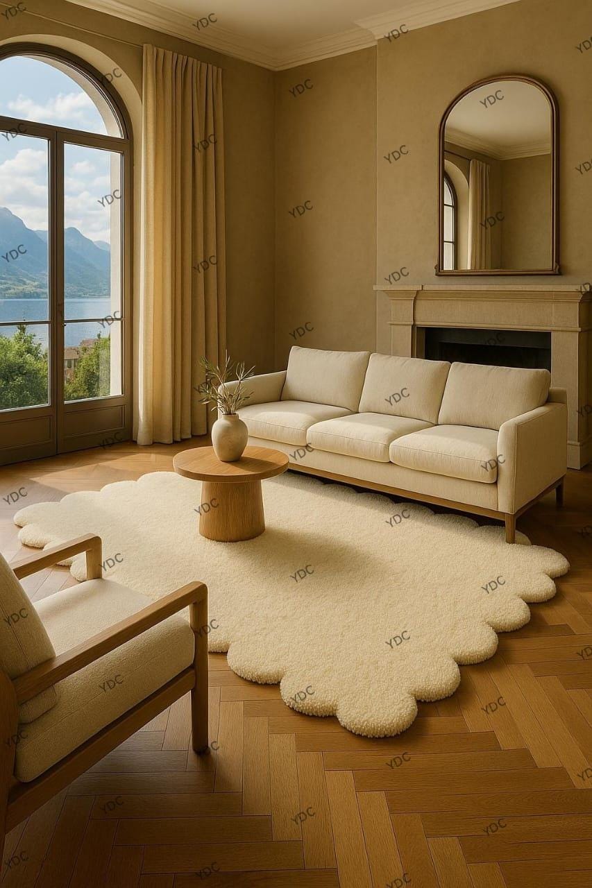 Bring softness and calm into your space with this beautifully crafted irregular cloud-shaped rug. Designed with a clean, minimalist aesthetic, this rug adds warmth and comfort while maintaining a modern, playful look.