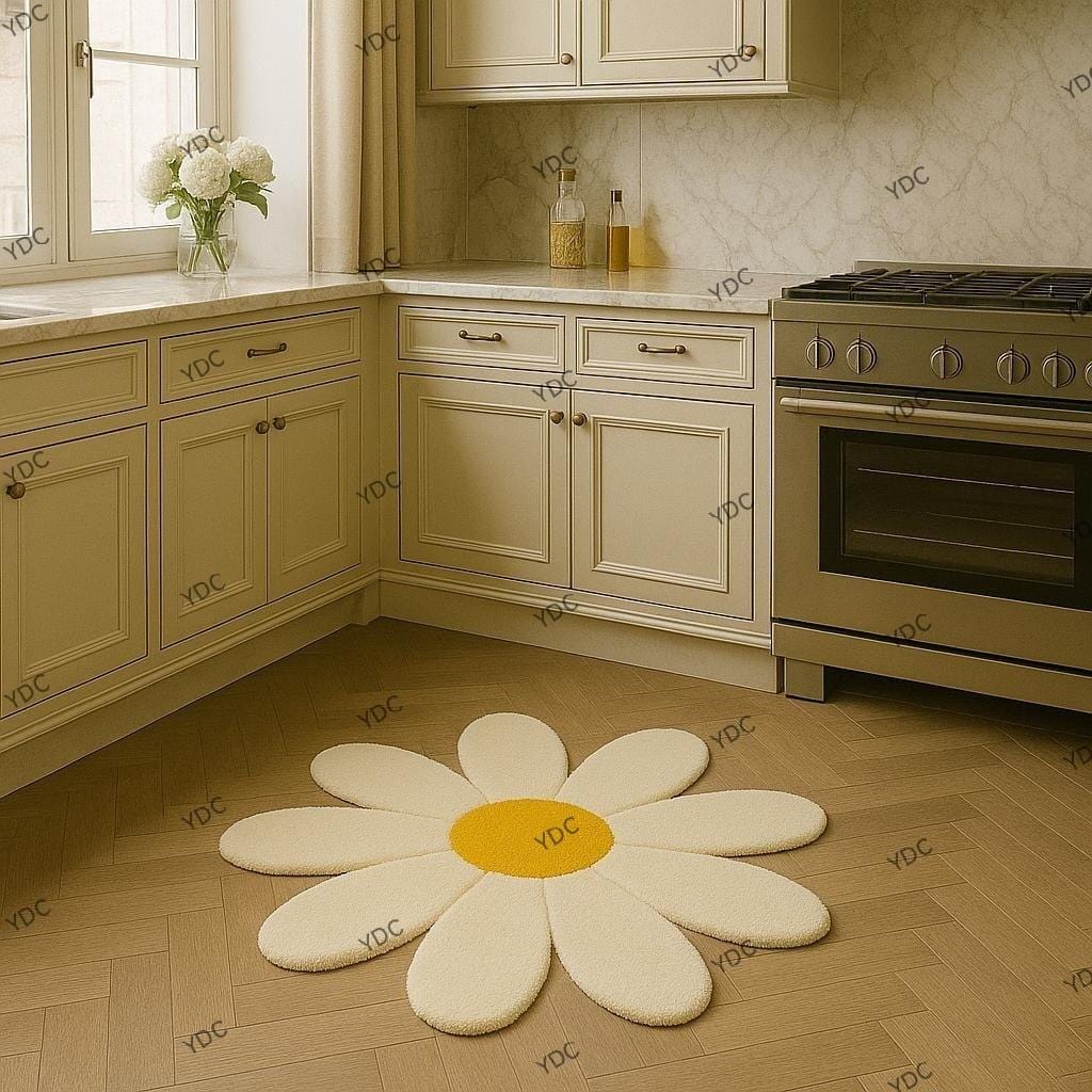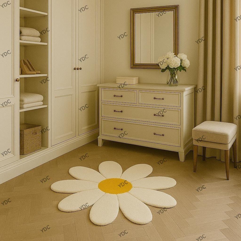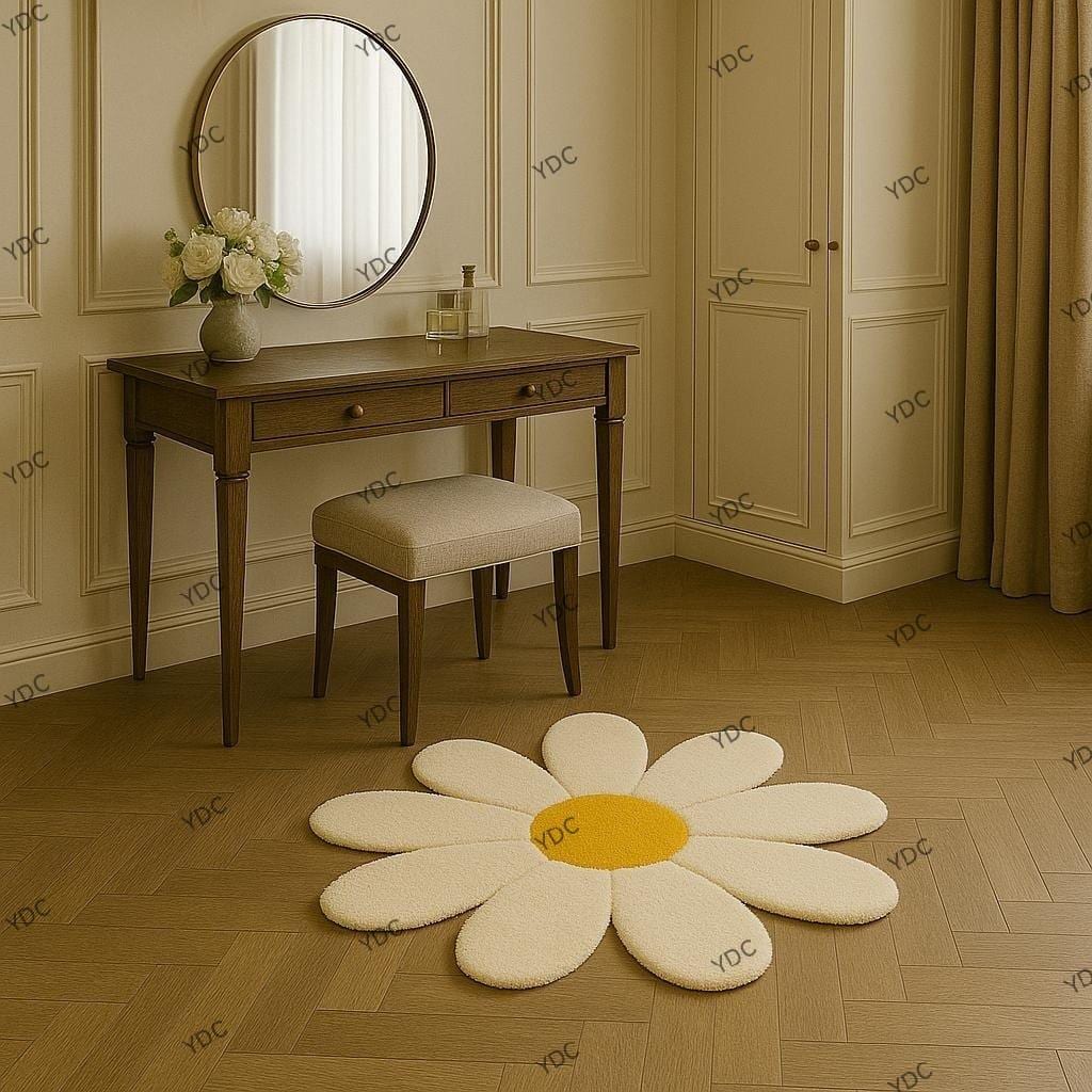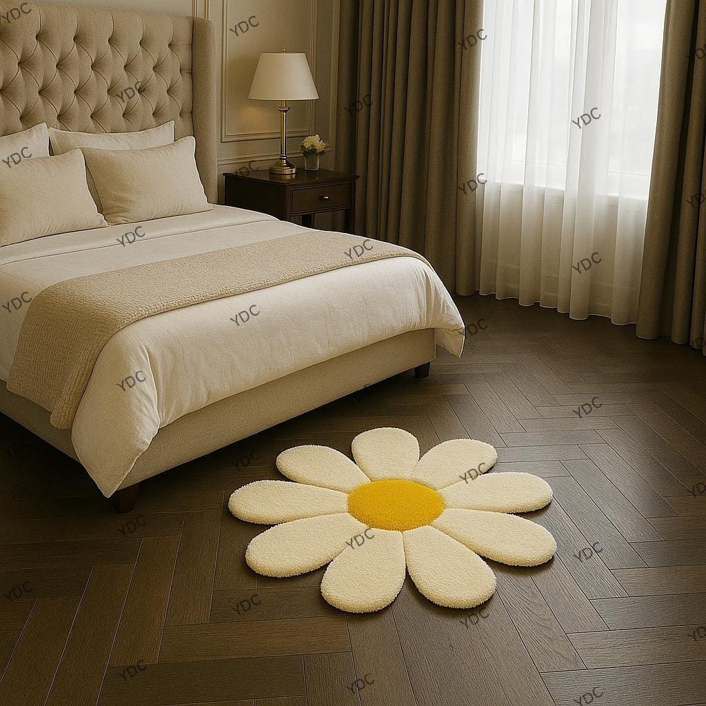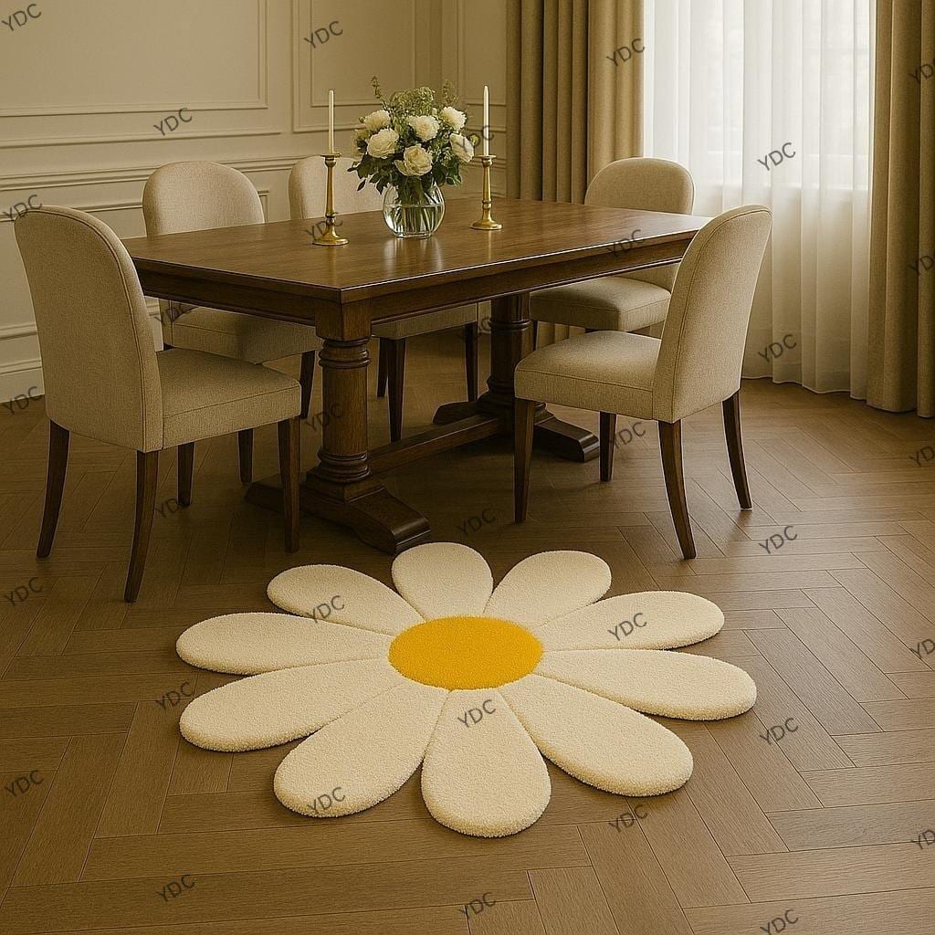 This charming flower-shaped irregular rug features soft rounded petals and a cheerful center, creating a playful yet elegant statement for modern interiors. Its organic silhouette makes it perfect for kids’ rooms, nurseries, cozy living spaces, reading corners, and creative interiors.