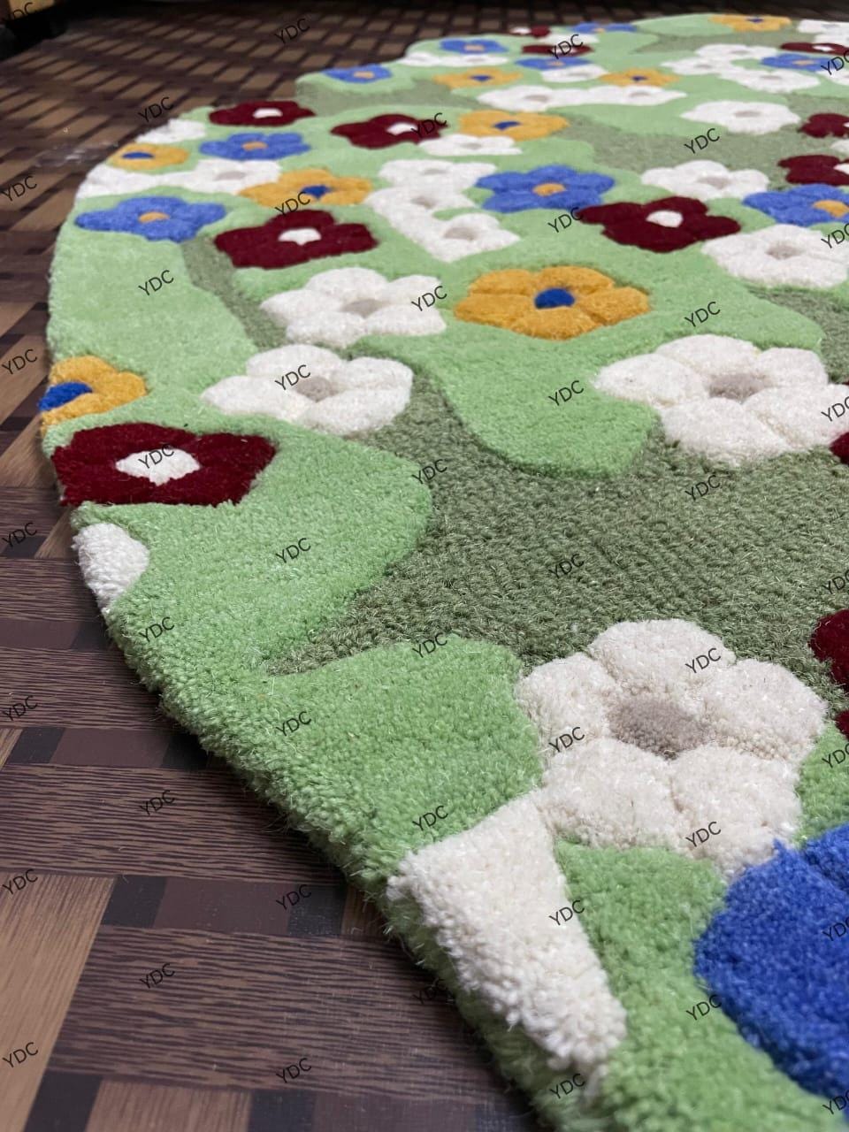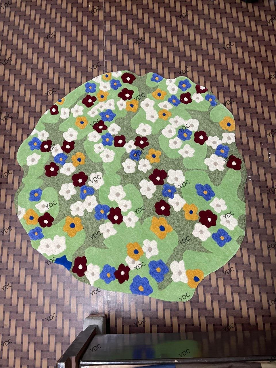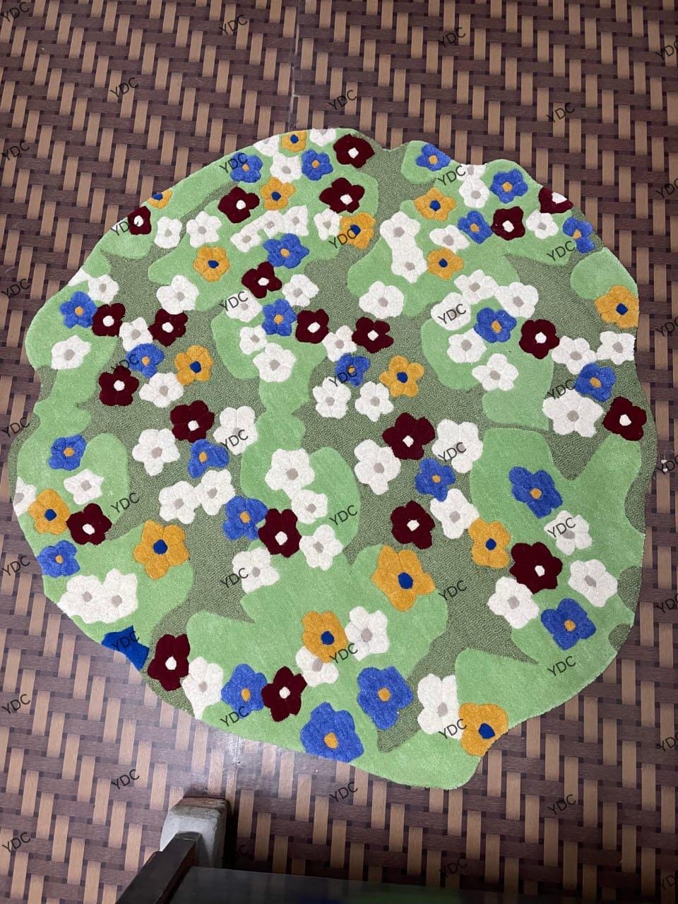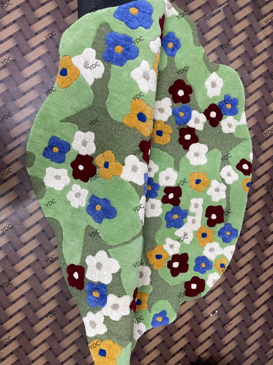 Crafted using premium New Zealand wool, this rug offers a plush feel underfoot while maintaining excellent durability. Its artistic floral design makes it a perfect statement piece for living rooms, bedrooms, kids’ rooms, reading corners, and creative interiors. The irregular silhouette adds a modern, designer touch that stands out from traditional rugs.