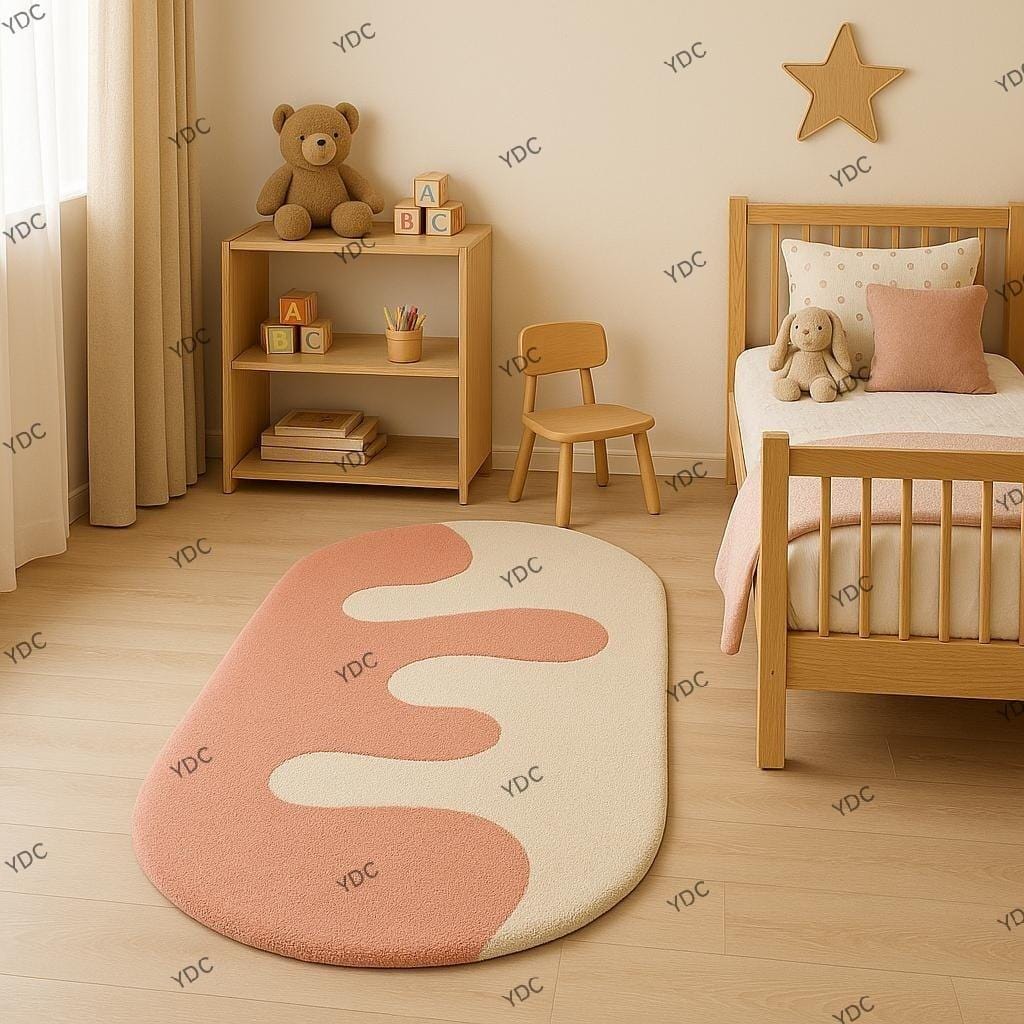 Kids Pink Wave Rug | Hand Tufted Wool Carpet | Modern Nursery Floor Decor
