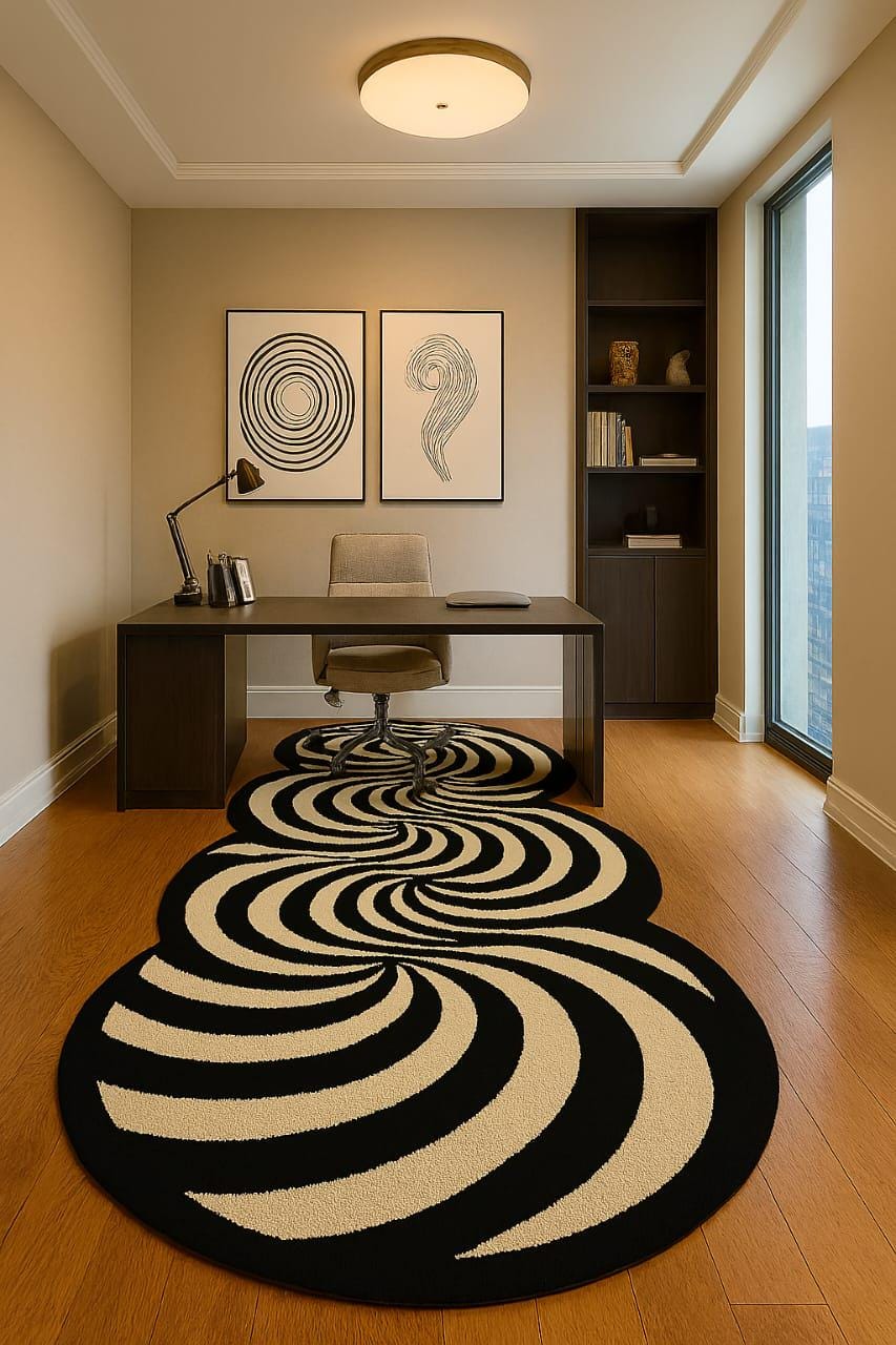 Home Office Design Inspiration – A sophisticated, hand-made rug can provide a creative and refined feel to your work area.