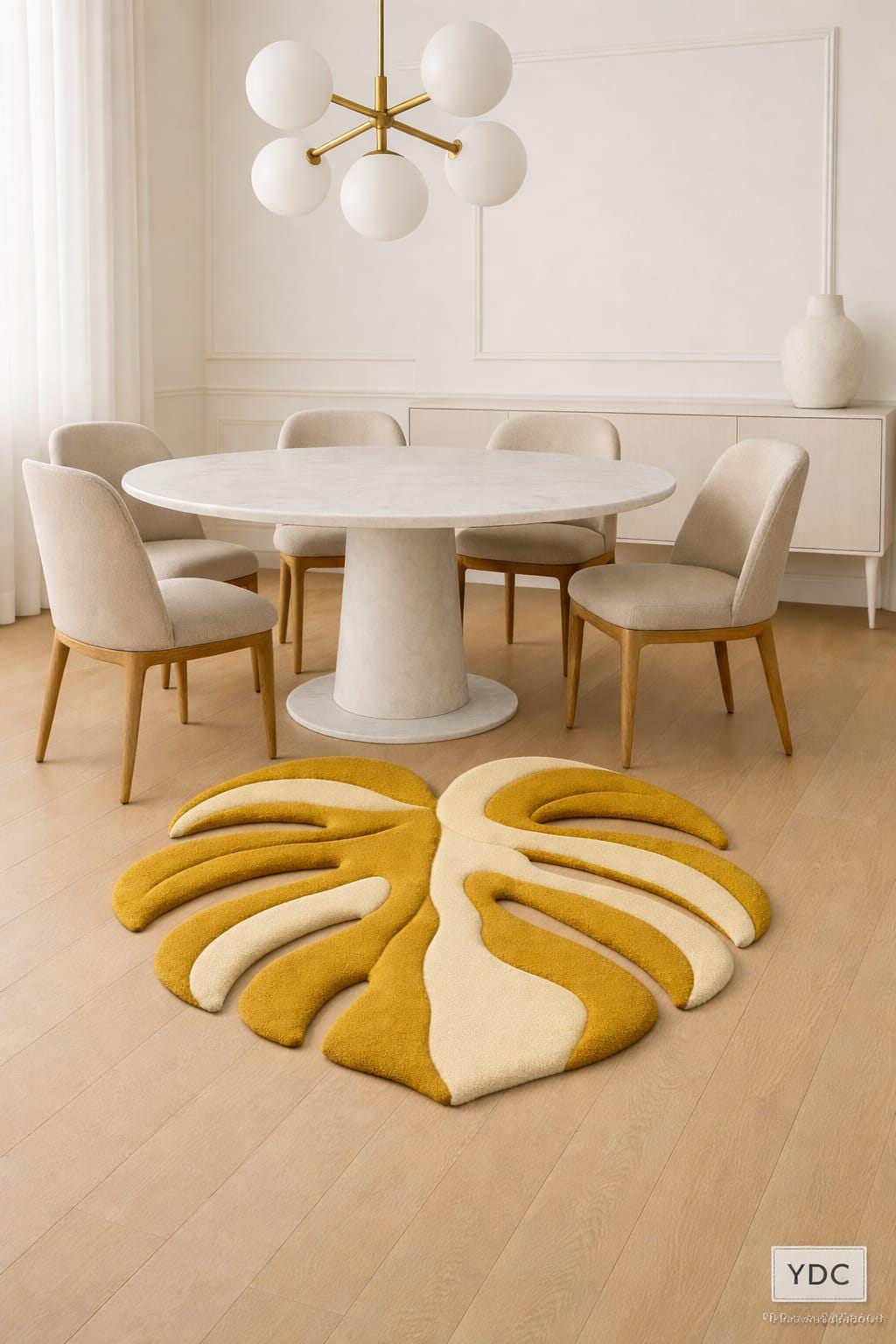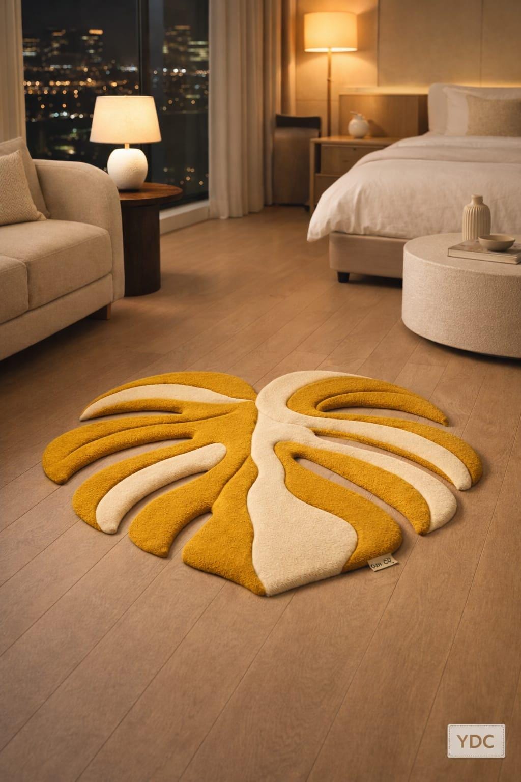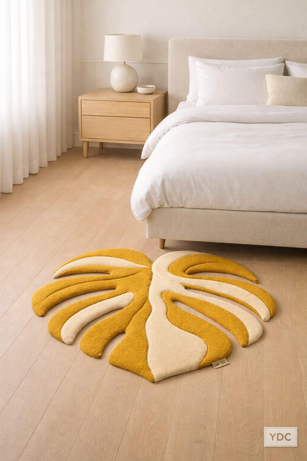 The combination of warm yellow and ivory tones adds a cheerful yet elegant feel, making this rug perfect for bedrooms, living rooms, reading corners, nurseries, studios, and contemporary apartments around the world.