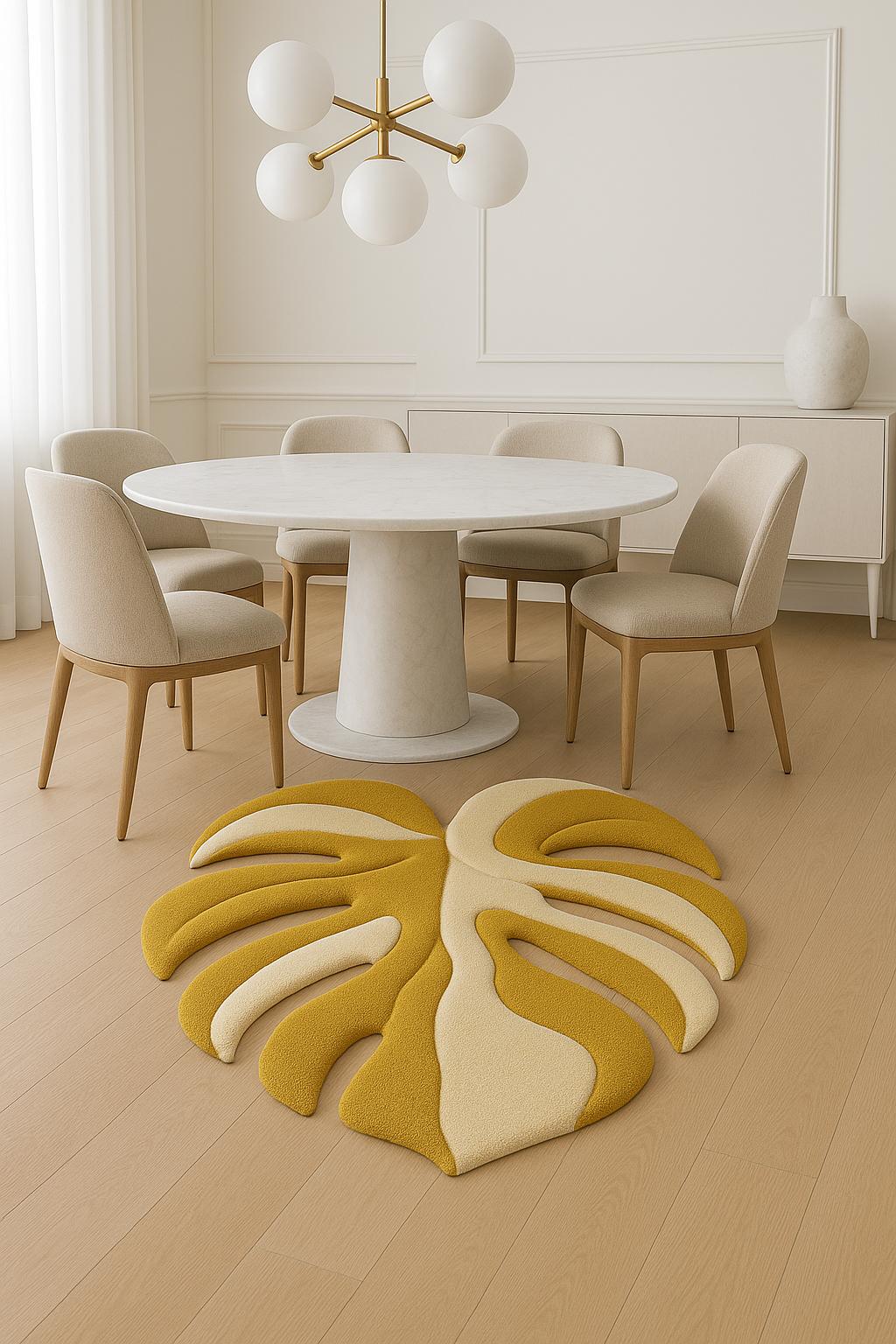 Bring a fresh, artistic touch to your interior with this hand tufted leaf-shaped area rug, designed to add warmth, softness, and organic beauty to modern spaces. Inspired by natural forms, the flowing curves create a sculptural look that works beautifully as an accent rug.