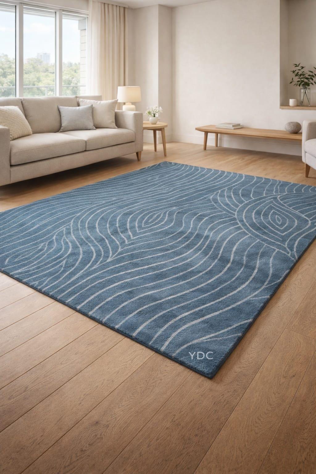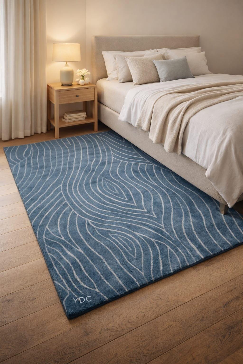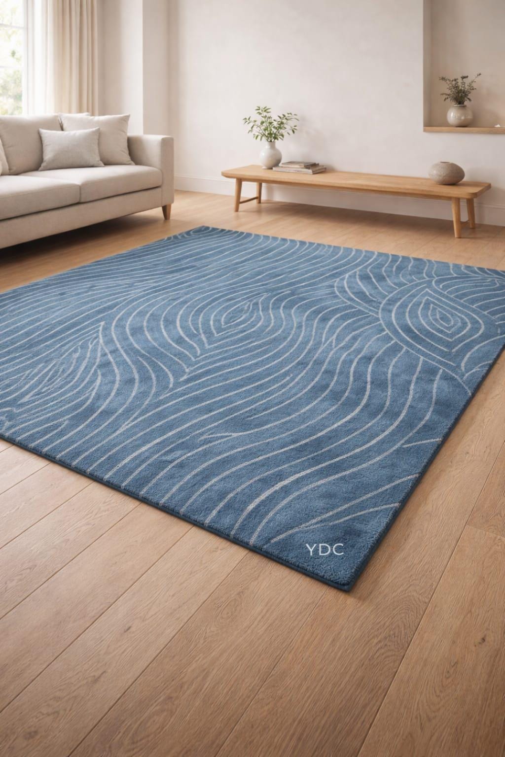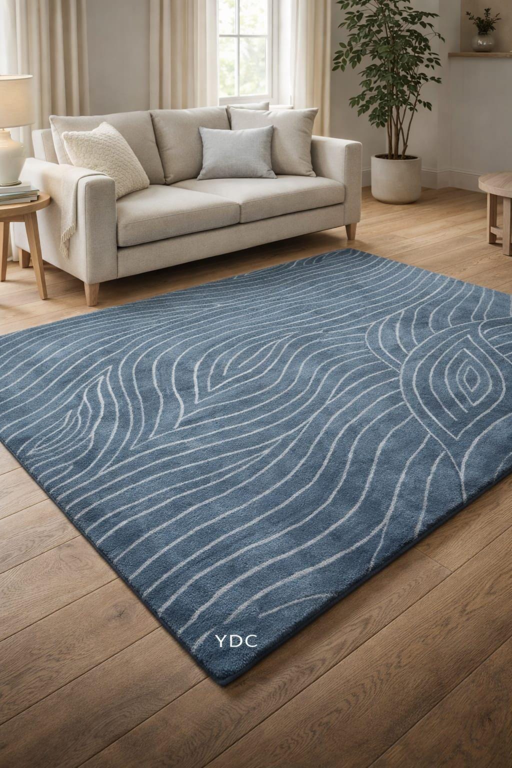 Bring calm sophistication to your space with this hand tufted modern blue area rug, featuring a flowing abstract wave pattern that adds depth and movement to contemporary interiors. The rich blue base with soft contrasting lines creates a balanced, elegant look—perfect for living rooms, bedrooms, dining areas, and modern open spaces.
