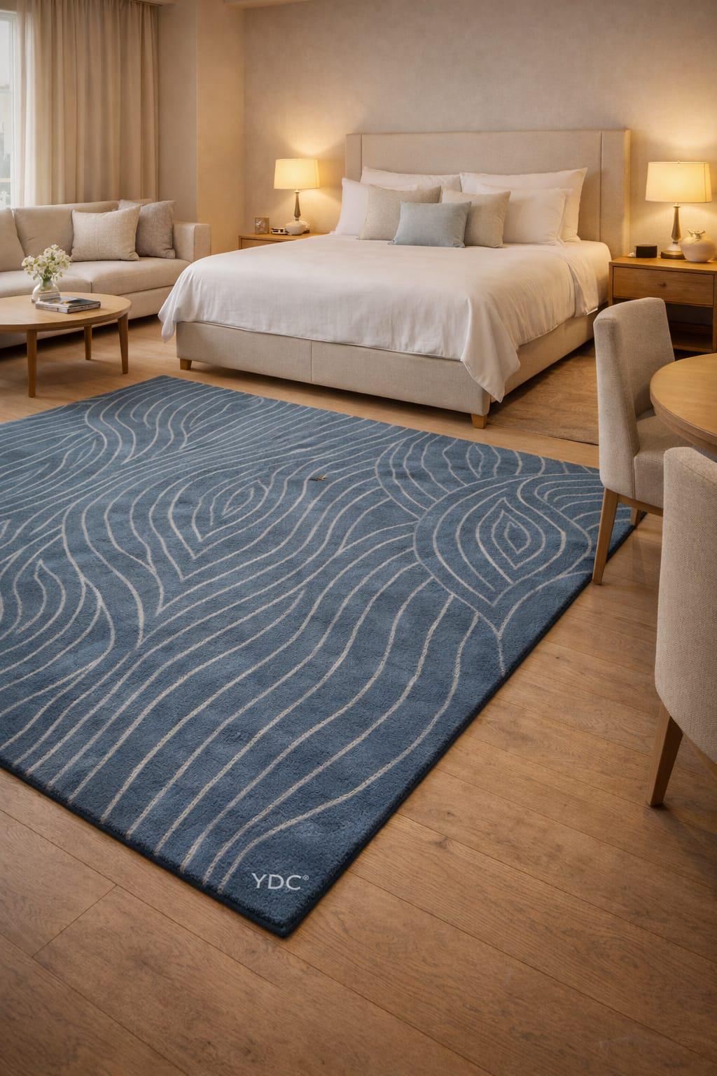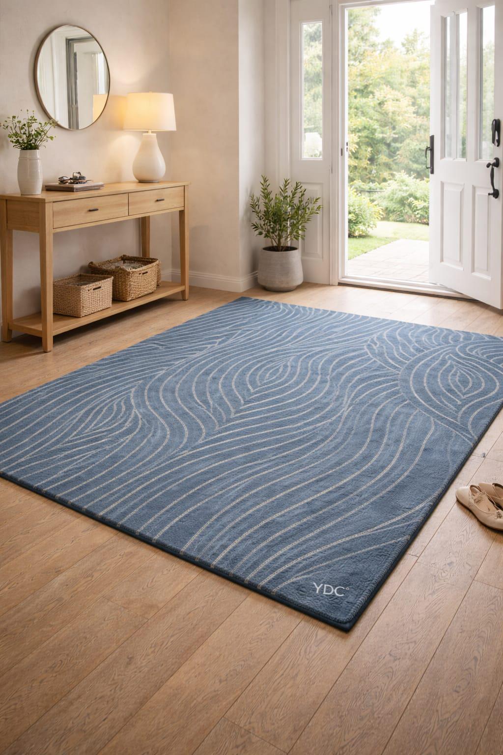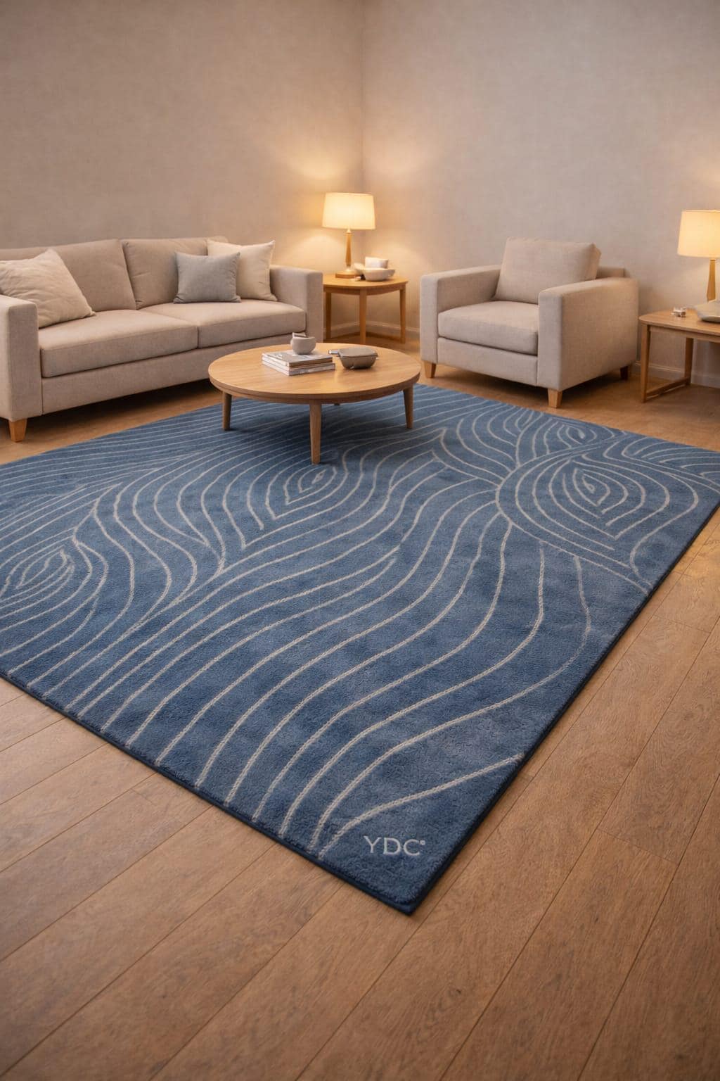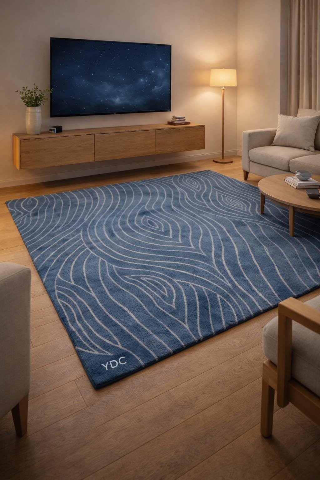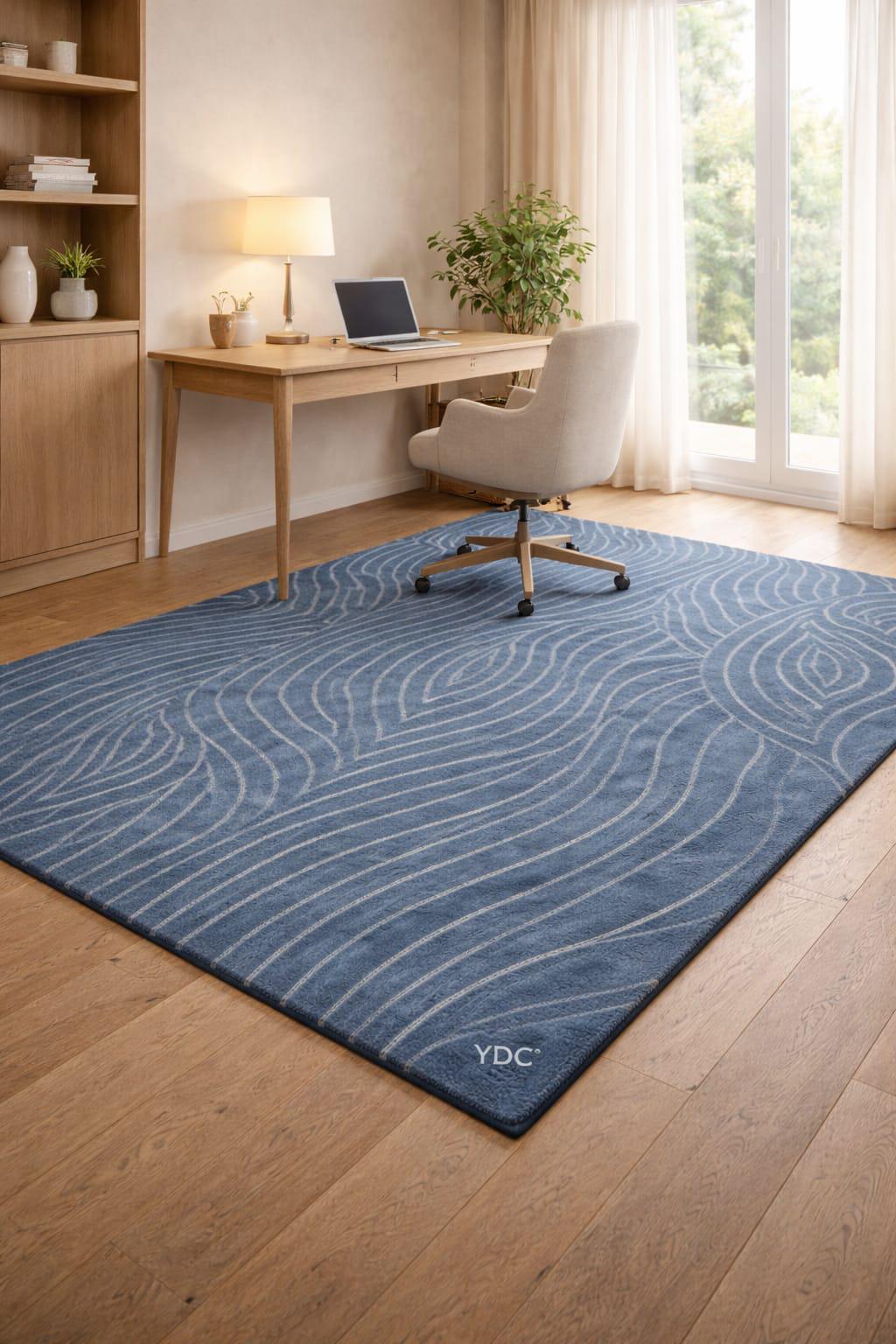 Bring calm sophistication to your space with this hand tufted modern blue area rug, featuring a flowing abstract wave pattern that adds depth and movement to contemporary interiors. The rich blue base with soft contrasting lines creates a balanced, elegant look—perfect for living rooms, bedrooms, dining areas, and modern open spaces.
