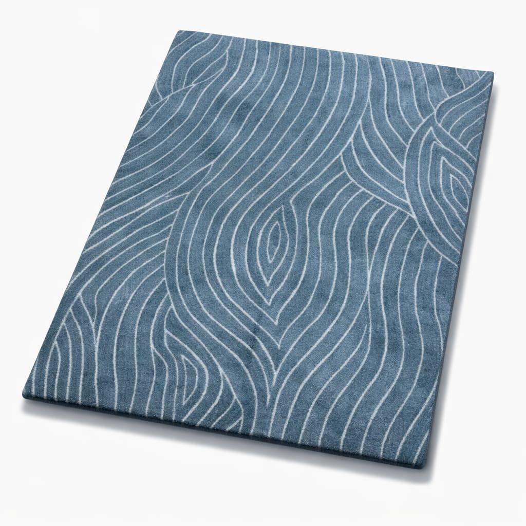 Hand Tufted Modern Blue Area Rug – Abstract Wave Living Room & Bedroom Décor