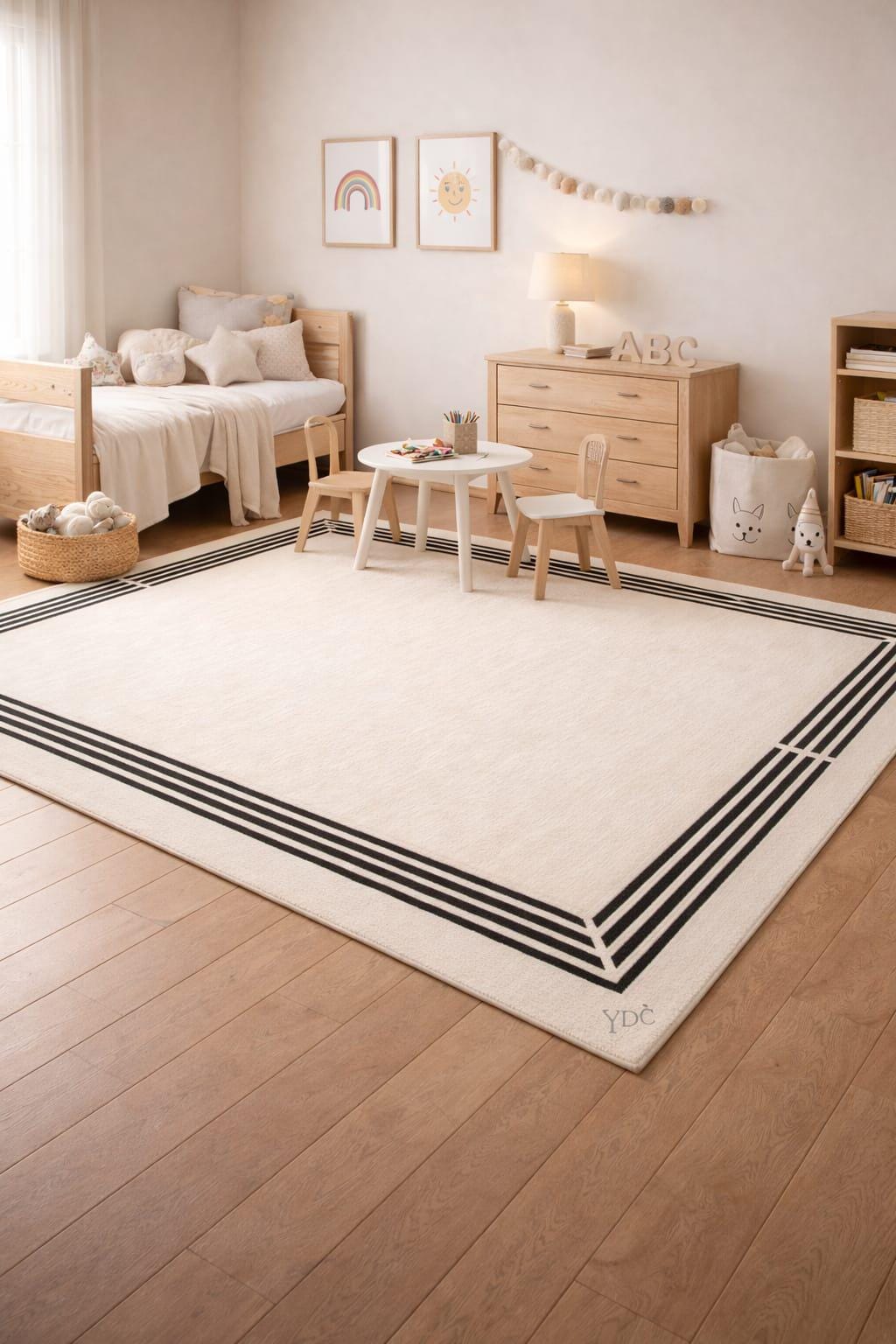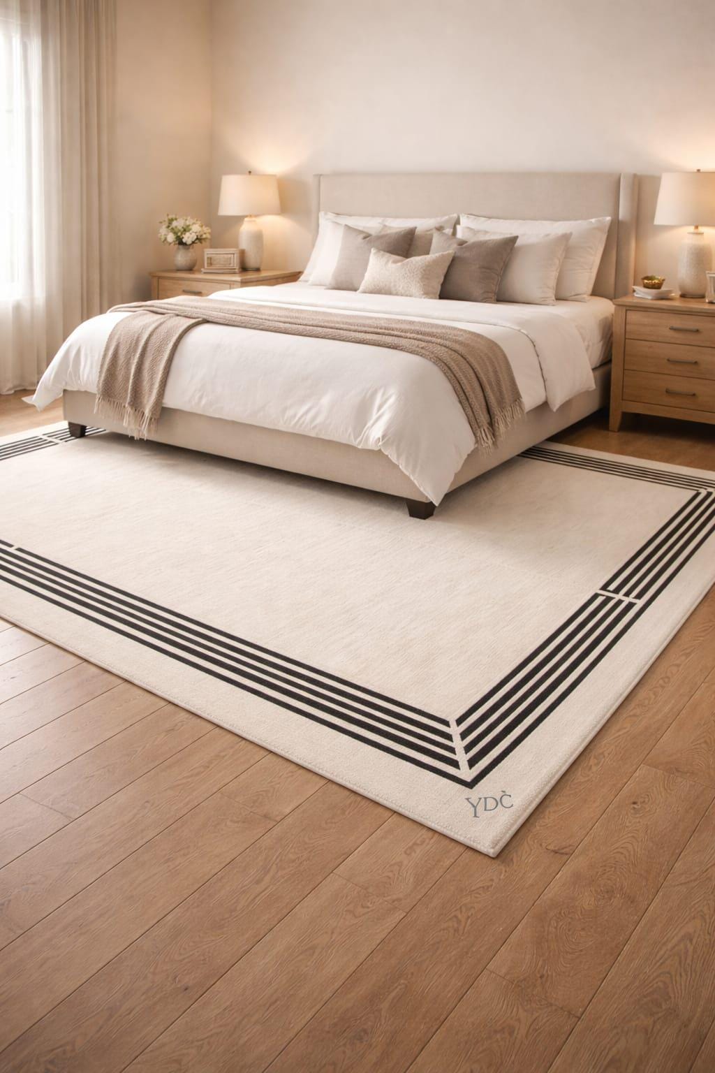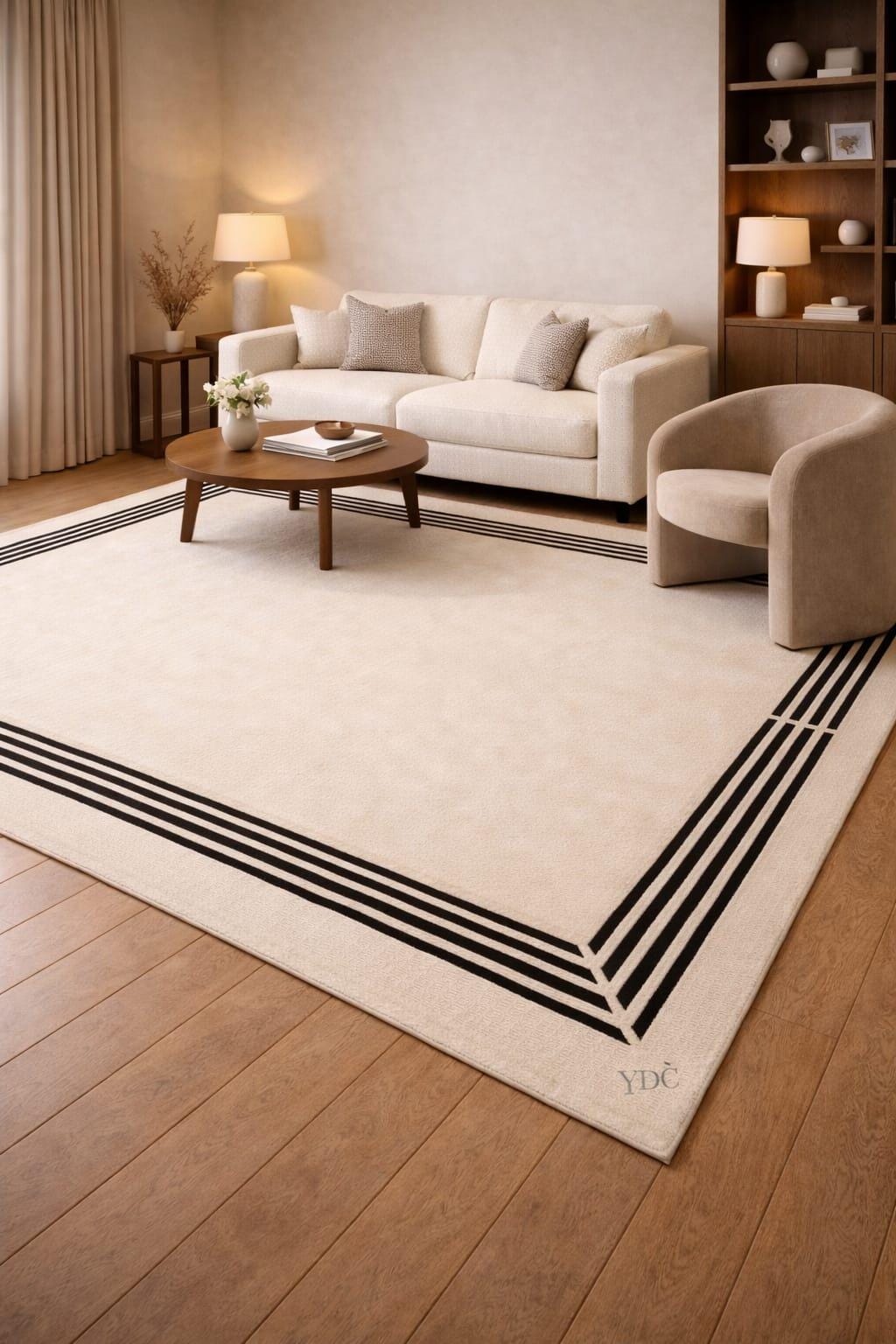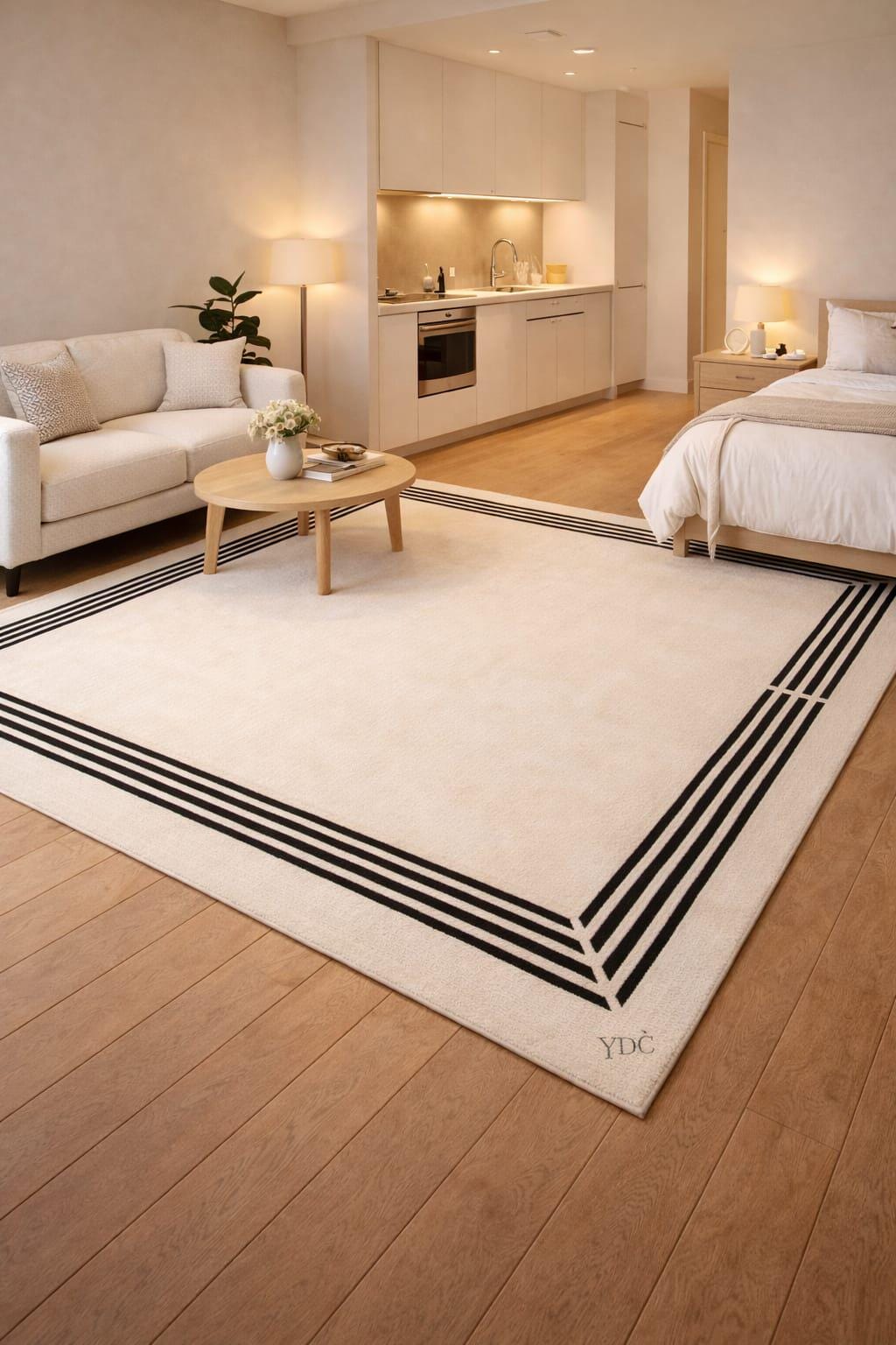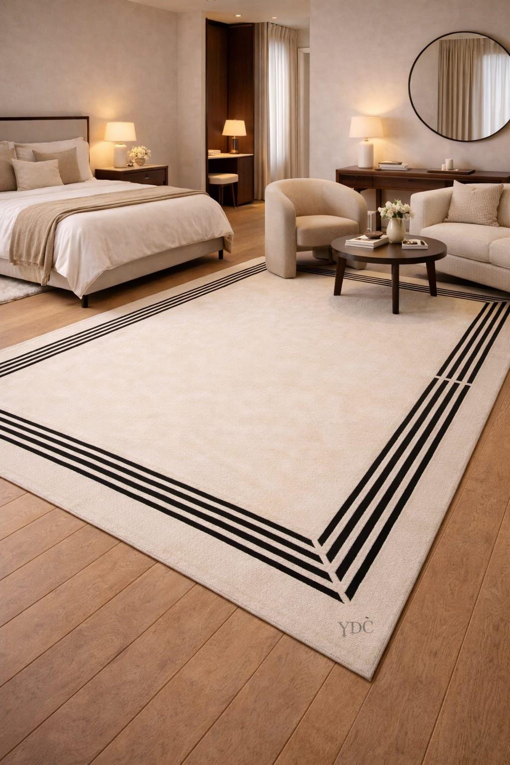 Elevate your space with this hand tufted modern border area rug, featuring a clean ivory ground framed with sharp black linear borders. Its balanced, minimalist design creates a refined look that works beautifully in entryways, living rooms, bedrooms, and modern interiors where simplicity and elegance matter.