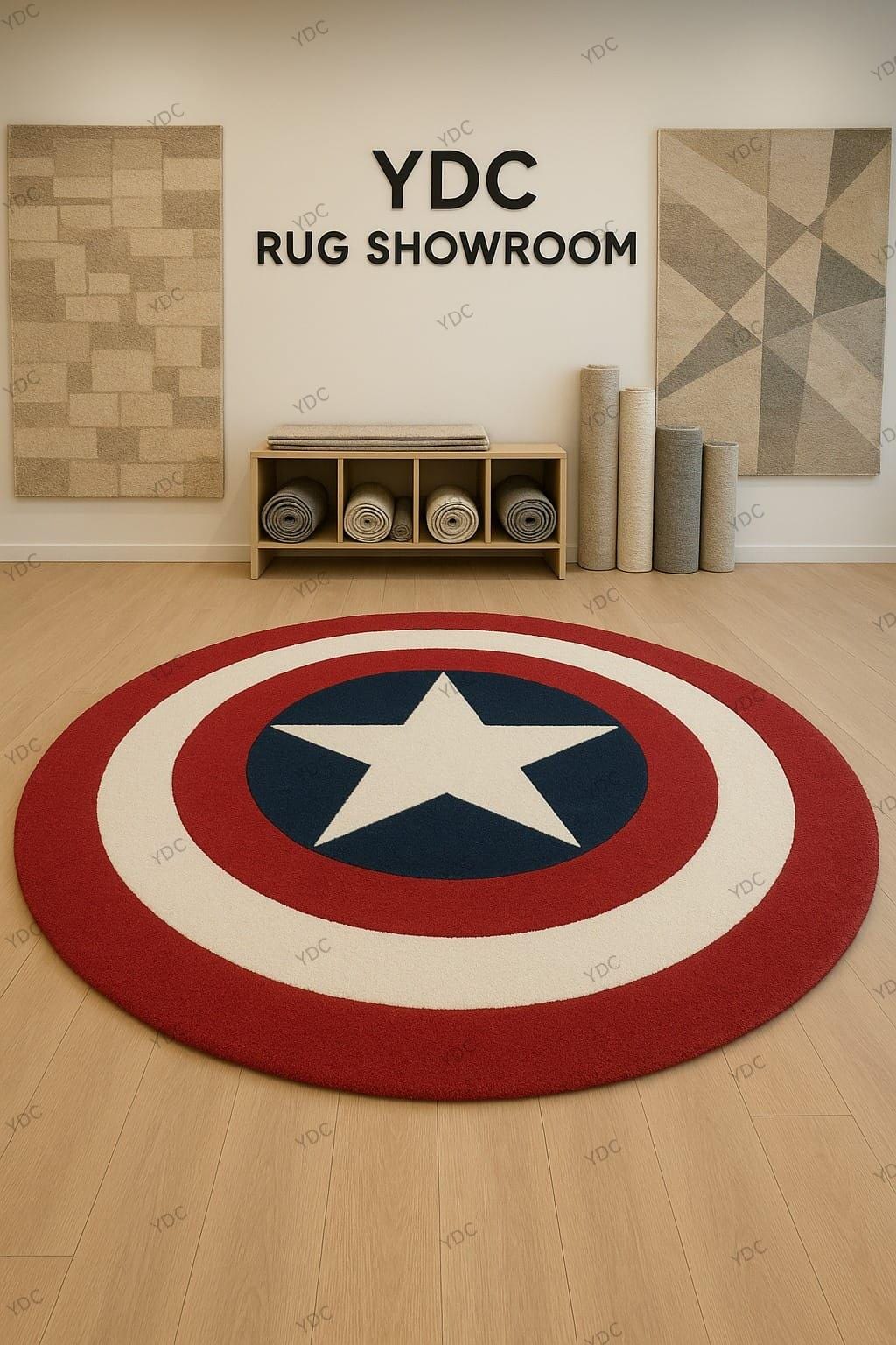 Hand Tufted Superhero Star Shield Round Rug – New Zealand Wool