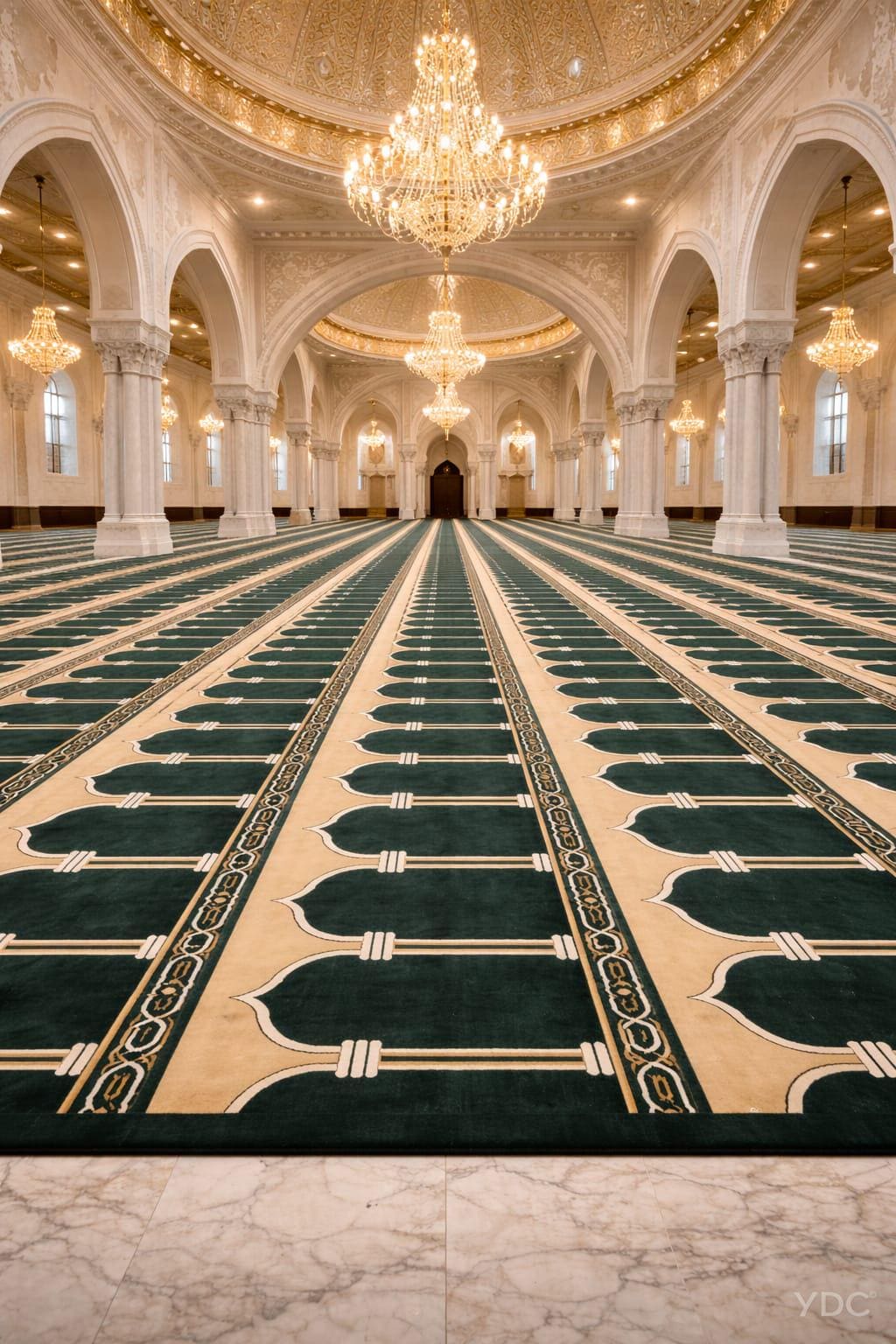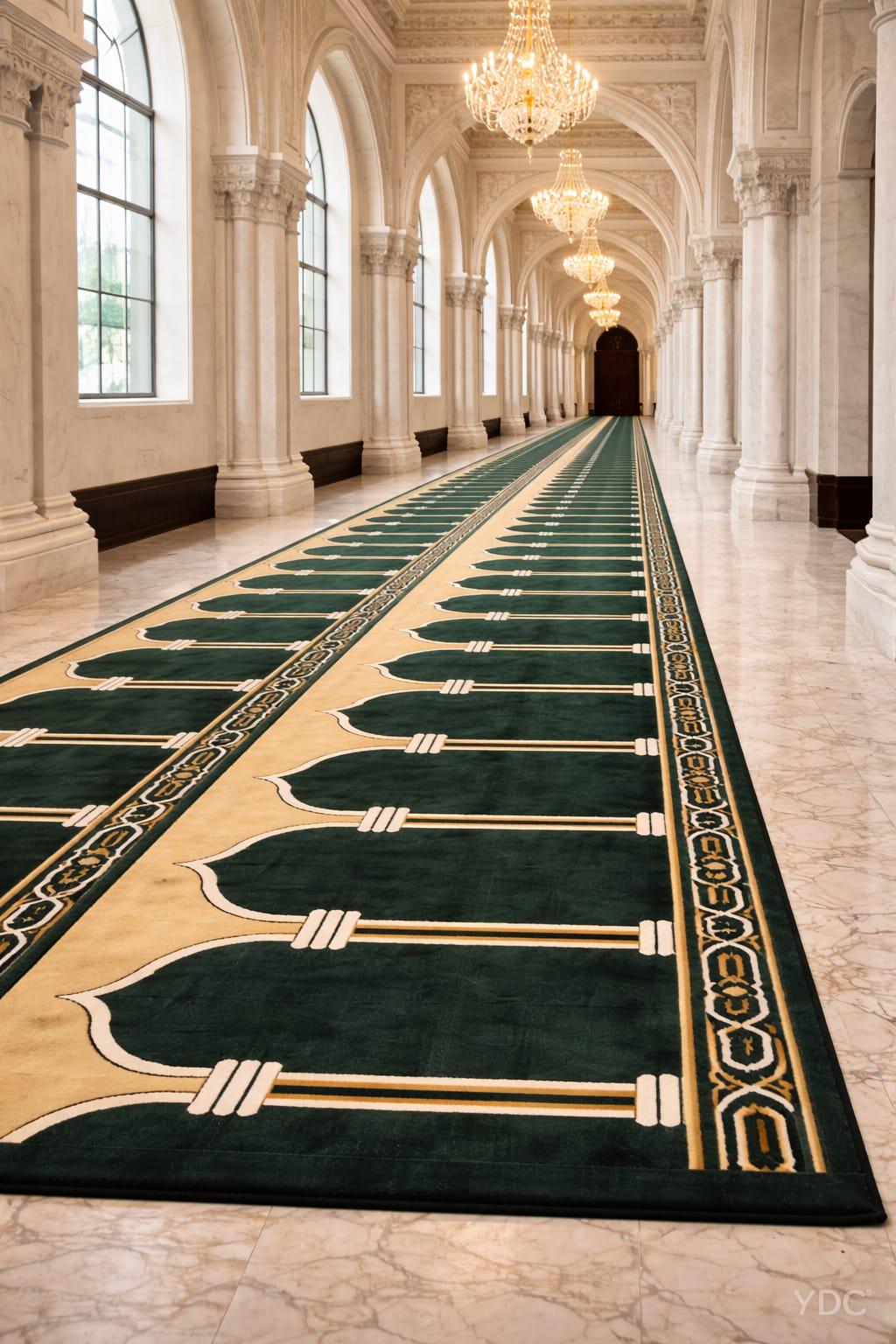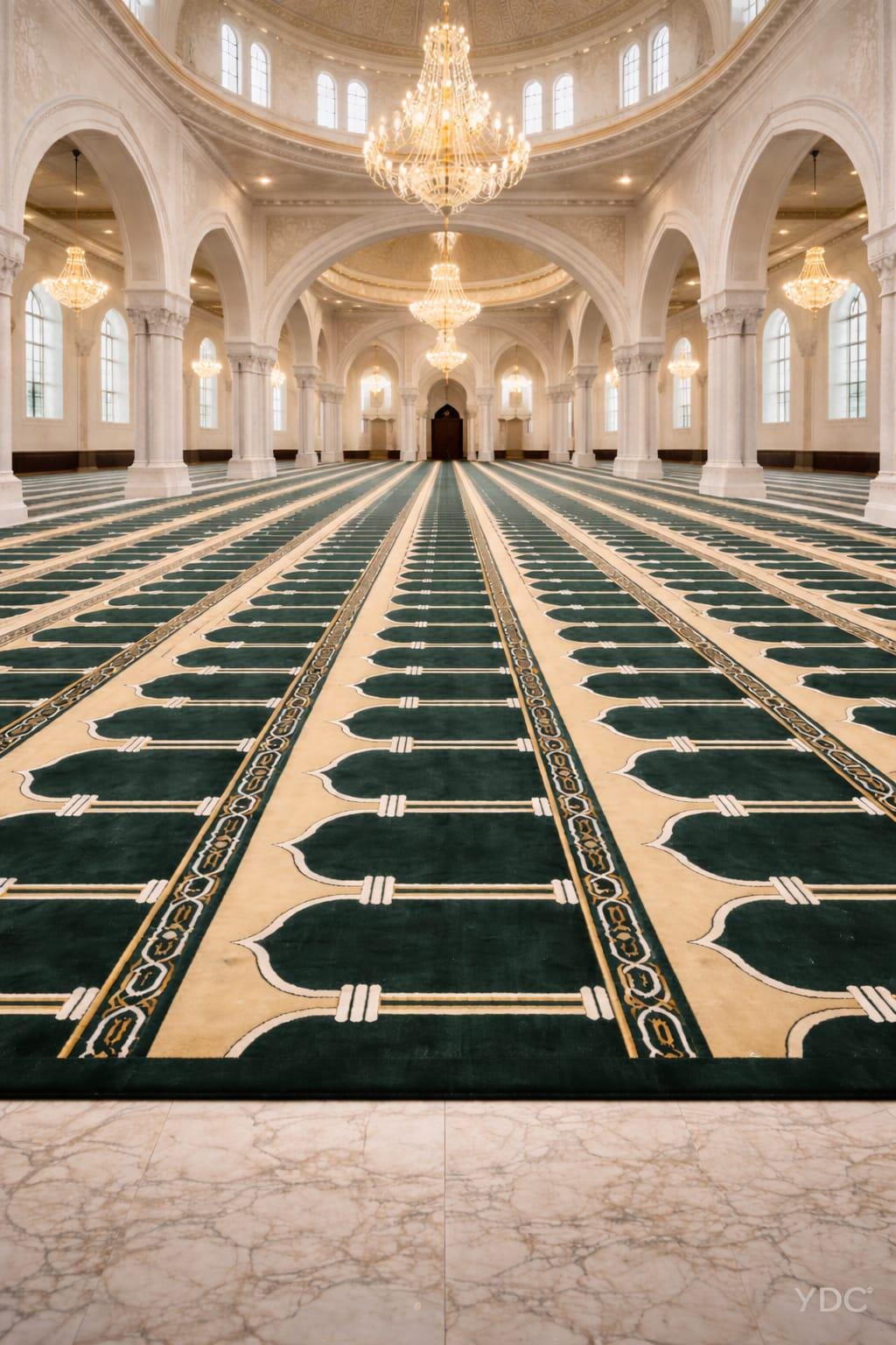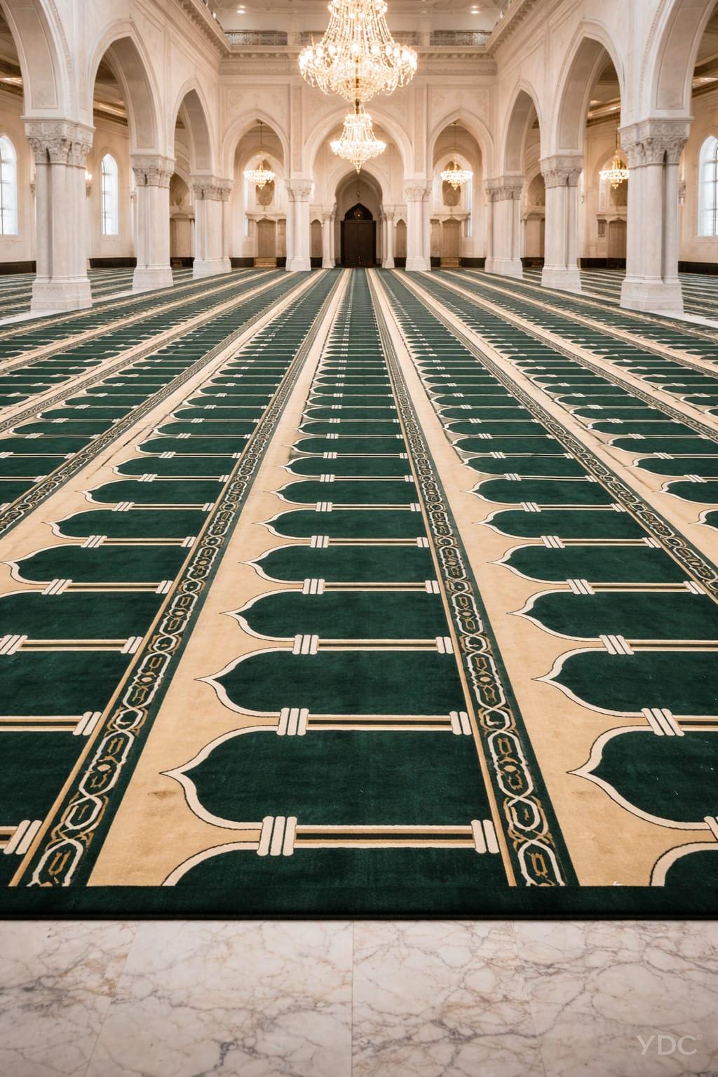 This design is specially created for organized prayer rows, making it ideal for mosques, prayer halls, Islamic centers, and home prayer areas. The symmetrical layout helps define individual prayer spaces while maintaining a visually harmonious environment.