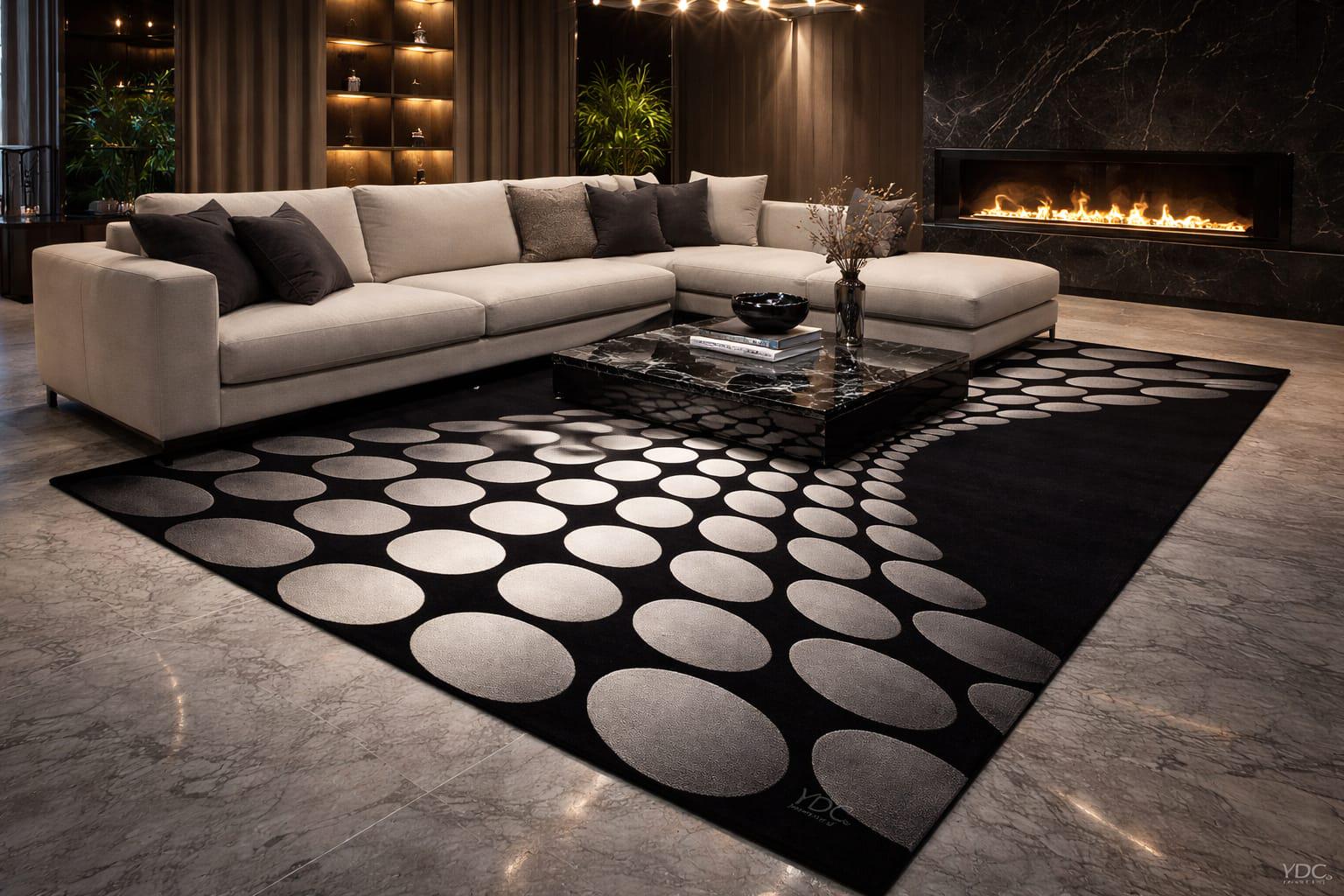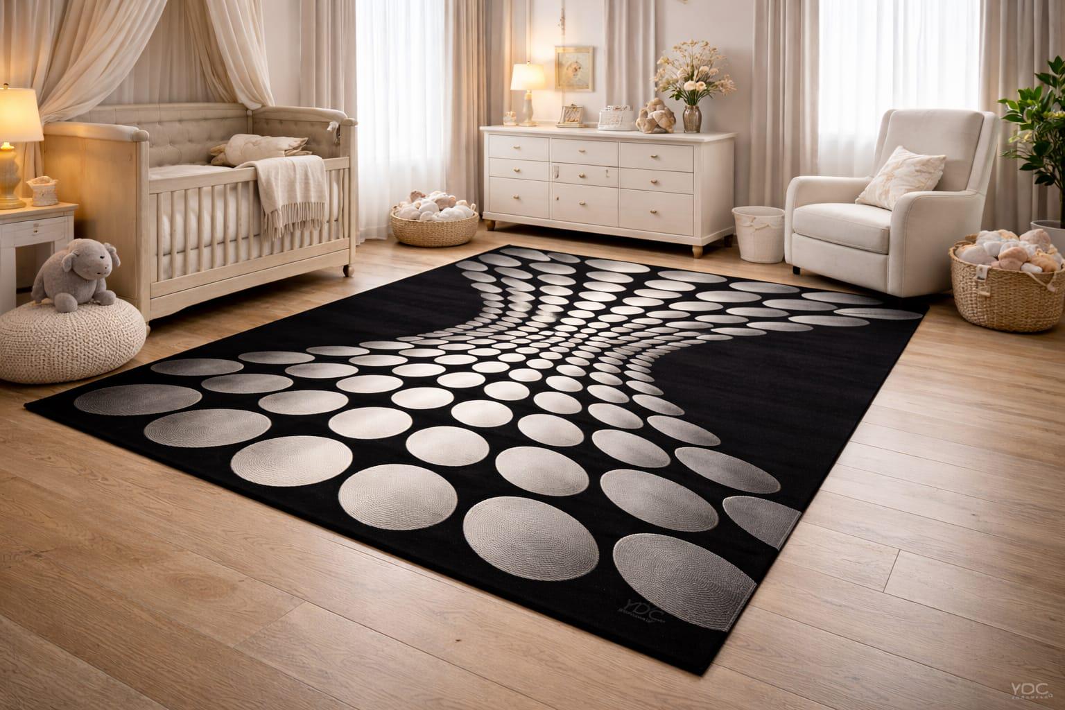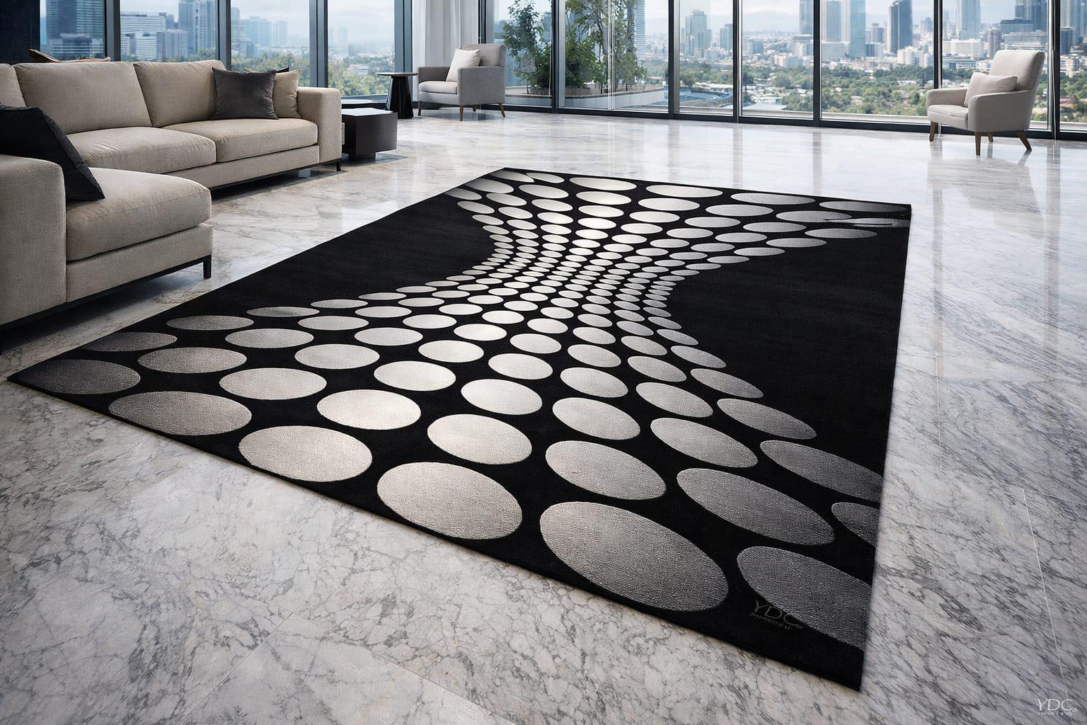 A stylish and eye-catching rug that enhances the look of any space.