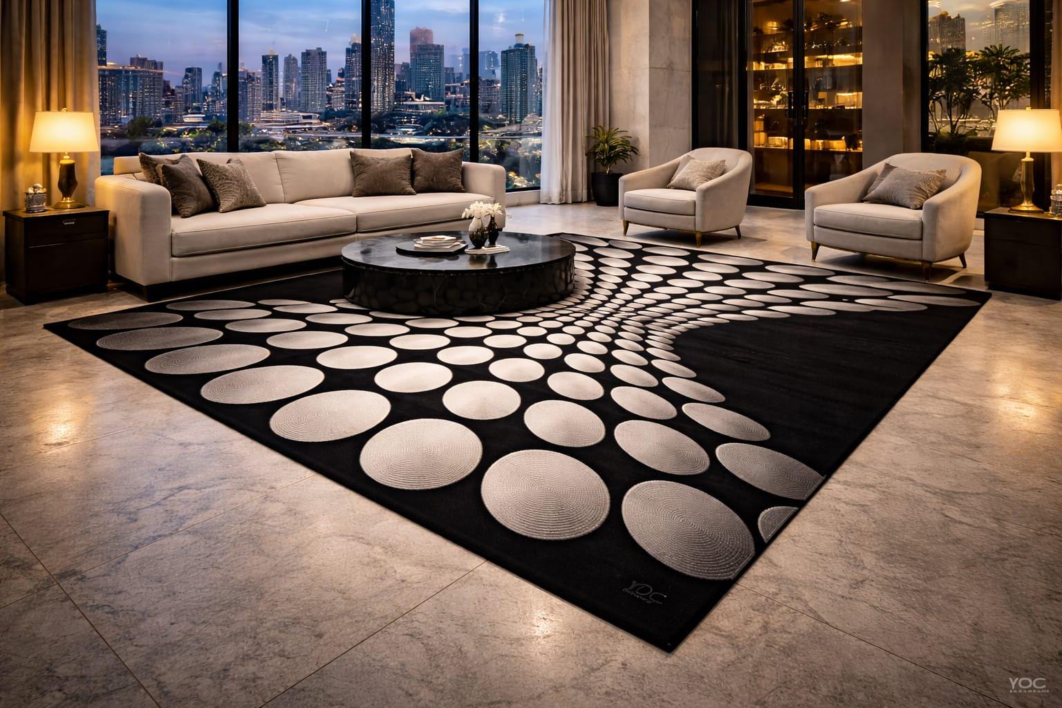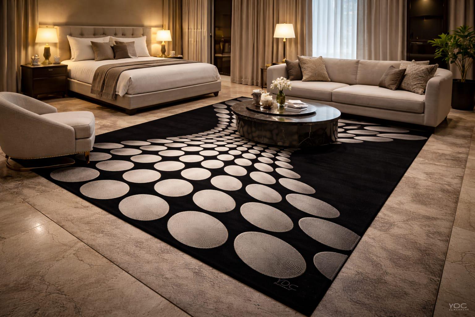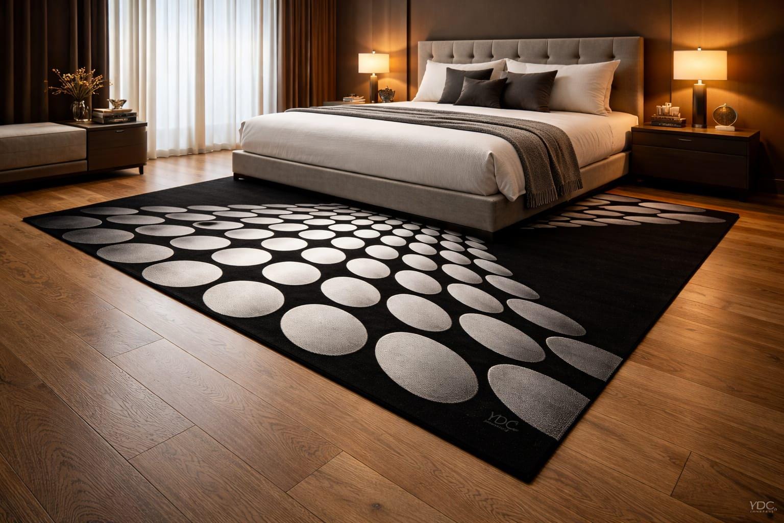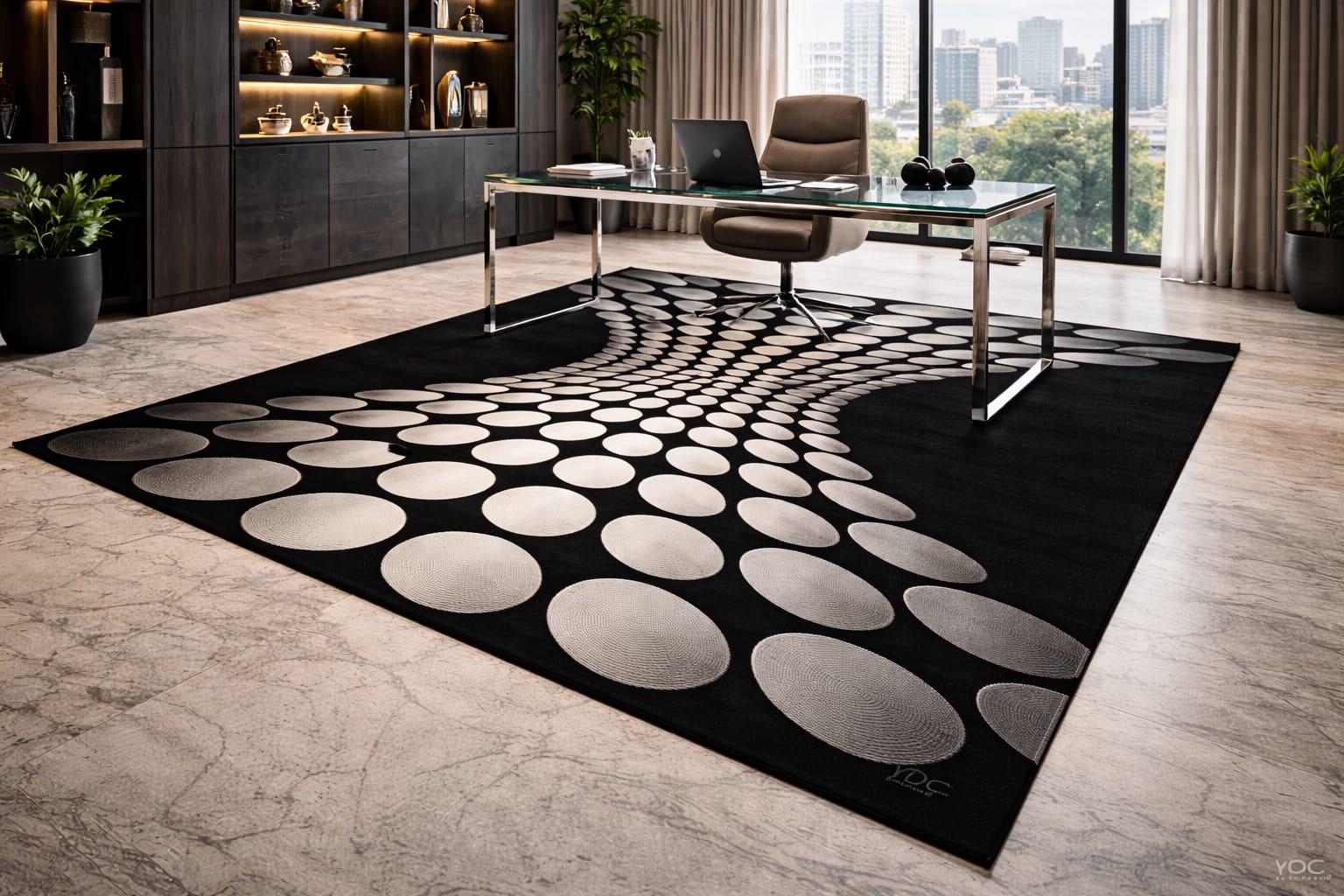 A stylish and eye-catching rug that enhances the look of any space.