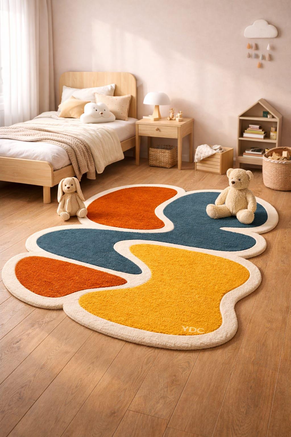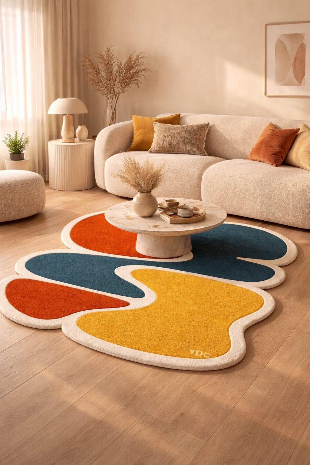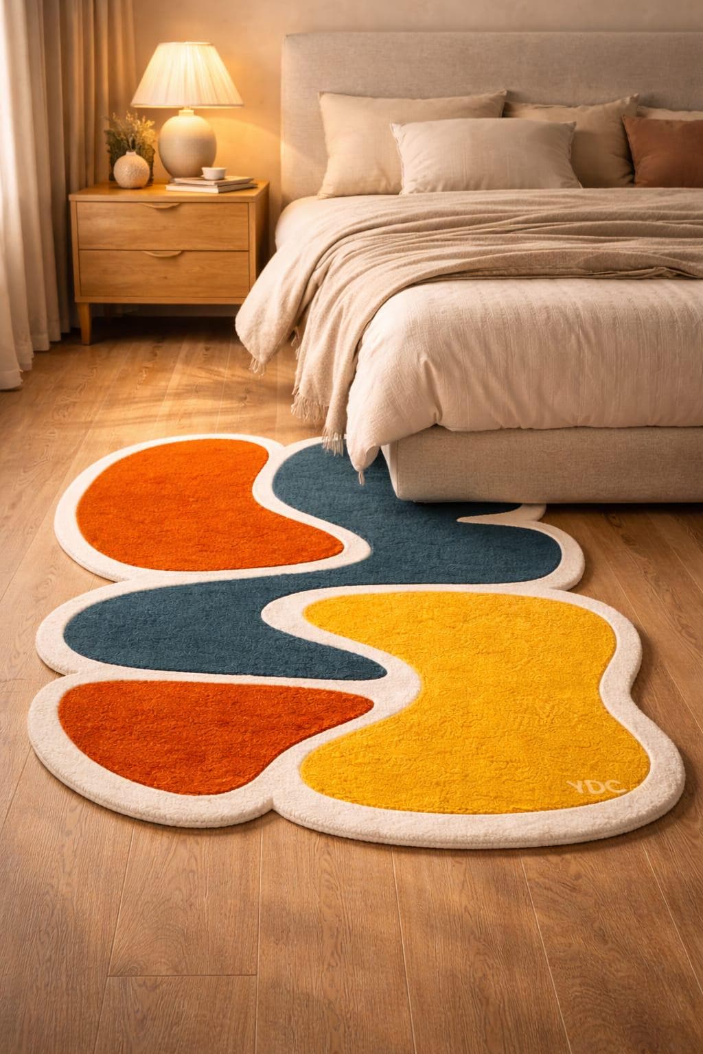Hand tufted using premium New Zealand wool, this rug offers exceptional softness, durability, and a rich textured feel underfoot. The irregular shape adds a contemporary edge, perfect for bedrooms, creative spaces, or statement corners.